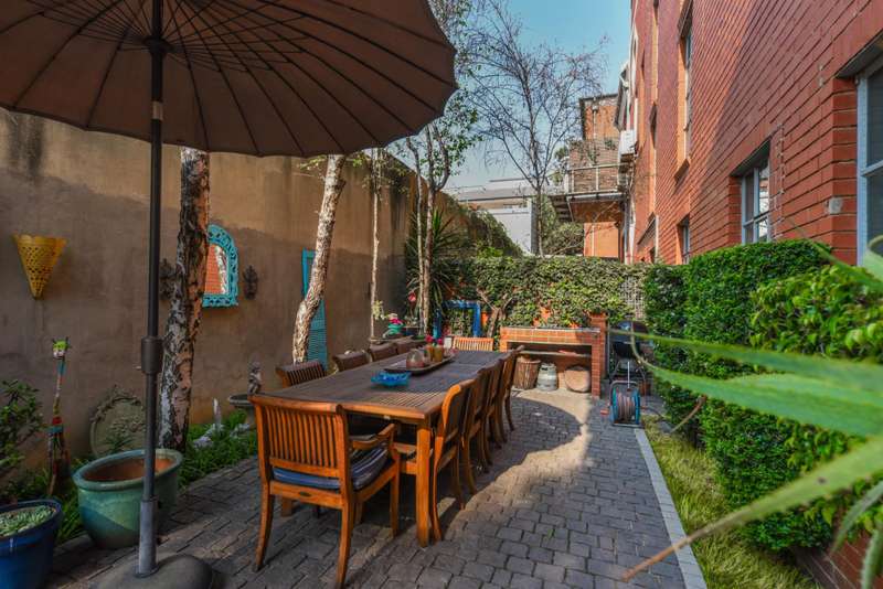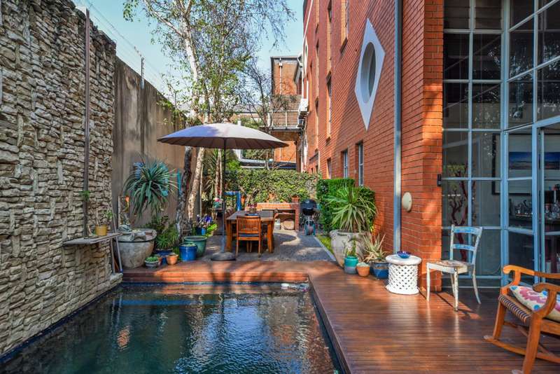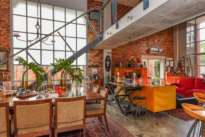 This stylish New York Loft Style Apartment offers a unique living space in the heart of the ever popular, and highly sought after, Parktown North. Comprising of 242 m2 this apartment is super spacious, in typical New York loft style has double volume ceilings with large expansive windows which automatically allows for the most beautiful natural light to flow throughout all times of the day and night. The downstairs area is open plan and very spacious, entering this area you will find a fully fitted, modern kitchen with a timeless backsplash of white subway tiles, and a gorgeous 6 plate gas stove with electric oven, there is a separate scullery which has space for 3 appliances. Due to the style, design and layout of this space this kitchen is an entertainer's delight. On the immediate right when entering the apartment is a guest toilet and basin, which then follows on into a spacious bedroom with full en-suite, this room also has a large expansive window which adds to the modernity of the New York loft living life and style. The shape of the entire downstairs under roof area is almost a half circle, to the left is a gorgeous TV & lounging area which includes a study nook, the entire back wall comprises of a fully fitted built in unit and cupboards which can double up as a book shelf. A built in Morso fireplace is perfectly situated and in the Jozi Winter months heats up this entire space for hours. Leading out of the lounge and dining area onto a gorgeous, sunny deck and pool area fitted with a built in braai, this outdoor area is spacious, private and luxurious for entertaining or simply relaxing and enjoying the outdoors. A contemporary stairway leads to the spacious upstairs area which consists of a bedroom and large ensuite, built in cupboards and dressing area. The space upstairs is certainly large enough to have a pajama lounge and or private relaxing area. The view and light from upstairs is exceptional, as the smart design of the round window ads style and flair to this gorgeous space. This apartment is most suitable for a creative individual or couple as it offers great living space both indoors and outdoors and is the most ideal place to entertain and have family or friends over, is very secure and a simple lock up and go, all in excellent taste and style. DOWN STAIRS Lounge & Dining Area Kitchen & Scullery Bedroom with En-suite comprising of a separate bath and shower, wooden flooring Guest Toilet Screeded Flooring PATIO Wooden deck and Garden Swimming Pool Built In Braai Excellent for entertaining UPSTAIRS Spacious Bedroom with extra space for a pajama lounge and or other private space Separate spacious ensuite comprising of a free standing bath and shower An abundance of built in cupboards