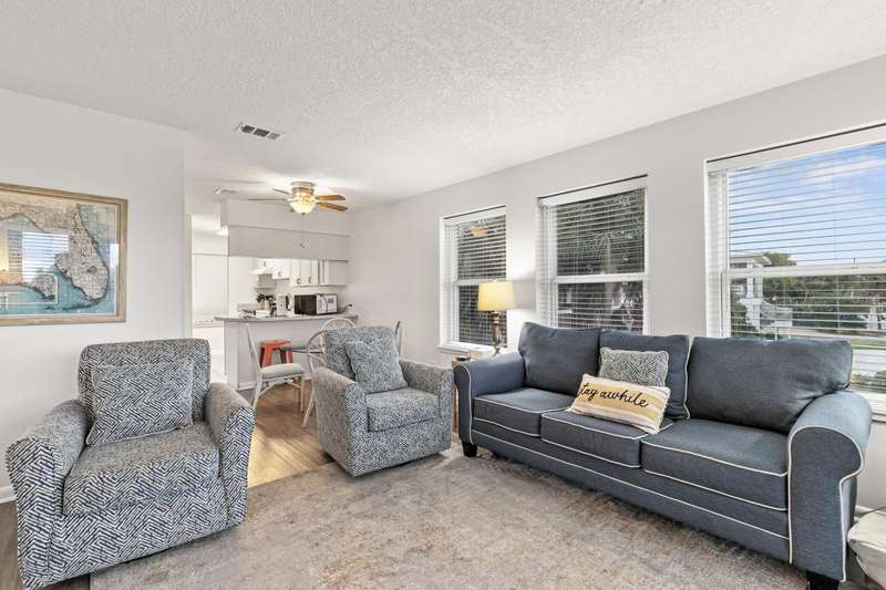 Welcome to your own slice of paradise at Poolside Villas on Holiday Isle!This beautifully maintained 2-bedroom, 2-bath condo offers the ultimate beachside lifestyle with direct private beach access and a sparkling community pool. Located in a gated, 30-unit complex, Poolside Villas has a strong rental history, making this an exceptional investment or second home.Recent upgrades to this community include the completed State Milestone Inspection and a $2 million exterior renovation, giving you peace of mind for years to come. Inside, you'll find a bright, coastal-inspired interior with durable LVP flooring, an in-unit washer and dryer, and a well-appointed kitchen... ready for your favorite recipes. From the entry area, step out to a balcony overlooking the Gulf, where you can enjoy beautiful sand dune scenery, coastal breezes, and the occasional fireworks show. The living area opens to a second balcony that looks out to the Harbor making it the perfect spot to experience charter boats return through Destin's famous, East Pass.This condo offers flexibility as a full-time residence, vacation home, or income-producing property, all conveniently located near a variety of shopping, dining and entertainment. You'll even have water taxi access to the Harbor, making it easy to enjoy the area without driving.Don't miss this opportunity to own a total turnkey beach getaway in one of Destin's most peaceful and picturesque settings!