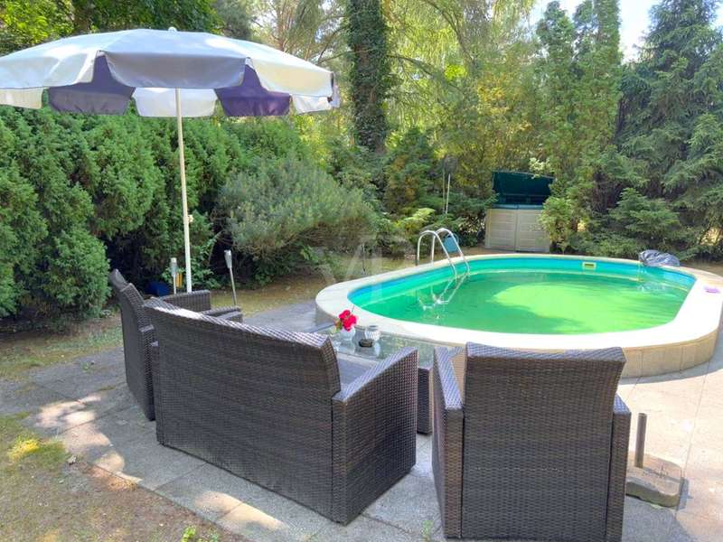 For your building project in a quiet and green location! We are offering an attractive building plot with a size of 963 m² in a special location in Wandlitz. According to the municipality of Wandlitz, the plot can be built on in accordance with § 34 of the German Building Code (BauGB). On the plot there is a weekend house of approx. 36 m² built in timber frame construction and a massive pool. The property was previously used for leisure and recreational purposes and is in a well-kept condition. It is partly overgrown with old trees. The property has an electricity connection that was renewed in 2015. Water and sewage were also reconnected in 2015. A telephone connection is located in the weekend house, DSL and gas are available in the street area. A well in a separate basement connection provides inexpensive garden irrigation. The property is enclosed by a wire mesh fence. Find rest and relaxation here with your family and enjoy the beautiful lake and wooded surroundings! See this property for yourself and arrange a viewing appointment with us.