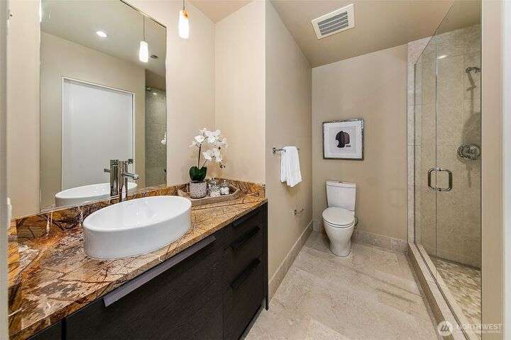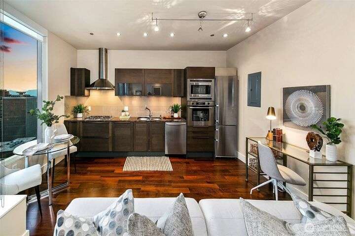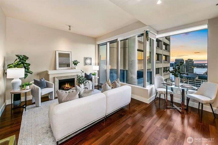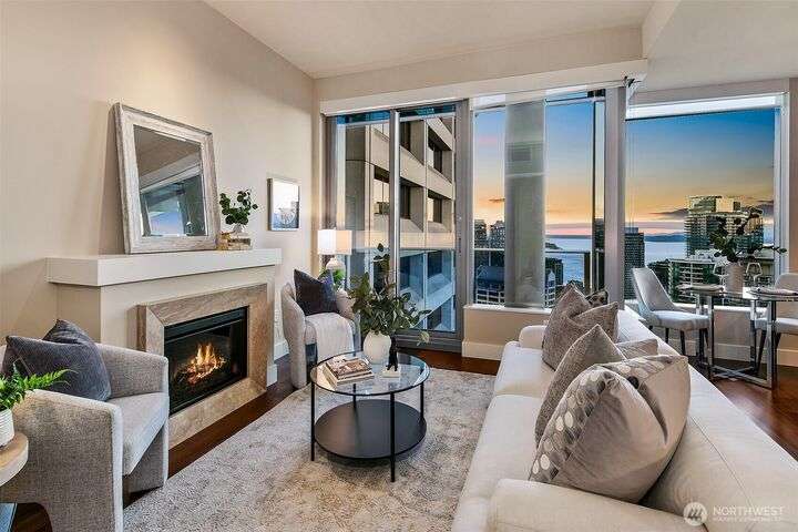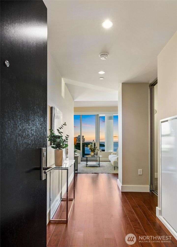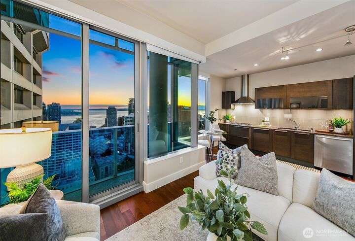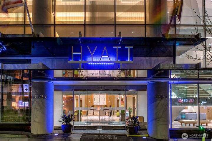Welcome to Olive 8-HYATT hotel living, Indulge spectacular Western views of Puget Sound, City skyline & Olympic mountain. 37th floor! Modern open floor plan- no load bearing column to block your view- 10ft floor-to-ceiling windows. This Lux condo features, A/C, gas cooking, rich hardwood floors, private balcony. Enjoy exclusive resident amenities including 24/7 concierge, lounges, rooftop BBQ deck, game room & pet area. Optional hotel amenities available for monthly $85 subscription - saline lap pool, Jacuzzi,fitness center, yoga studio spa, sauna, &valet parking. Includes 1 parking space & storage. Near light rail , Amazon, I5, Swedish & Virginia Mason hospitals. Great place to hang your hat for those on the back to office downtown.