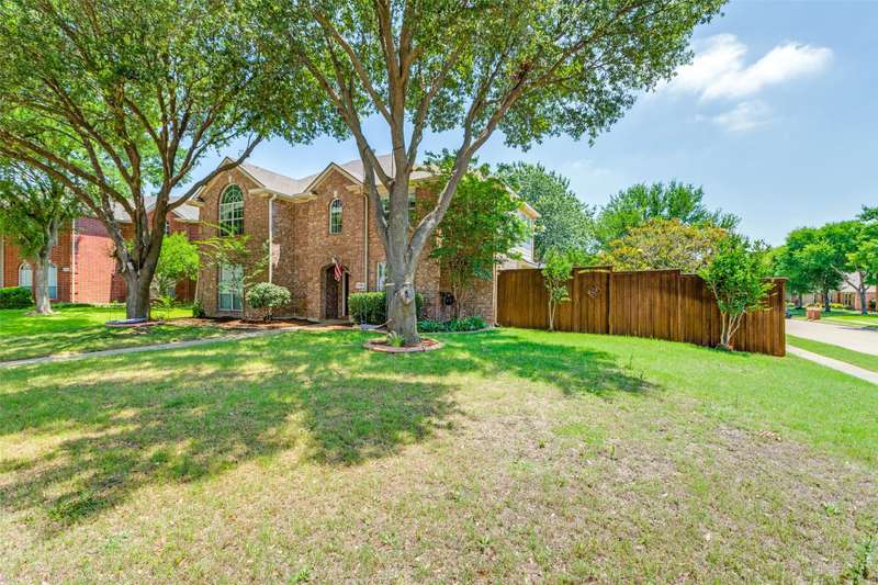 Beautifully Updated Home in Prime Location! Nestled on a desirable corner lot in a quiet cul-de-sac, this move-in-ready home offers comfort, style, and convenience. Enjoy relaxing or entertaining in the poolside yard, just steps from the neighborhood Pool and playground. Inside, you'll find a thoughtfully designed layout featuring hardwood floors, all new interior paint, and abundant natural light. The open-concept kitchen boasts quartz countertops and a designer backsplash - all flowing seamlessly into the spacious living area with soaring vaulted ceilings. The primary bedroom is on the 1st floor with 2 walk-in closets and a professionally designed primary bath retreat, complete with custom cabinetry, a luxurious walk-in shower, multi-setting air jet tub, and a separate heater for ultimate comfort.Upstairs, discover 3 generous bedrooms, including a Jack and Jill bath and a large secondary living area perfect for a game room, media space, or home office. This home is close to award-winning Frisco schools, parks, restaurants, shopping, major highways, major thoroughfares, and ready for new Owners! Current owner's children have transferred to Curtsinger Elementary since kindergarten and have been enrolled there for several years. This home is eligible for transfer to Curtsinger Elementary.