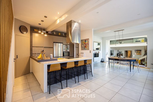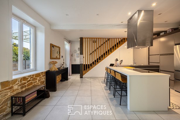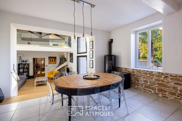 Nestled in the heart of Fleurieu-sur-Saone, this 211sqm former farmhouse, completely renovated and redesigned with an elegant contemporary extension completed in 2017, offers a unique living environment combining old-world charm and modern lines.