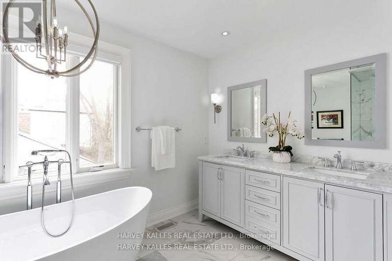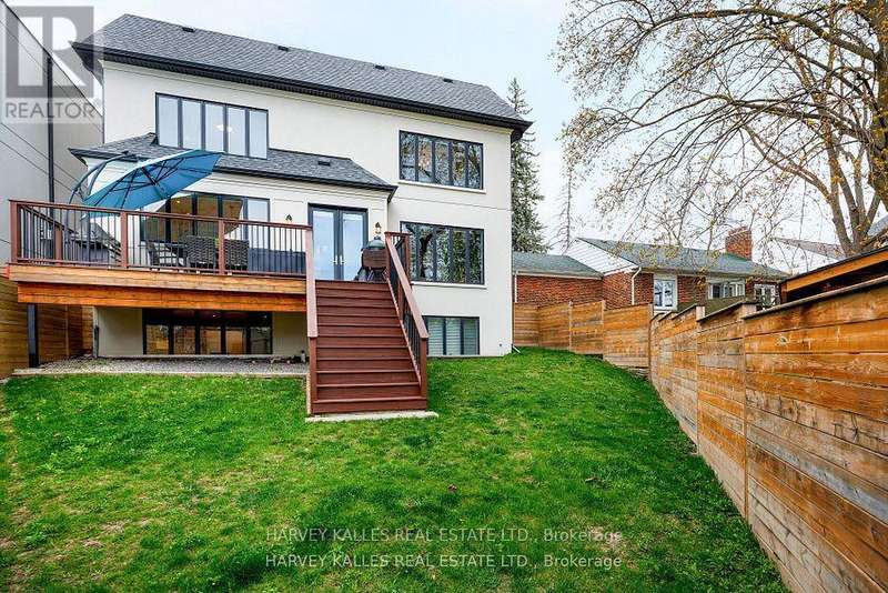 From the moment you step inside, you will be captivated by the bright and airy ambiance and architectural mastery of PhD Designs. Floating stairs draw you in and offer an uninterrupted view of the mature tree canopy seamlessly connecting the interior with the natural beauty outside. Beautifully constructed with the highest quality finishes throughout, this property will wow you over and over again. Professionally designed from top to bottom with large bedrooms and bathrooms and a Primary Suite you won't want to leave. Gleaming maple floors throughout and a showstopper chef's kitchen with expansive windows, double door walkout to the deck and an open layout that flows into the family room and dining room. A lovely executive office, lower-level rec room with a second office or gym, wet bar and ample storage complete the picture. Plus, a separate one-bedroom apartment with its own entrance, double drywall/sound barrier, high end finishes, laundry and bath provides a fantastic income opportunity bringing $1,800 to $2,000/month. Ideal for an in-law/nanny suite or extra rental income. This home was tastefully designed with a perfect floor plan, all the bells and whistles and comfortably parks 6 cars. Steps to Chestnut Hills Park, KCS, OLS, TTC, Kingsway, shops, restaurants, airports and highways. It's an opportunity not to be missed. (id:6370)