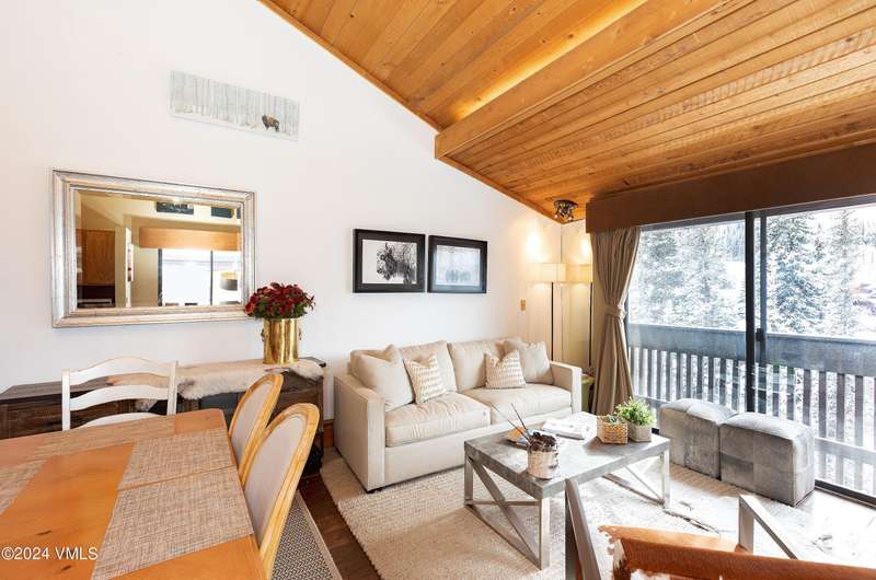 A two-bedroom condominium on Gore Creek with 180 degree-views of Vails Golden Peak ski slopes and a short walk to Vail Village shops, restaurants and the Ford Amphitheater. Top floor corner residence with vaulted ceilings, tasteful furnishings and updated bathrooms. Comfortable and quiet getaway to enjoy the sounds of the creek in the warmer months or take in the mountain views. Private balcony is a perfect retreat for fresh mountain air or incredible sunsets. Two unassigned surface parking spaces are available onsite. Year-round outdoor pool that converts to hot tub in the winter. A landscaping project was completed this past summer adding new fire pits, new grills and additional green space with trees, shrubs and flowers. Very well-run association and per a Reserve Study the reserves are strong. Seller currently rents short-term with excellent success and approximately a 5% ROI. For more information please see the attached MLS documents.