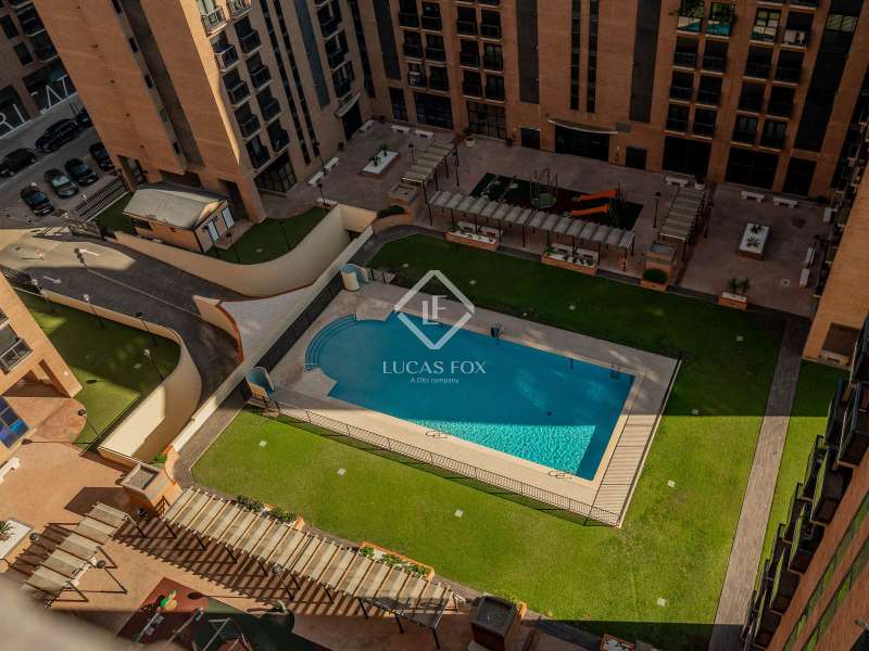 Located in a modern high-rise residential complex near Valencia’s Aqua Shopping Centre, this recently refurbished apartment offers the perfect blend of comfort, security, and convenience. The property features three spacious bedrooms and two elegant bathrooms, finished to a high standard in a modern, neutral style. The interiors are bright and airy, with clean lines and quality materials that create a timeless, move-in-ready home. Residents of this exclusive closed complex enjoy access to a full range of amenities, including the full on-site concierge service for peace of mind, a communal swimming pool surrounded by sun terraces, a children’s playground within landscaped gardens and underground parking with a private space included The location is exceptional, just steps away from Aqua Shopping Centre, close to the City of Arts and Sciences, and within easy reach of both the city centre and Valencia’s beaches. Excellent transport links, schools, and services make this an ideal home for families, professionals, or anyone seeking a high-quality lifestyle in the city. This is a rare opportunity to acquire a stylishly refurbished apartment in one of Valencia’s most desirable modern developments. Please contact us for further information.