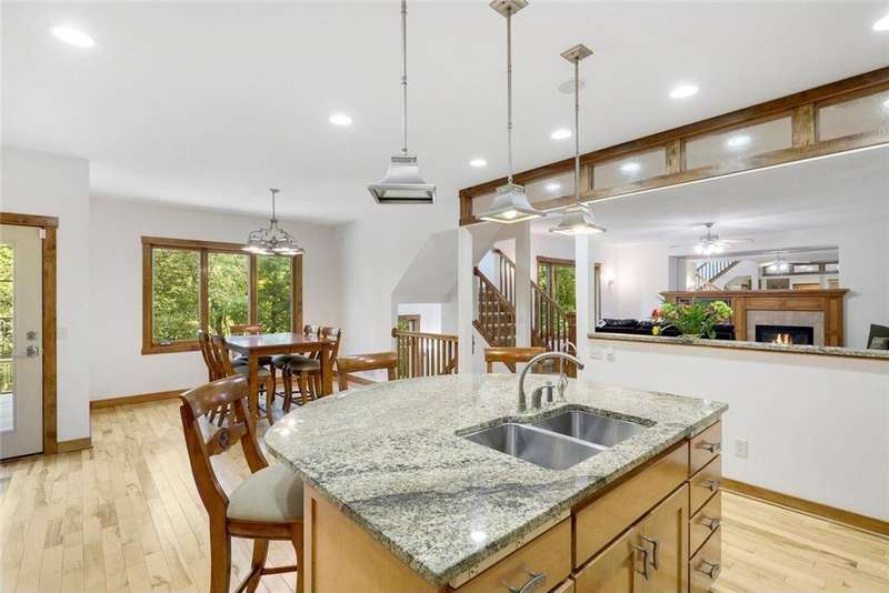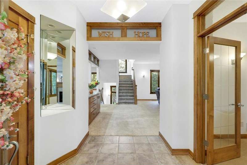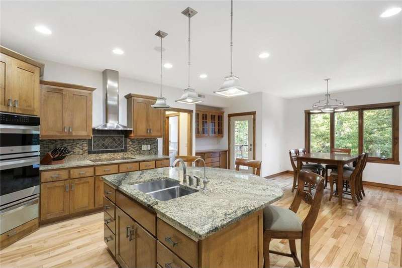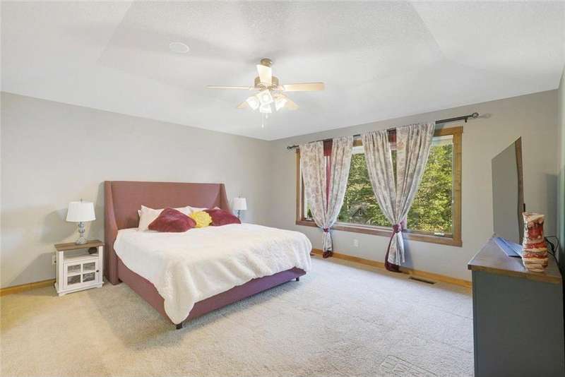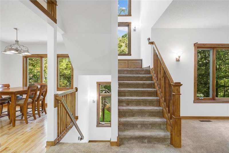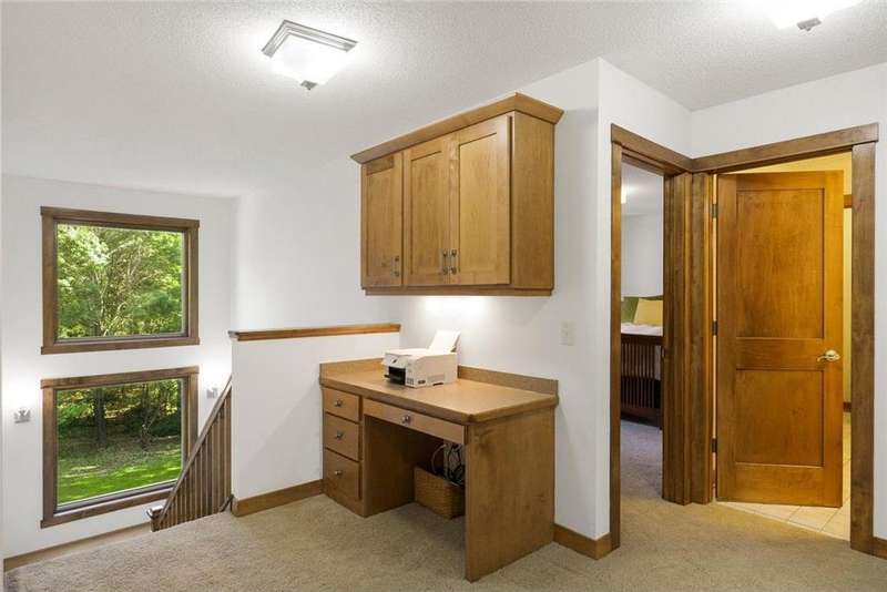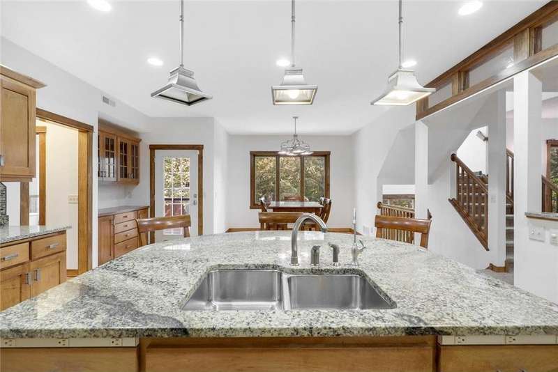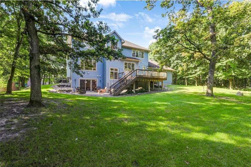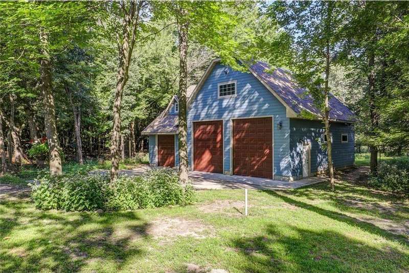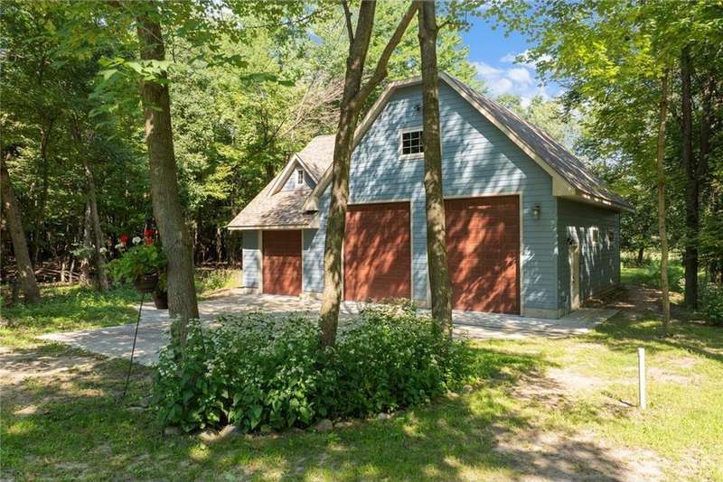 Tucked away in the highly desired Hidden Forest neighborhood on a quiet cul-de-sac, this stunning property offers the perfect blend of privacy, and natural beauty, along with an abundance of garage and storage space that’s a dream for car enthusiasts and hobbyists. Set on a picturesque 2.8-acre wooded lot, this home provides a serene retreat while remaining just minutes from shopping, restaurants, golf courses, sports venues, and scenic hiking trails. Mature trees and abundant wildlife create a peaceful, natural backdrop to enjoy year-round. The home itself features an open-concept main level, where the kitchen, dining room, living room, and multi-level deck flow seamlessly together making it an ideal layout for gatherings and entertaining. The gourmet kitchen is equipped with granite countertops, a tiled backsplash, stainless steel appliances, dual ovens, and an electric cooktop with vented hood. A main level home office and a mudroom with bench seating and ample storage add smart, everyday functionality to the home. Upstairs, you’ll find four spacious bedrooms, highlighted by a primary suite with a walk-in closet and a spa-like ensuite featuring a separate tub and shower, dual vanity, custom ceramic tile work, and glass block windows. Another bedroom is thoughtfully designed with custom built-ins and a desk, while the upper landing offers a convenient desk nook. The laundry room is complete with washer, dryer, sink, folding table, and cabinetry adds both functionality and convenience. The lower level is designed for comfort and entertainment, featuring a large family room with wet bar, a fifth bedroom with a custom walk-in closet, a ¾ bath, and walk-out access to the patio and deck. Outdoor living is elevated by a striking multi-level IPE hardwood deck with glass side panels and a built-in natural gas line for grilling. Whether you’re entertaining friends or enjoying a quiet evening surrounded by nature, this space is perfect for making the most of the property’s private setting. Garage and storage options here are truly exceptional, with two oversized attached garages in an L-shaped configuration. They feature extra depth, high ceilings, and finished sheetrock walls. One bay is heated and includes windows for natural light. Beyond that, enjoy a massive 42’ x 32’ outbuilding with 200 amp and 220 volt outlets, multiple oversized doors easily accommodates RVs, boats, or multiple vehicles, and includes a loft ready to be finished for even more storage or workspace. Recent updates include newer siding with a 30-year warranty, as well as a recently replaced refrigerator and washer/dryer. The home showcases custom craftsmanship, featuring detailed woodwork and elegant built-in cabinetry throughout. Additional highlights include heated floors on the lower level, a Kinetico water filtration system, an April Aire furnace humidifier, and a thoughtfully designed pet area under the stairs complete with its own water supply. With its rare combination of privacy, natural surroundings, thoughtful updates, and unmatched garage and storage space, this property offers far more than just a home, it provides a lifestyle. Whether you’re seeking a peaceful retreat, a place to entertain, or a haven for your vehicles and hobbies, this one-of-a-kind residence delivers on every front. We can't wait to have you visit!