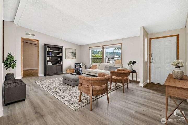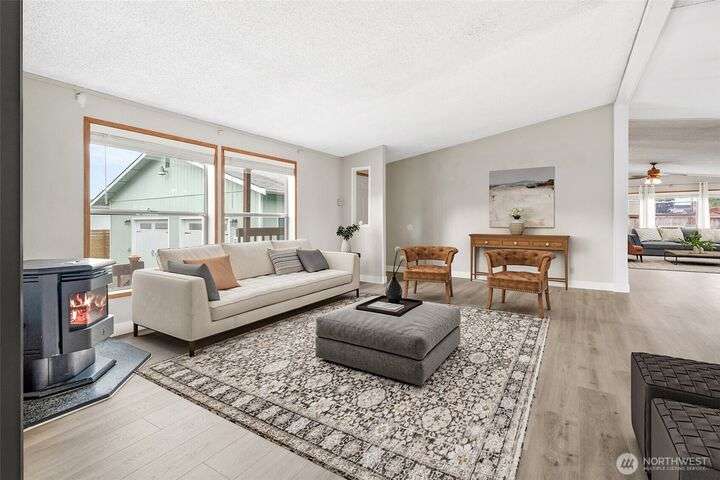 Ready to fall in love? Space for Projects, Parking & Play! This 3-bedroom, 1 3/4-bath charmer has all the space, style, and convenience you’ve been waiting for! Step inside to a bright, open layout with fresh flooring, big windows, and a cozy pellet stove that sets the perfect vibe. The detached 2-car garage is ideal for hobbies, parking & storage, and the extra-wide driveway has room for all your toys (w/RV hookups!). Potential to turn garage into DADU (buyer to verify). Outside, enjoy a private yard with garden space to dig in the dirt, relax in the sunshine, or host weekend BBQs. With easy access to freeways, shopping, dining, and more, this gem is equal parts comfort, convenience, and fun—your perfect home sweet home awaits!