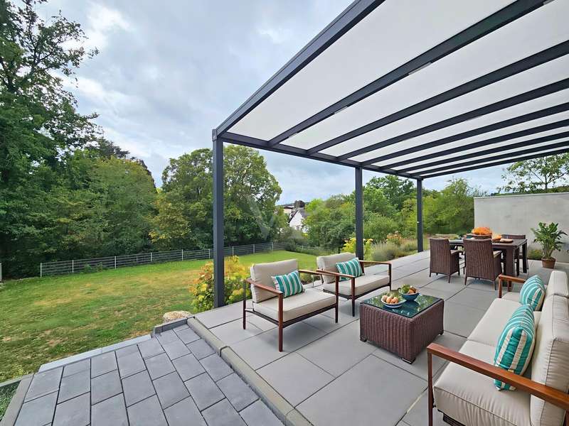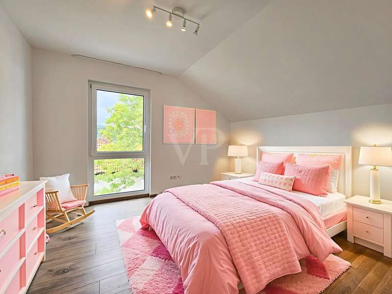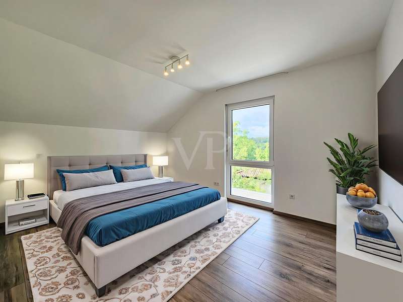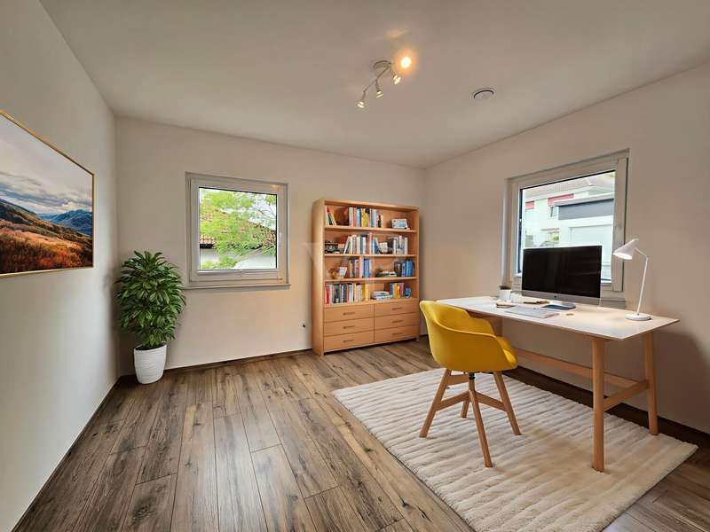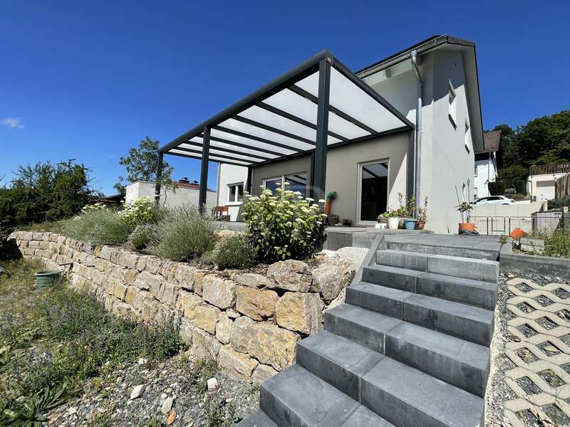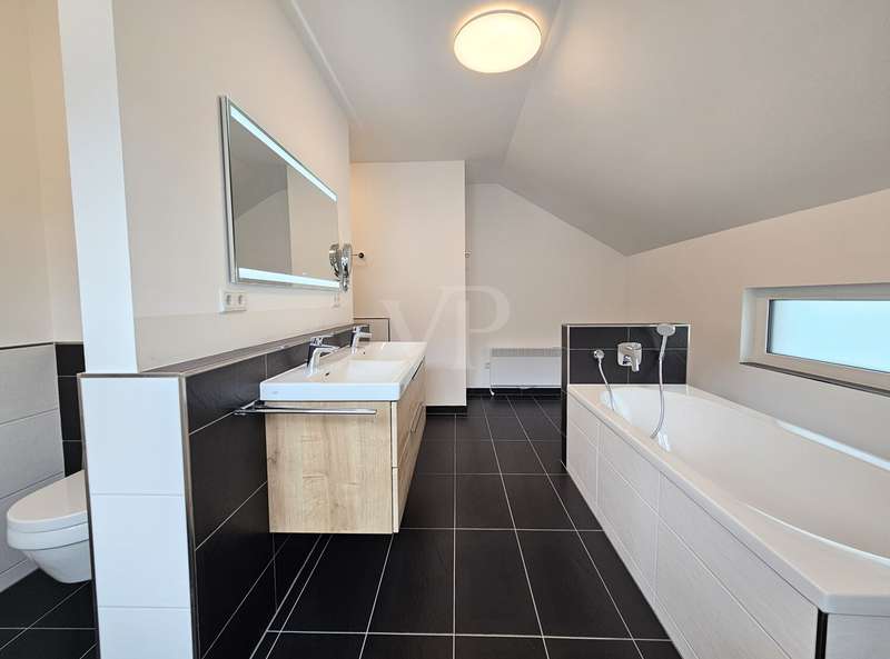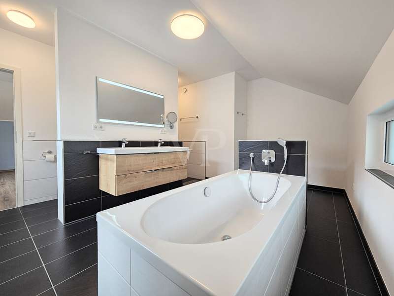 Discover an impressive detached house in Usingen that impresses with its as-new condition and first-class fittings. With an outstanding energy standard of A+, this home offers modern amenities and maximum energy efficiency. This appealing home combines modern luxury with the beauty of nature. The spacious garden invites you to relax and offers a picturesque view of the greenery, while the quiet location creates an oasis of relaxation. Inside, an exquisite Nolte fitted kitchen awaits you with its special details. The elegant bathrooms, including two daylight bathrooms and a guest WC, are harmoniously designed and offer a high level of living comfort. The tasteful floor coverings and well thought-out room layout create an atmosphere of modern design and functionality. The master area with dressing room and a spacious bathroom with free-standing bathtub and floor-level shower is a real highlight. There is also space here to install an infrared cabin. The well thought-out architecture of the house opens up numerous possibilities, including the option of integrating an elevator - ideal for all stages of life. The spacious rooms are perfect for families and offer plenty of space for individual design. In terms of technology, this home sets standards: a photovoltaic system, a solar battery storage unit and a smart meter ensure a sustainable energy supply. The double heat pump ensures a pleasant indoor climate, whether you want to heat or cool, and supplies fresh air for a healthy living environment. Enjoy the view through the floor-to-ceiling windows of the largely finished outdoor area with natural stone wall, large lawn and large terrace with atmospheric lighting. Thanks to the roof, the terrace can be used almost all year round. The quiet surroundings nevertheless offer good connections to shopping facilities and public transport, which you can reach by car in just a few minutes. This property is an excellent choice for couples or families looking for a stylish and energy-efficient home. It can be occupied by arrangement. Don't miss out on this opportunity and arrange a viewing today to see this exceptional offer for yourself!