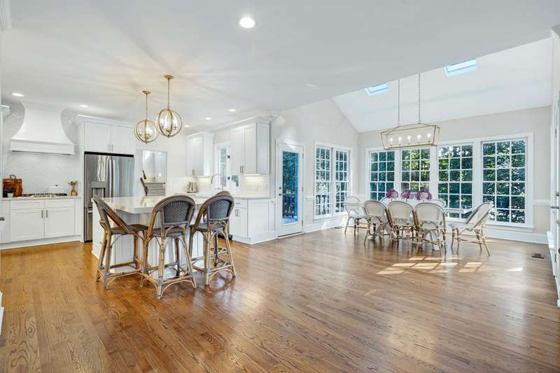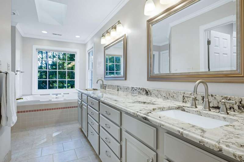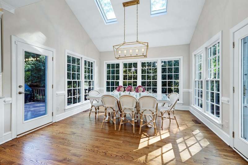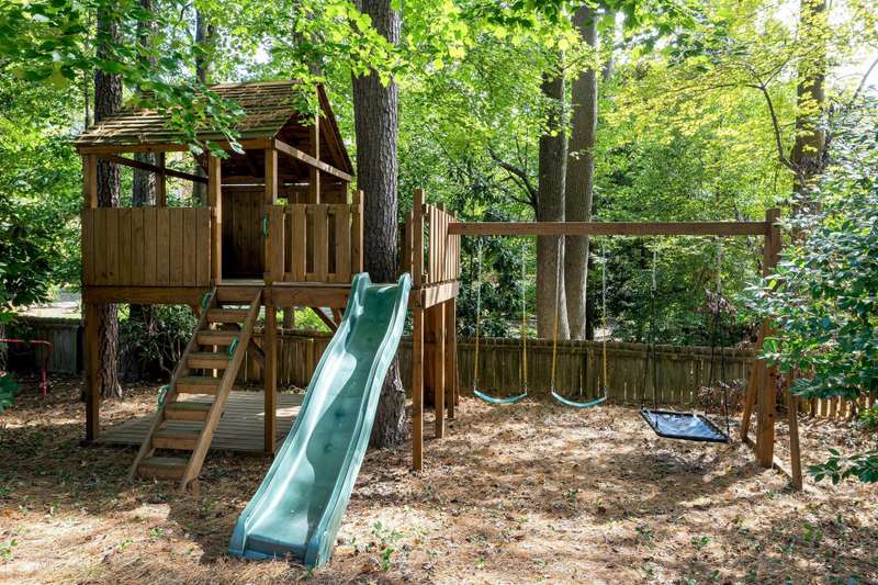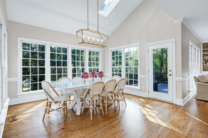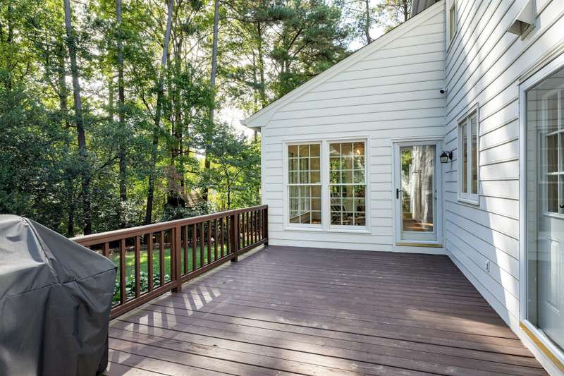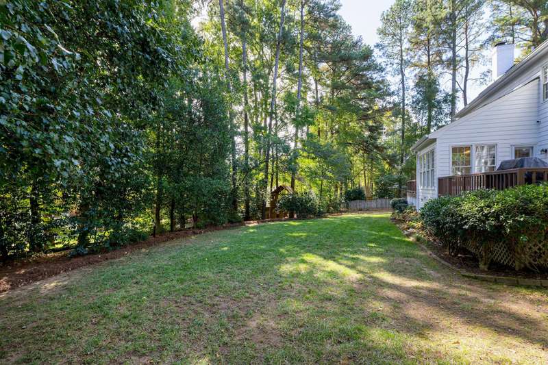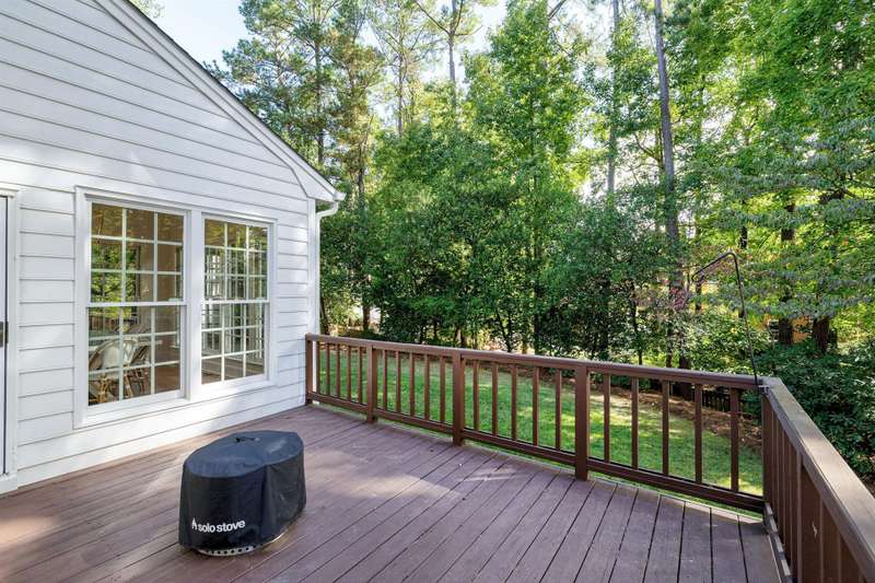 North Ridge classic at its best! This beautiful home was made for easy entertaining with formal areas. Enjoy memorable dinners in the dining room which features a trey ceiling and wainscoting. The living room is perfect for quiet conversations. The updated kitchen is appointed with quartz counters, center island, SS appliances, tile backsplash, gas cooktop, glass front cabinets and a large pantry. It opens to the sunny breakfast room and family room with cozy fireplace There is a rear staircase leading to the second floor bonus room. The primary suite has a huge bedroom, office area, luxury bath with double vanities, whirlpool bath, separate shower and walk in closet. Three additional bedrooms are on the second floor. The walk up attic will meet your storage needs or can be used for future expansion. Enjoy the view of the private backyard from the two decks or the playset . You are minutes from North Ridge Country Club, shopping and dining. It's an easy commute to I-540, downtown Raleigh, North Hills and the airport. This home is waiting for you!