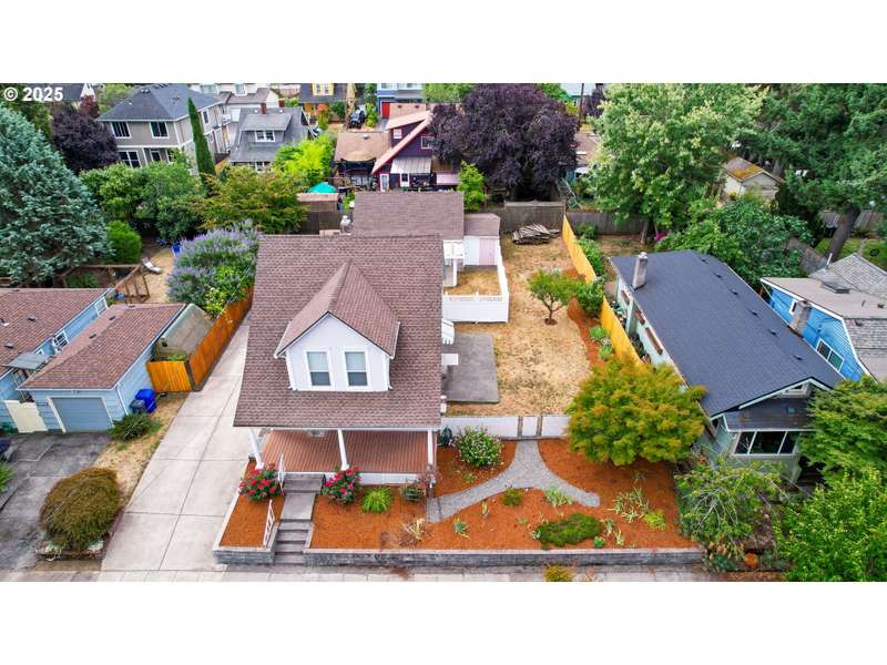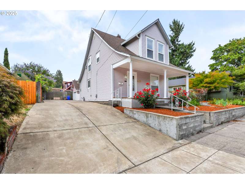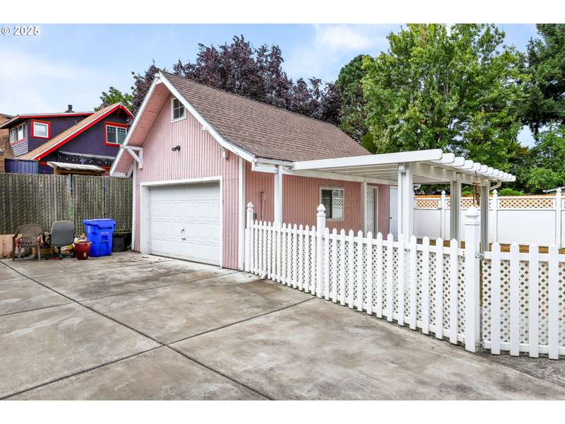Classic Kenton Home with Extra Lot Included! This charming Portland gem offers an updated interior and a fantastic bonus: a detached shop! Enjoy the expansive living and dining areas, a welcoming front porch, and three spacious bedrooms upstairs, including a primary suite with a half bath. The fenced backyard and long driveway provide ample space for outdoor living and parking. Explore the possibilities of this unique property! [Home Energy Score = 1. HES Report at https://rpt.greenbuildingregistry.com/hes/OR10232282]