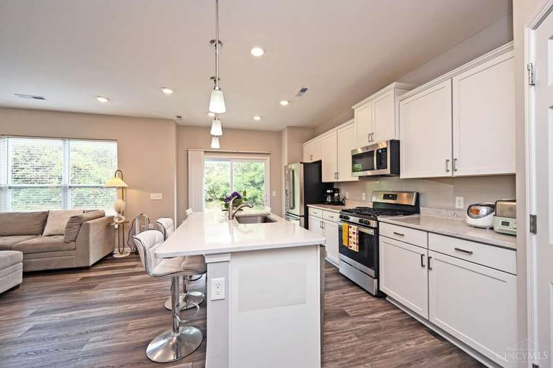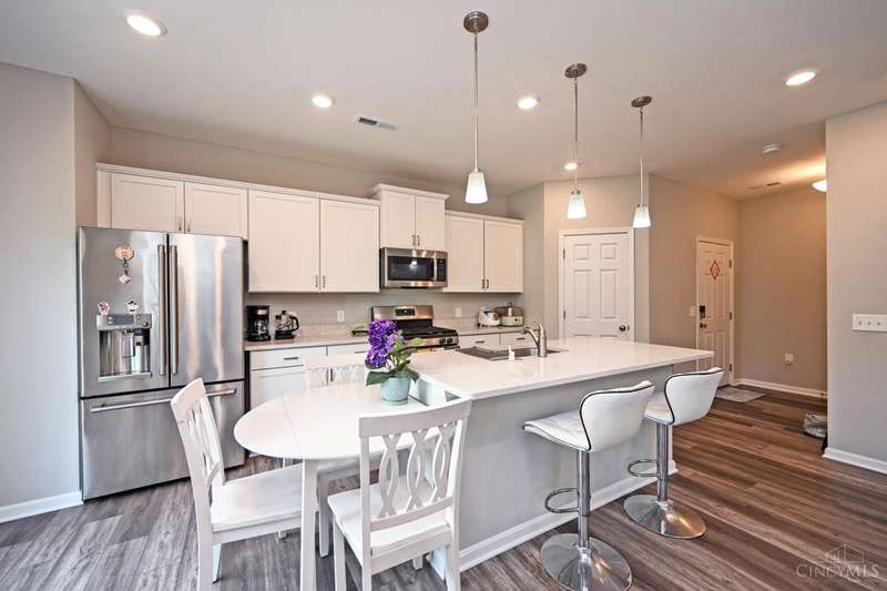 Better than new home. Beautiful 3 bedrooms, 2.5 bathrooms townhome in Liberty Twp. set on a very private yard overlooking the trees. Very open floor plan with modern kitchen offer upgrades kitchen cabinets/countertops/large island. LVP flooring throughout. 9 ft ceiling. Master suite with cathedral ceiling, walk in closet and private bath. Second floor laundry. This town home also offers maintenance-free living. Lakota school district. Close to Liberty Costco. Great move in condition.