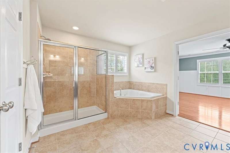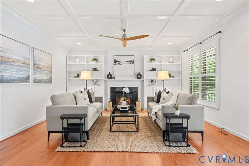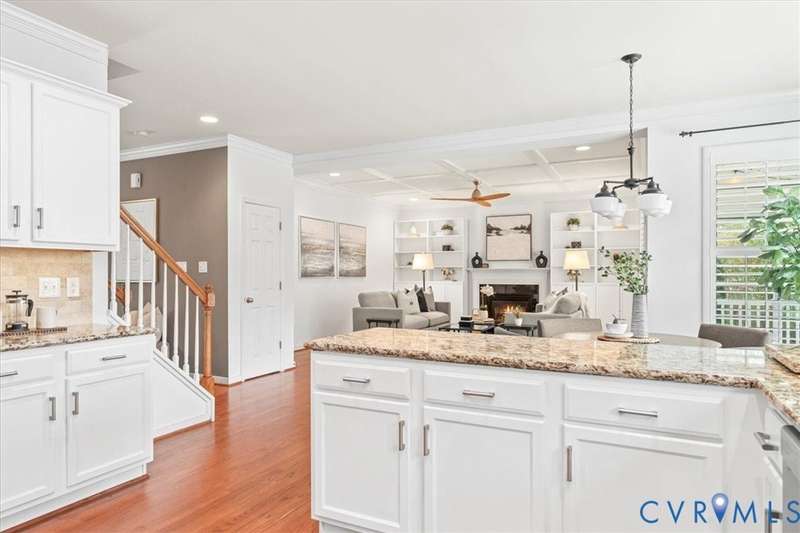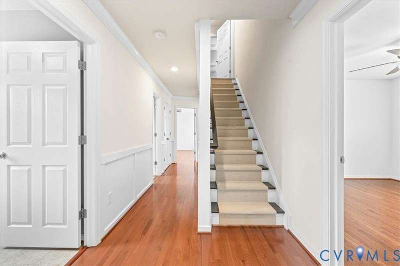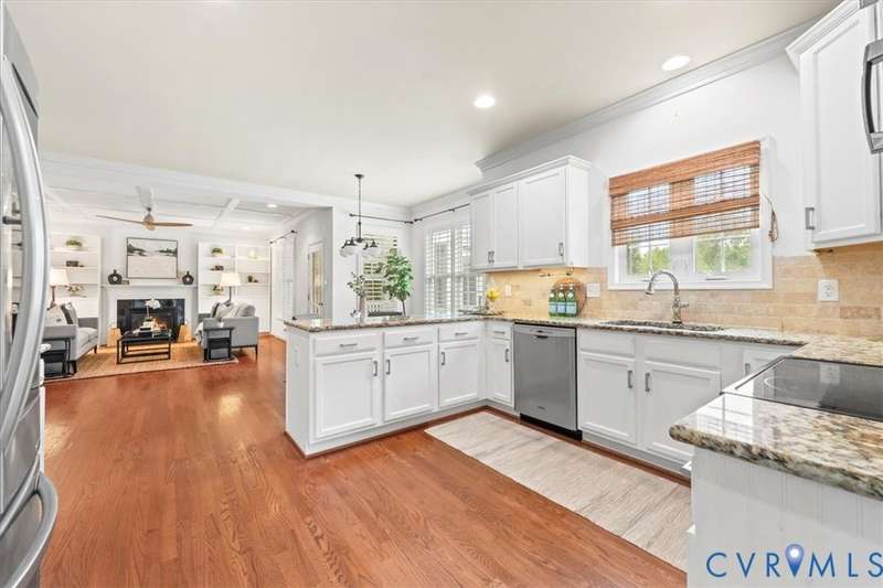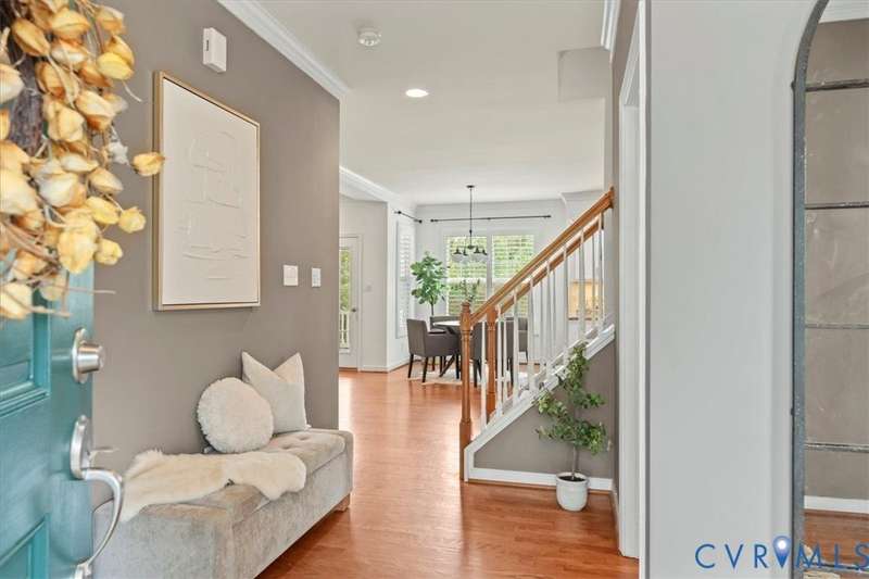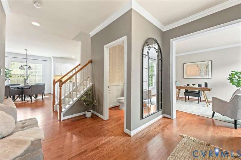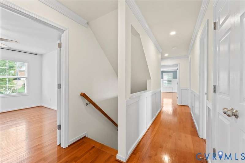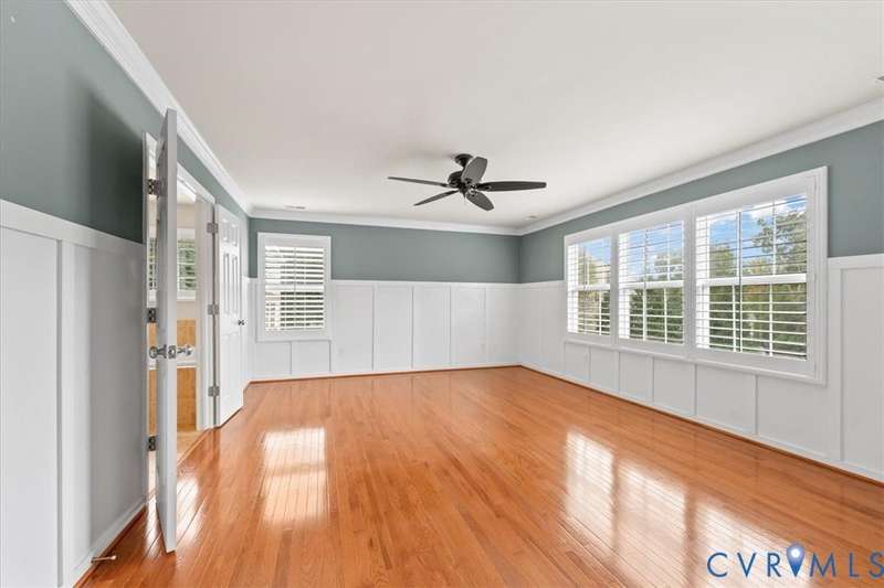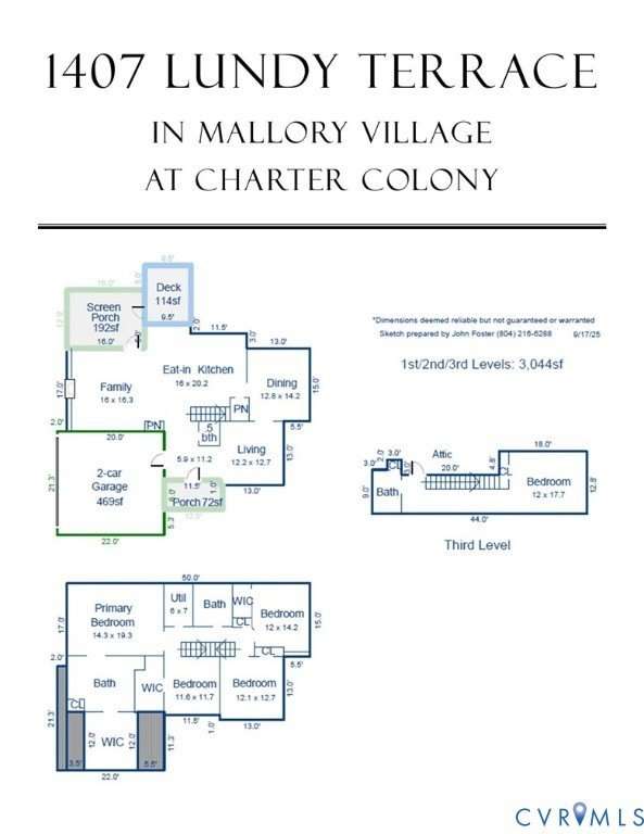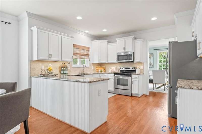 Welcome to 1407 Lundy Terrace in Mallory Village at Charter Colony. This spacious 5-bedroom, 3.1-bath home sits on one of the largest cul-de-sac lots in the neighborhood-two to three times the size of most-and backs to a wooded Charter Colony buffer, offering privacy and a park-like setting. Enjoy the view from the screened porch or grill on the open deck while taking in the sunset. Inside, wood floors flow throughout the first and second levels. Detailed millwork includes wainscoting and crown molding, complemented by updated lighting, flush wood vent covers, and generous closet and storage space. The open kitchen connects to a bright breakfast area and family room featuring a fireplace with dental-molded mantle, built-ins, and access to the screened porch. The flexible floor plan includes five bedrooms, with options for a recreation room or home office on the third floor. The large primary suite feels like its own retreat, and tall ceilings paired with abundant natural light create an inviting atmosphere throughout. Mallory Village residents enjoy a true sense of community with amenities such as pools, clubhouse, tennis and pickleball courts, playground, and walking trails-plus monthly neighborhood events. Conveniently located near 288, Powhite Parkway, and Midlothian Turnpike. A rare combination of space, character, and convenience in one of Midlothian's most desirable neighborhoods.