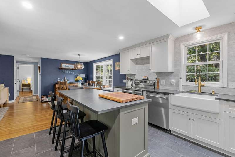 Falmouth/Hatchville - Pondfront on 1.42 AcresCharming and well-maintained, this pondfront home offers a rare lifestyle opportunity on picturesque Pickerel Pond. The cozy fireplaced living room opens to the dining area, both with hardwood floors and a bow window framing beautiful water views. The custom kitchen features granite countertops, custom porcelain Farmers sink, electric cooking, and all stainless appliances including dishwasher. A stunning oversized family room boasts wide pine floors, custom woodwork, and a full-view door leading to the expansive sundeck--perfect for entertaining. Two bedrooms and a full bath complete the main level. The walk-out lower level offers 3 finished rooms, a full bath, and laundry. Additional highlights include a one-car garage, lower-level storage, a great yard, and a dock. Pickerel Pond is fed by larger Coonamessett Pond--ideal for nature lovers, kayakers, and those seeking serenity. Don't miss this special offering!