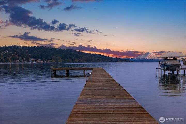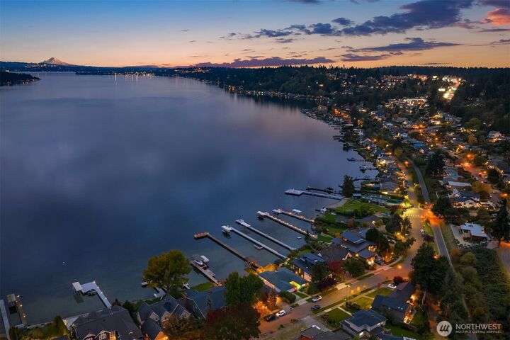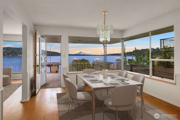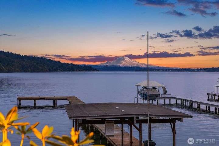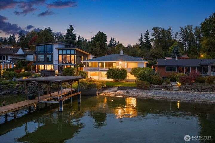 Lake Washington Waterfront w/Grandfathered in private Dock, and boat lift in heart of Sheridan Beach. Rare opportunity to own in one of the lake's most desired communities. Classic mid-century home with stunning lake and Mt. Rainier views, 60 FT of WATERFRONT.. Picture windows capture unobstructed Lake views of the ever-changing PNW seasons. This 3,300 sq ft, 4-bed, 3-bath home features main-level living with three bedrooms, two baths. Lower level offers family room with wet bar, fourth bedroom, workshop, and wine storage. Enjoy exclusive Sheridan Beach Civic Club access and prime location minutes from Seattle and the Eastside. Ready for a remodel or build your dream lakefront estate among neighboring luxury homes.