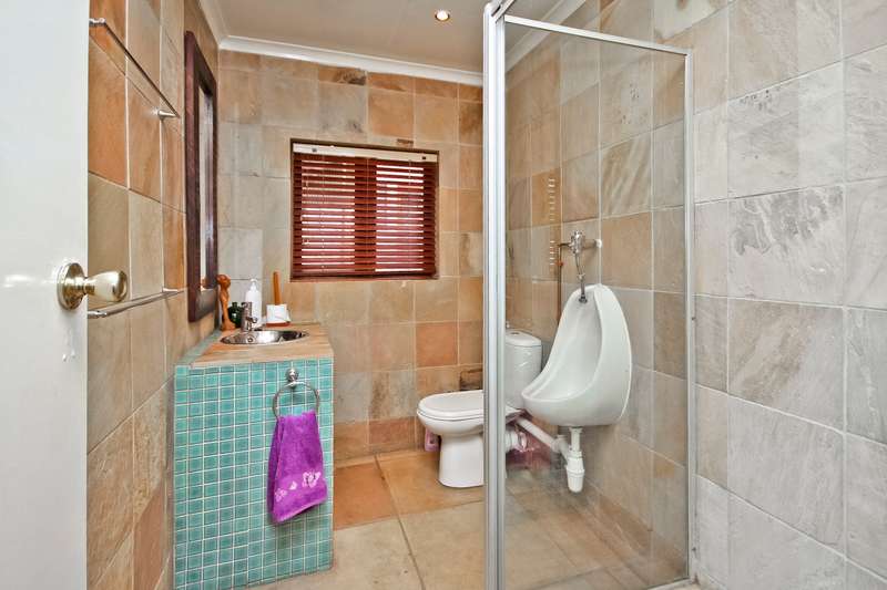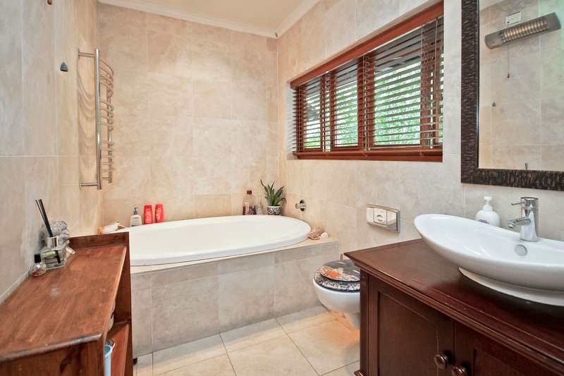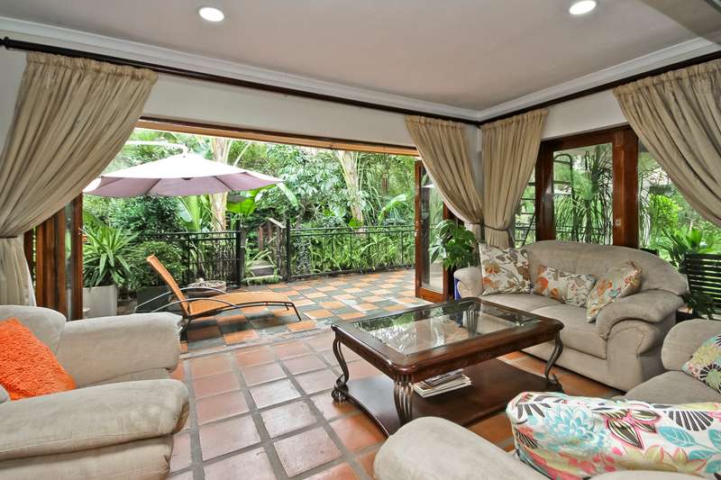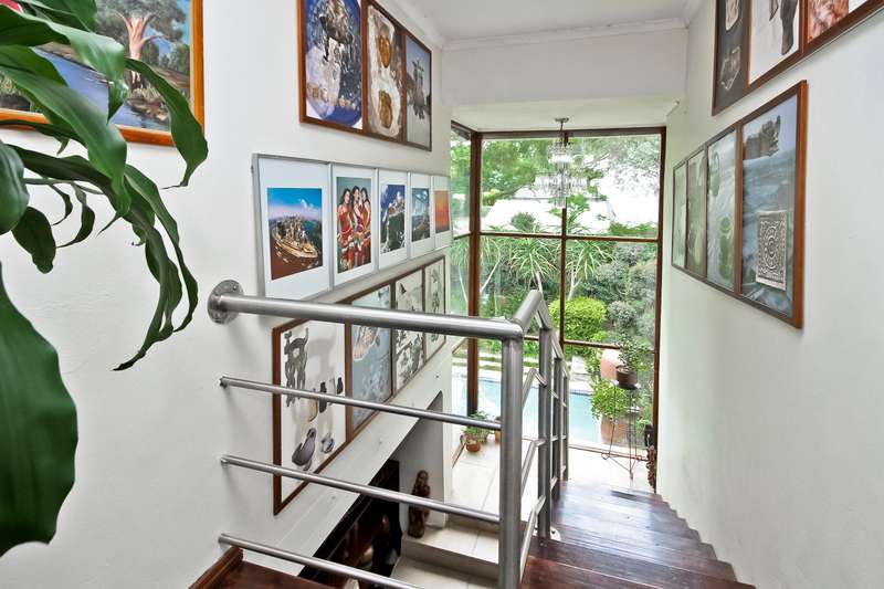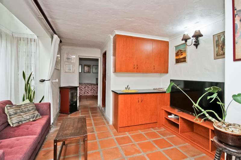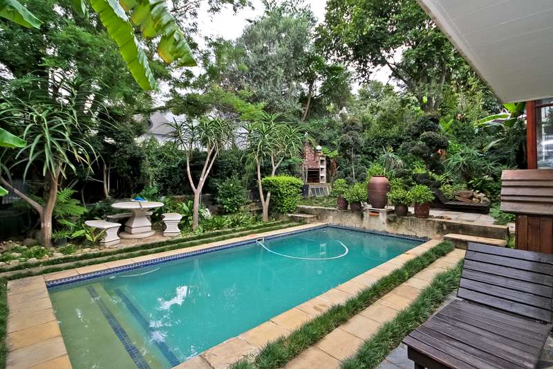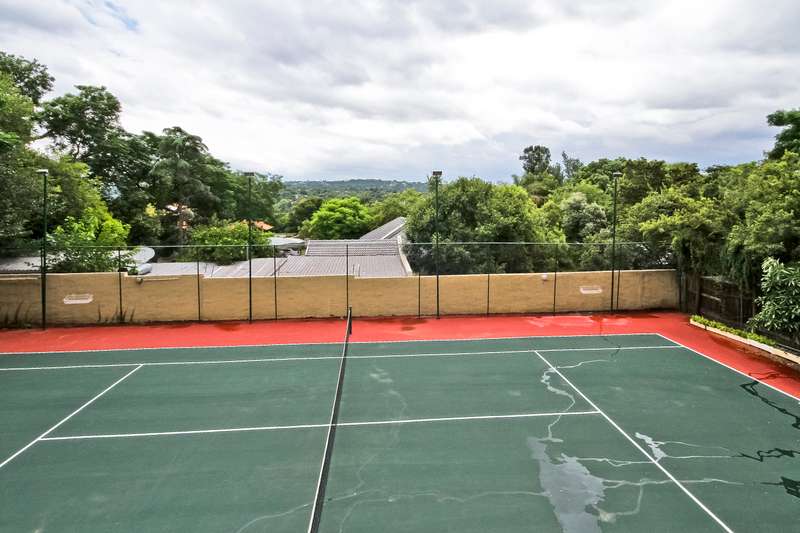 Your own paradise in the middle of Rivonia with two cottages Entrance to huge open plan area (4 in 1) including lounge(fireplace), tv room and dining. Guest cloak rood. Kitchen with Ceaserstone counter tops, SMEG gas cooker, breakfast nook and loads of cupboard space. Three bedroom (MES) and two bathrooms on the same level. One bedroom converted into big dressing room. Big Balcony with awesome views. Downstairs we got bedroom(fireplace) serviced with bathroom and lounge, potentially cottage one. Huge store room and wine room. Huge entertainers lounge(fireplace), bathroom and small kitchen. Also possibility for extra rental with separate entrance. Sparkling big pool. Full size tennis court. Double stuff accommodation, outside toilet and laundry room. Lushes private garden, double carport-Hollywood garage, Koi pond with water feature, big covered patio. Extras: borehole, Auto irrigation, 16 cameras with full surveillance system, alarm and outside beams, electric fence. Please contact me for private viewing.