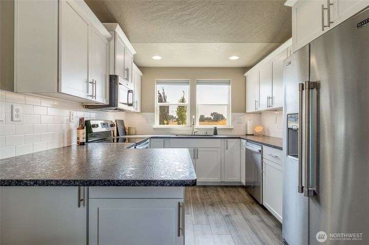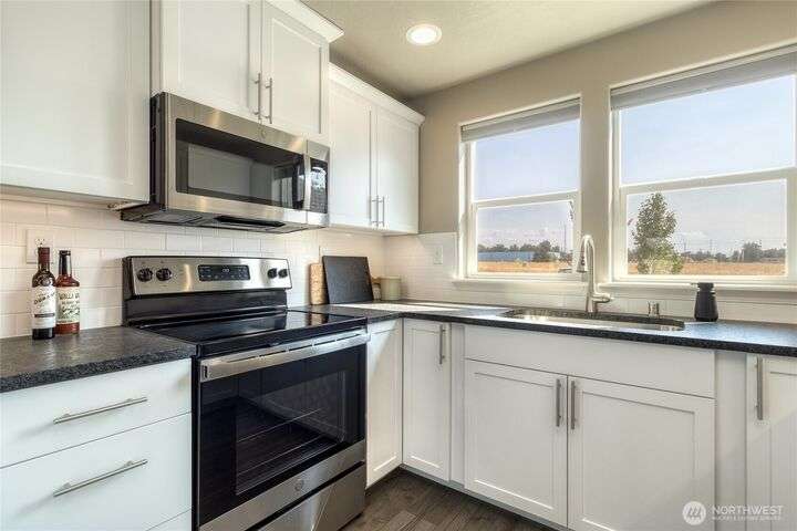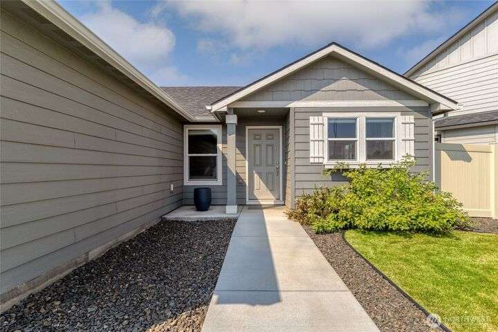 Better than new! This upgraded 2023 home offers a desirable one-level layout of 1,235 sqft. Used only occasionally as a second home, this home still seems brand new and it features upgrades including LVP flooring, granite kitchen countertops, soft-close cabinets, fully fenced in backyard, in-ground sprinkler system, and a heat pump for central A/C. Vaulted ceilings span the open concept dining and spacious living rooms, while the front kitchen provides ample counter space and storage. The large main suite boasts two closets and en-suite bathroom with dual-vanity. Two additional bedrooms, laundry room, and 2 car garage. Located in Harvey Ranch Estates, a thriving and developing community in beautiful Walla Walla!