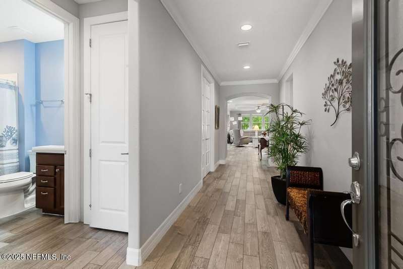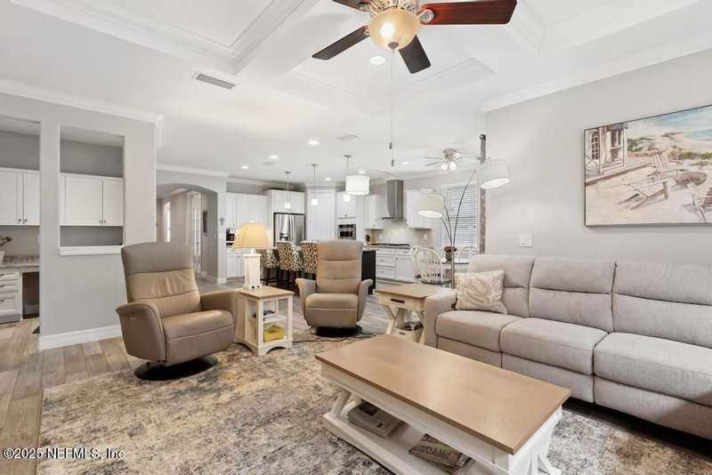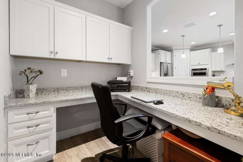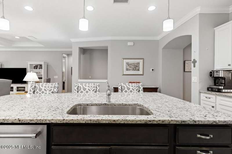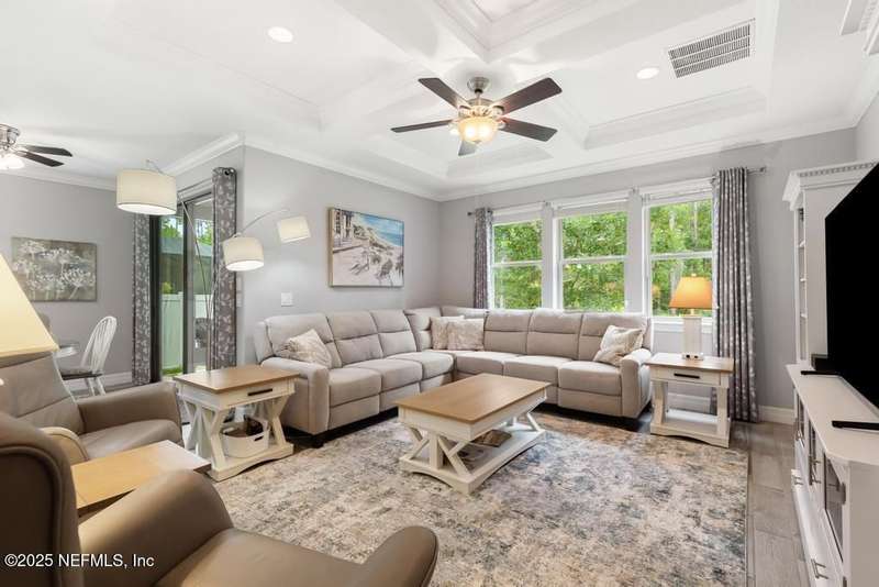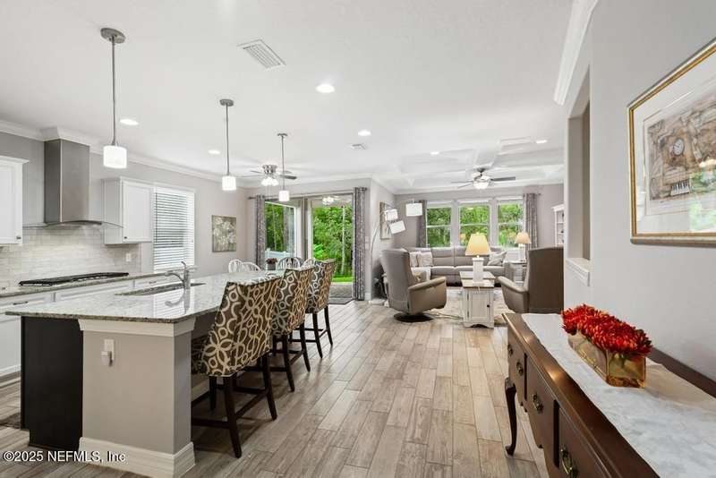 Put this one your MUST SEE LIST! A rare find Pulte home that has numerous bells and whistles you won't find in other homes! BEAUTIFUL one owner home has been meticulously maintained, recently painted inside, offers 3 bed/2ba/ + flex area for office space, huge family room with a fantastic wow factor coffered ceiling, a dining room with french doors, can make it a home office if another is needed. Kitchen is a chefs dream with white cabinets, granite counter with large island, pendant lights, subway tile backsplash, gas cooktop with 6 burners, and vented hood, double ovens, one being a convention oven/microwave. Main areas have recessed lighting, wood look tiled flooring, crown molding and more! FANTASTIC OPEN layout here, that offers everything you need for comfortable living. Private backyard backs to preserve, already fenced and large enough for POOL if desired. Widened/Pavered driveway, freshly mulched, and great curb appeal, only a short walk to AMENITY CENTER! IDEAL LOCATION!