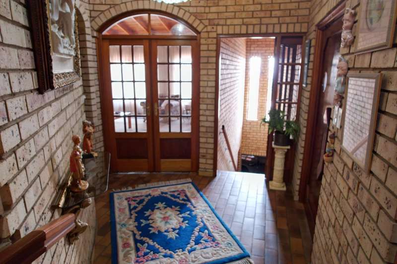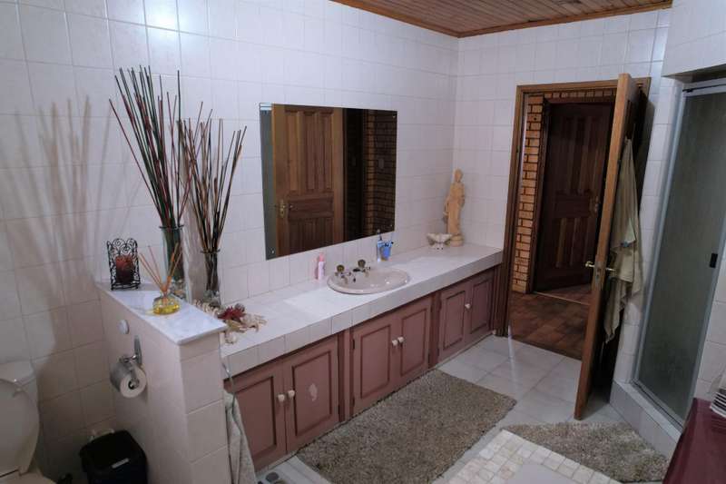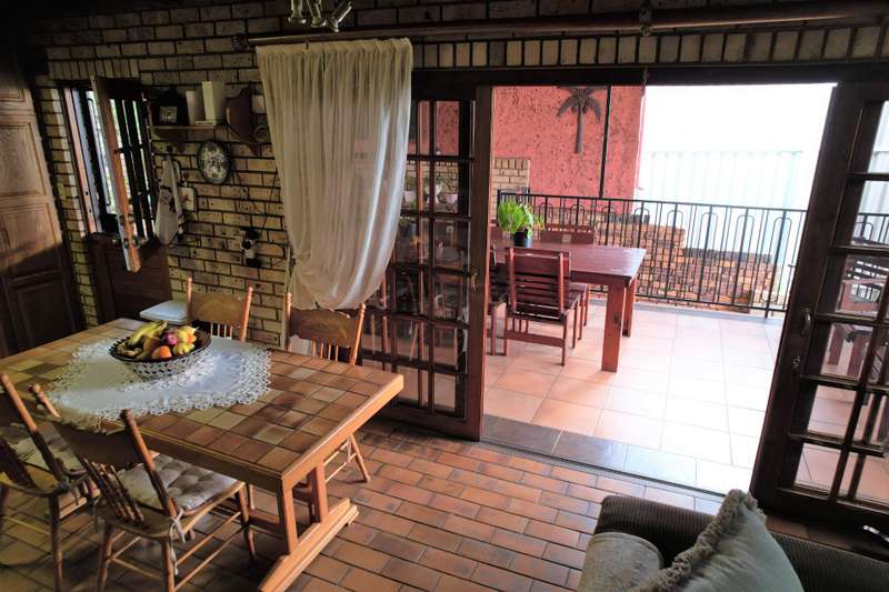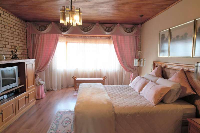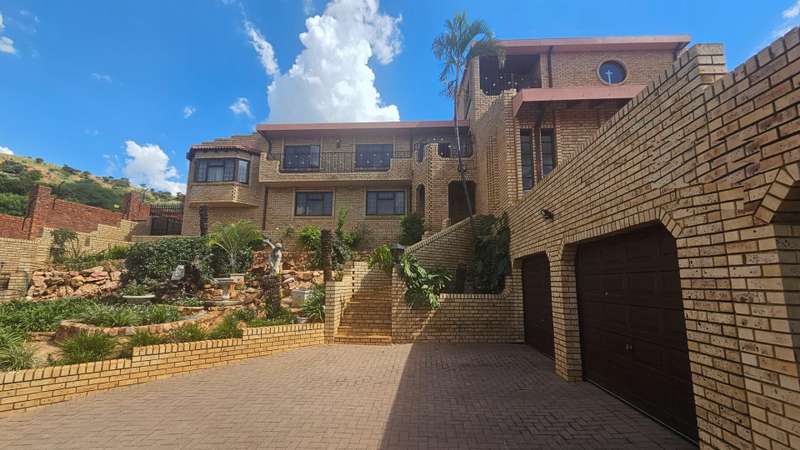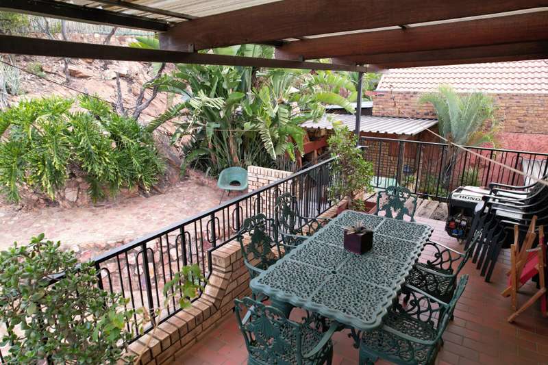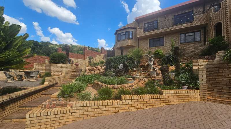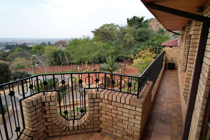 When approaching this Magnificent Multi-level Face brick House, you look up to the House and the Mountain, and get the feeling of space combined with beautiful views of the Northern Suburbs of Pretoria with the Magaliesberg behind you. When entering the House you are greeted with two doors, one to the Formal Lounge and downstairs to the Garages and Carport and the other door to the 40m?? Workroom. Adjacent to the Workroom is a Storeroom with Kitchenette as well as a Bathroom. with its own Entrance. The Workroom with the other rooms and Bathroom can be used as a Flatlet. There are also 2 Storerooms and a Workshop on this Level. The Living Areas of the House, together with the Bedrooms, Bathrooms, Kitchen and Dining room are on the Second level. The Kitchen is Open plan to the Dining Room and TV Room and is big enough to have another dining table. Access though sliding wooden doors gives access to an Enclosed Patio and braai area. There is also a Pantry, Scullery and Laundry next to the Kitchen. Down the passage you will find the Study, Guest Toilet, 4 Bedrooms and 2 Full Bathrooms. Going up to the Third Level, you will find the Large Entertainment area with Bar, Kitchenette and Toilet. The area is currently fitted a Snooker table, Table-tennis table as well as a Football Table. There is enough space for Lounge Suits as well as a play area. The Entertainment area also has an exit door to a Lovely Covered Patio overlooking the Mountain, Pool and back Garden. An Open Patio on the Northern side gives you space to view the Spectacular Magalieskruin Suburb views to the North. The House is ?? 500m??, indicating that there are enough and large rooms, from the Main Bedroom with en-suite Full Bathroom and Walk-in closet to the 3 other Bedrooms, Study and Bathroom. Added to this is a Large Workroom and Formal Lounge. The House also offers adequate Store- and Workrooms with cupboards and shelves. On the outside to the South, you will find the rocky garden with a Pool, fed with a pumped Waterfall from the pool reticulation system as well as a Spa. There are also two rooms to be finished as outside toilets next to the Pool. A Face brick Doll House is also available to be used as either Storage or Staff accommodation. The House is also surrounded by Patios and Porches where one can relax and enjoy spectacular views as well as enjoying the evening braai on the built-in braai. The House is not fitted with any cooling or heating systems since the temperature throughout the year is cool and comfortable, due to the design and flow of the House. Maintenance to the house is low and there is no lawn to be mowed. There is also a Double Garage with automated garage doors as well a Double Tandem Carport with adequate parking space. The walkway across the mountain to John Vorster Technical High School is adjacent to this Property. Contact me to view this stunning property today and to make an offer! Viewing only for Serious Pre-approved Buyers please.