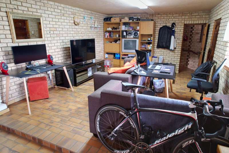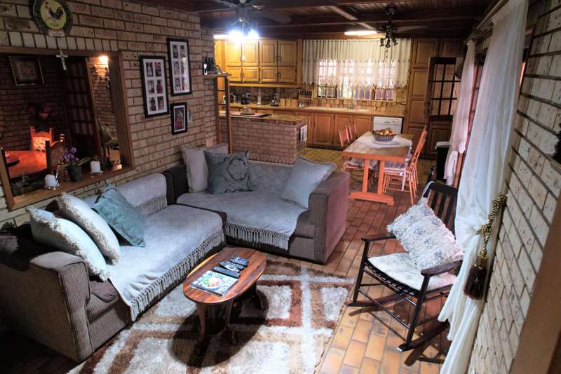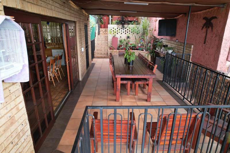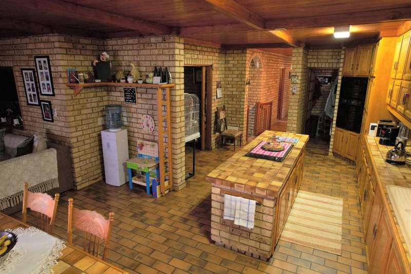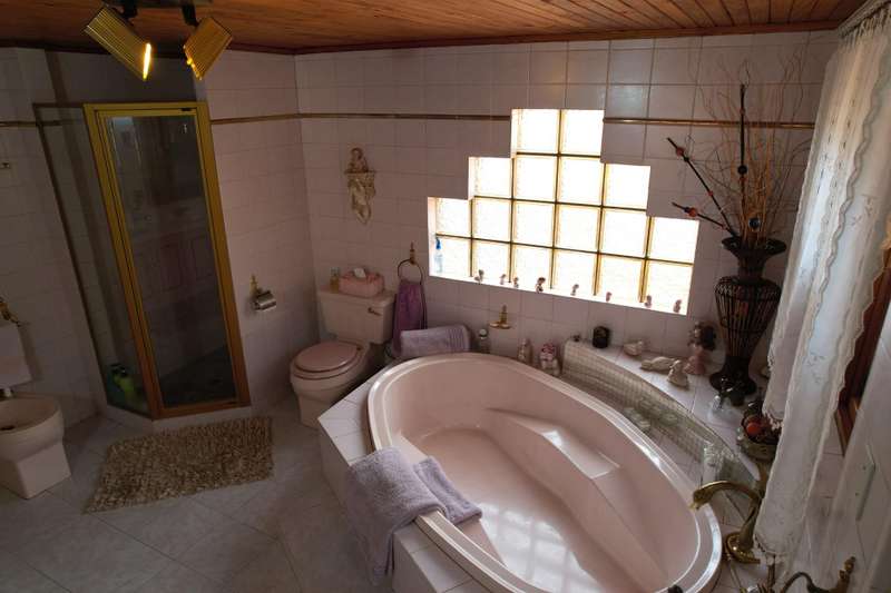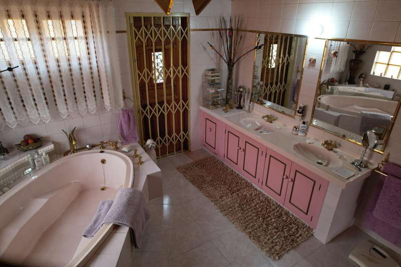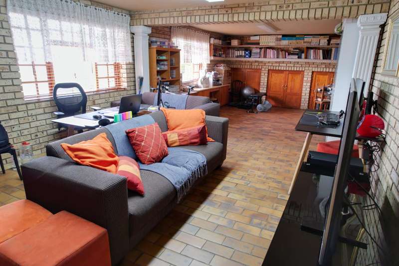 When approaching this Magnificent Multi-level Face brick House, you look up to the House and the Mountain, and get the feeling of space combined with beautiful views of the Northern Suburbs of Pretoria with the Magaliesberg behind you. When entering the House you are greeted with two doors, one to the Formal Lounge and downstairs to the Garages and Carport and the other door to the 40m?? Workroom. Adjacent to the Workroom is a Storeroom with Kitchenette as well as a Bathroom. with its own Entrance. The Workroom with the other rooms and Bathroom can be used as a Flatlet. There are also 2 Storerooms and a Workshop on this Level. The Living Areas of the House, together with the Bedrooms, Bathrooms, Kitchen and Dining room are on the Second level. The Kitchen is Open plan to the Dining Room and TV Room and is big enough to have another dining table. Access though sliding wooden doors gives access to an Enclosed Patio and braai area. There is also a Pantry, Scullery and Laundry next to the Kitchen. Down the passage you will find the Study, Guest Toilet, 4 Bedrooms and 2 Full Bathrooms. Going up to the Third Level, you will find the Large Entertainment area with Bar, Kitchenette and Toilet. The area is currently fitted a Snooker table, Table-tennis table as well as a Football Table. There is enough space for Lounge Suits as well as a play area. The Entertainment area also has an exit door to a Lovely Covered Patio overlooking the Mountain, Pool and back Garden. An Open Patio on the Northern side gives you space to view the Spectacular Magalieskruin Suburb views to the North. The House is ?? 500m??, indicating that there are enough and large rooms, from the Main Bedroom with en-suite Full Bathroom and Walk-in closet to the 3 other Bedrooms, Study and Bathroom. Added to this is a Large Workroom and Formal Lounge. The House also offers adequate Store- and Workrooms with cupboards and shelves. On the outside to the South, you will find the rocky garden with a Pool, fed with a pumped Waterfall from the pool reticulation system as well as a Spa. There are also two rooms to be finished as outside toilets next to the Pool. A Face brick Doll House is also available to be used as either Storage or Staff accommodation. The House is also surrounded by Patios and Porches where one can relax and enjoy spectacular views as well as enjoying the evening braai on the built-in braai. The House is not fitted with any cooling or heating systems since the temperature throughout the year is cool and comfortable, due to the design and flow of the House. Maintenance to the house is low and there is no lawn to be mowed. There is also a Double Garage with automated garage doors as well a Double Tandem Carport with adequate parking space. The walkway across the mountain to John Vorster Technical High School is adjacent to this Property. Contact me to view this stunning property today and to make an offer! Viewing only for Serious Pre-approved Buyers please.