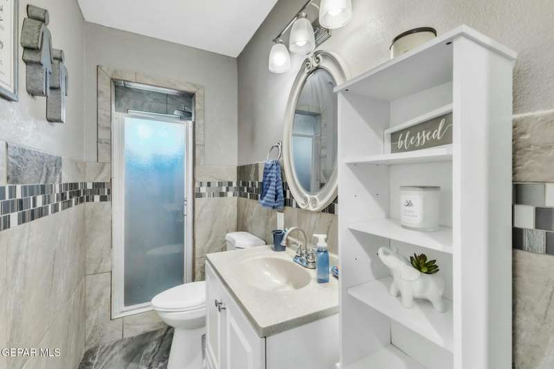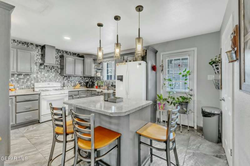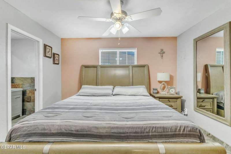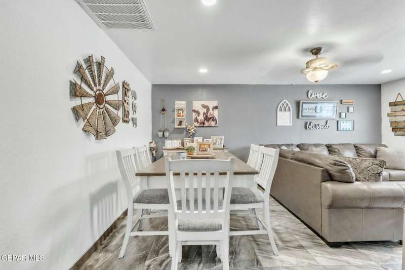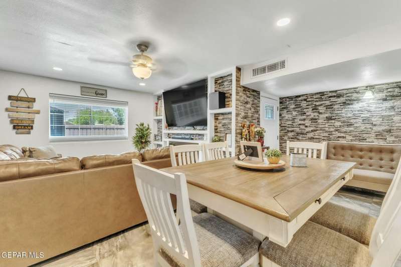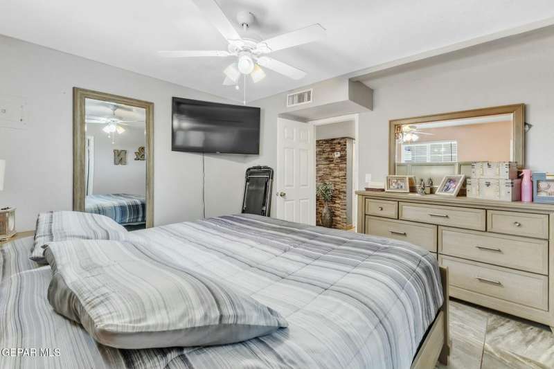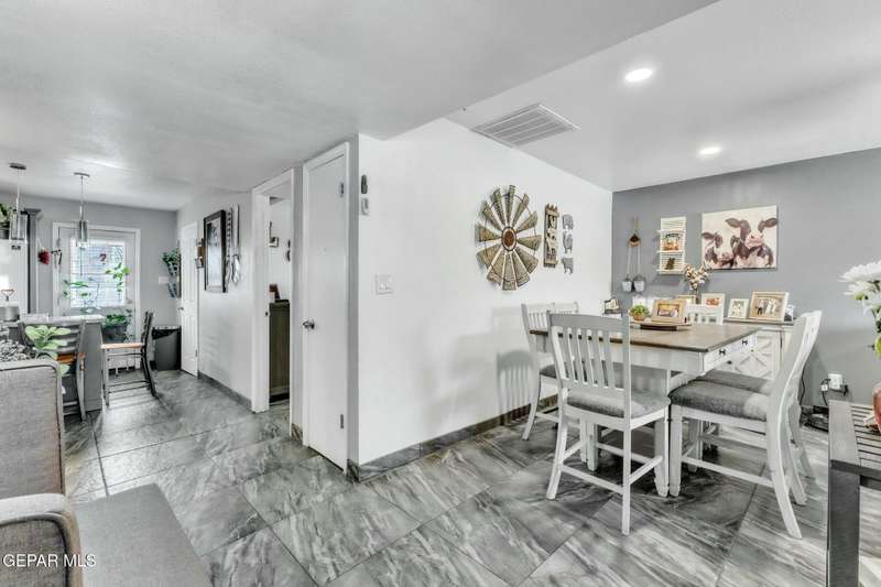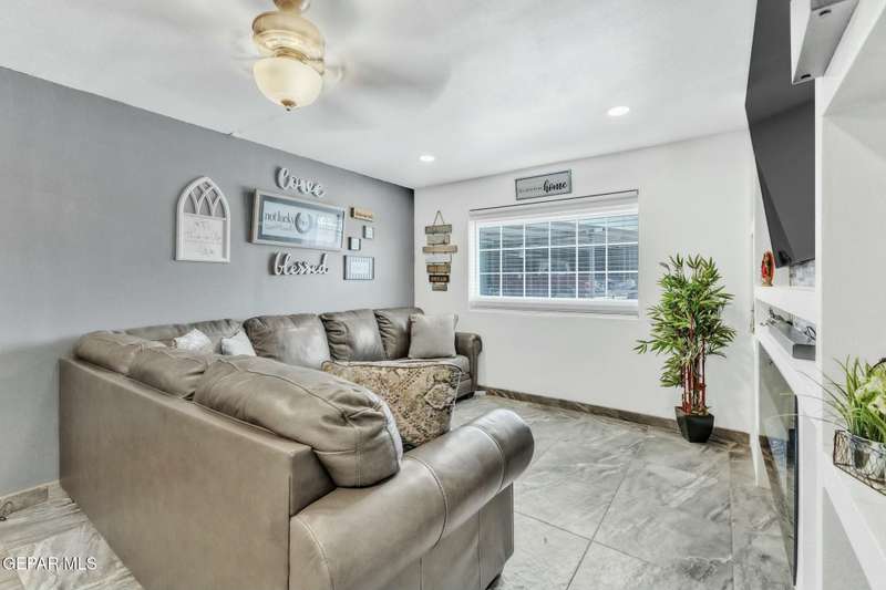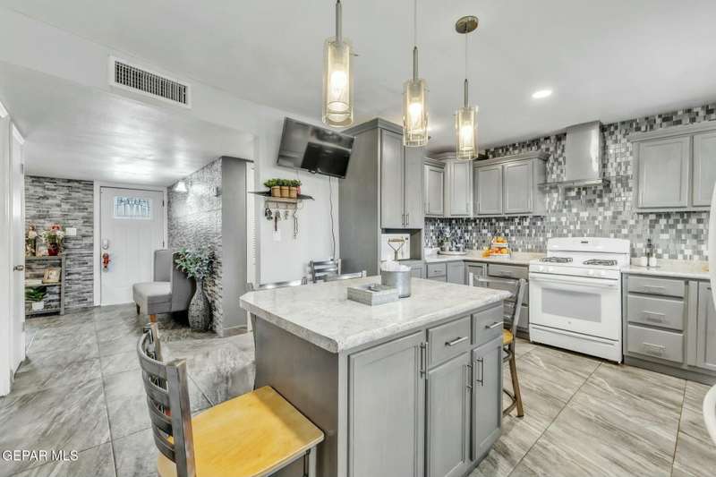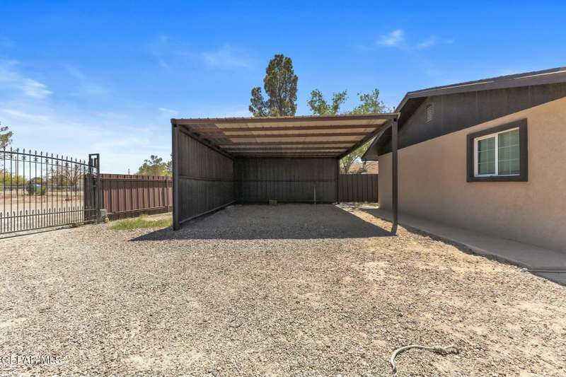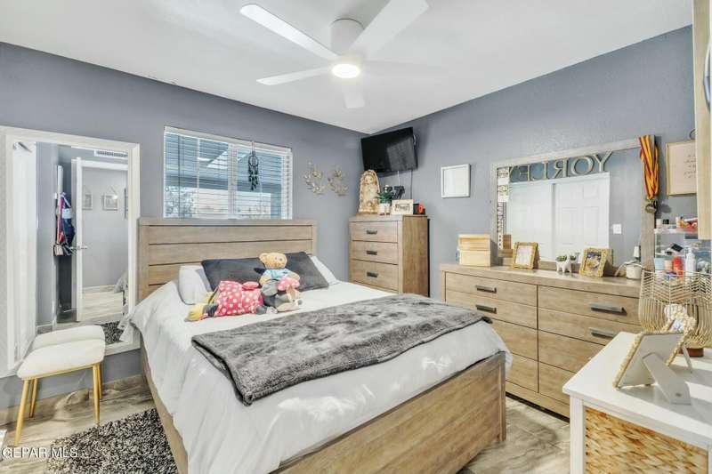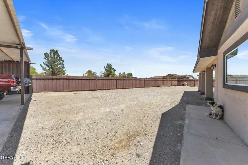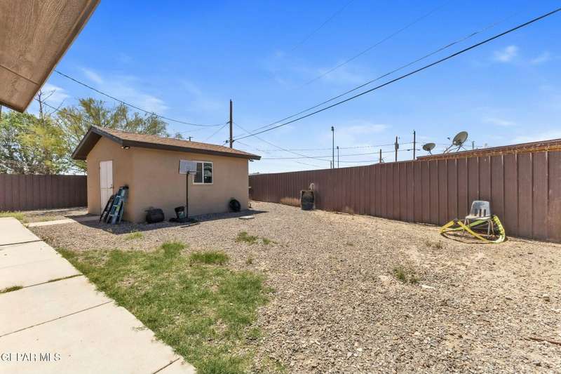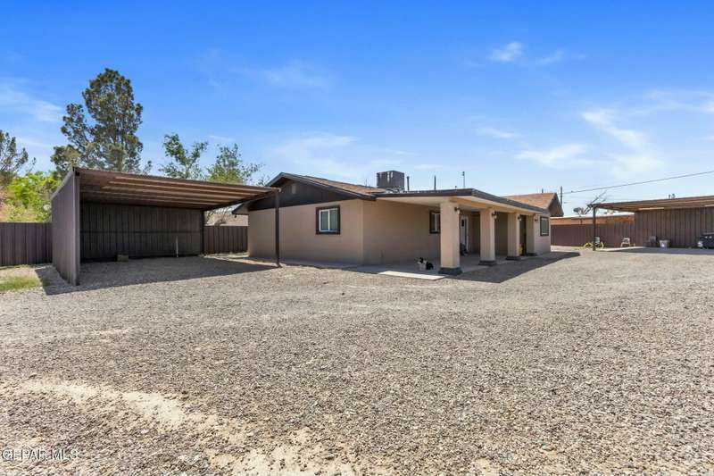 Discover this beautifully updated, move-in ready home on a desirable corner lot. Enjoy the convenience of two substantial pergolas, perfect for vehicle coverage and projects. Relax on the porch with dual ceiling fans, ideal for warm Texas evenings. Located within the highly acclaimed A-rated Socorro Independent School District. Step inside and be captivated by the fresh, top-to-bottom interior and exterior repaint. Benefit from energy-efficient double-pane windows and stunning renovations in the living room, kitchen, and master suite. Featuring three bedrooms, two bathrooms, and a converted room offering an expansive walk-in closet, this home provides both modern style and exceptional privacy.