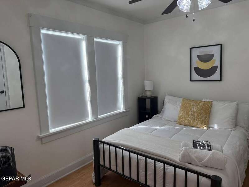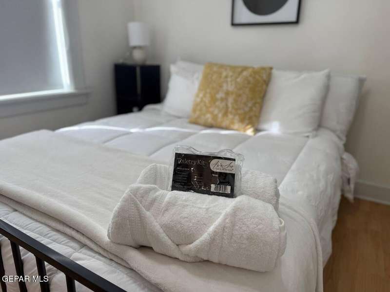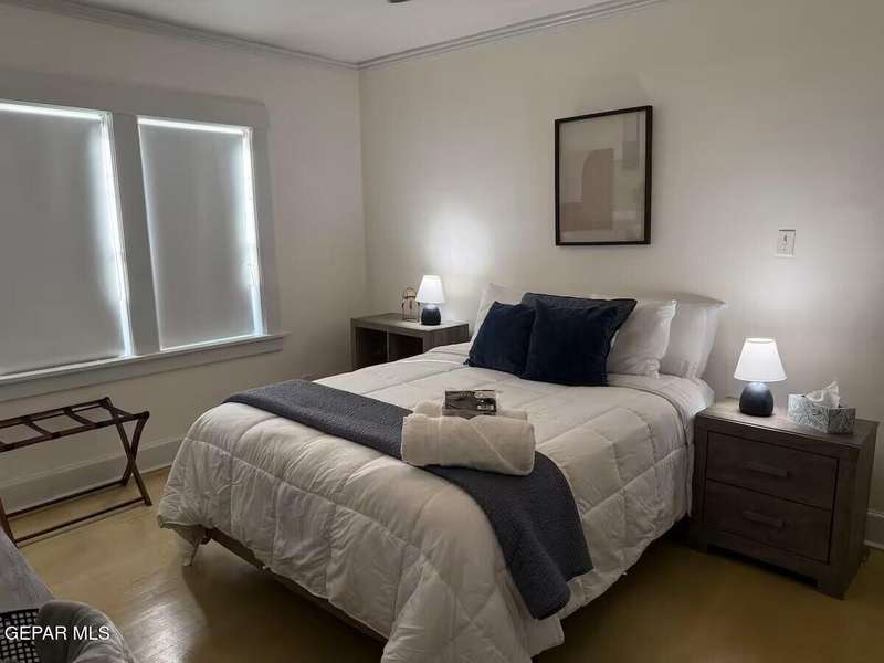 Beautiful, furnished, and in a perfect location: only two blocks away from I-10 west, I-54 and Loop 375, Ft.Bliss and 7-10 minutes to Hospitals, Medical Schools District, shopping, and restaurants... Centrally located no matter where your activities take you. The bathroom and the kitchen were fully remodeled and are bright and inviting. The bedrooms are spacious, with generous closets and dressers. Each window, in the living area and bedrooms is covered with darkening shades for privacy and convenience for those with night shifts who need quietness and darkness during the day. Comfortable beds. Fully equipped to make your stay convenient. Bring your own Firestick and connect to your streaming accounts. High-speed internet to work or study. Small dogs are negotiable. SOME Utilities and internet are included. Washer/Dryer on-site. One car driveway. Smoke alarms, camera, and exterior solar motion lights. Credit/background check required for adults 18+years and deposit required (no exceptions).