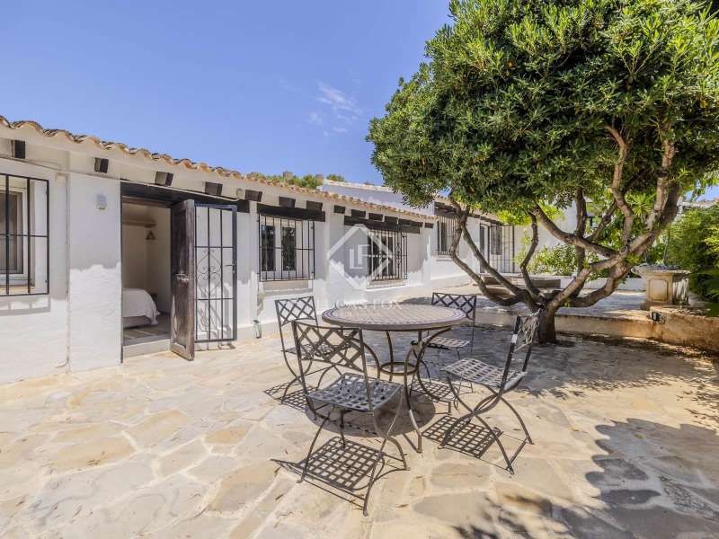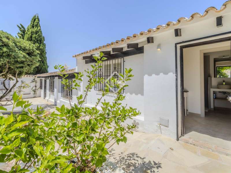 Nestled in the serene countryside of Jesús Pobre, this enchanting property offers a rare blend of tranquility and natural beauty. Surrounded by lush greenery, the property boasts panoramic views across the rolling valley, distant hills, and the iconic Montgó Mountain, a perfect backdrop for peaceful country living. This two-level property is situated on a completely flat plot and an electric gate opens to reveal an expansive parking area that can accommodate various vehicles and is completed with private garages. Inside the home, the main level welcomes us with a bright and spacious living room, filled with natural light thanks to the numerous windows. The fully equipped kitchen is a chef's dream, featuring a central island and top of the range appliances. Perfectly positioned adjacent to the pool terrace, it allows for effortless indoor-outdoor living and al fresco dining. The dining room is next to the kitchen and boasts a high ceiling and a wood-burning fireplace, creating a warm and cosy atmosphere for family dinners or social gatherings. Conveniently located just off the living and dining area is a guest toilet, ideal for visitors and everyday practicality. A large central hall connects all the main living areas, including a generously sized room currently used as a home office. This room showcases a beautiful and authentic stone fireplace, a stunning feature that adds charm and character. With direct access to a private terrace, this versatile space could easily be converted into a spacious bedroom or guest suite. Upstairs, the home continues to impress with a wonderful main suite, including a walk-in wardrobe, an en-suite bathroom, and a charming Juliette balcony. From here we can enjoy beautiful views of the Montgó Mountain and views towards the town of Javea, the perfect spot to take in sunrises or unwind at sunset. Adjacent to the main house and pool area are two independent guest apartments, each offering two double bedrooms and a bathroom. Ideal for visiting guests or extended family members, providing privacy and comfort while remaining fully integrated into the overall charm and layout of the home. Conveniently located near the kitchen is an independent laundry and storage room, offering ample space and practicality for daily living. The outdoor living area is a wonderful oasis, centred around a large swimming pool, it offers multiple terraces surrounding the home, perfect for sunbathing, entertaining or simply relaxing. A fully equipped summer kitchen makes al fresco dining effortless. Whether hosting friends or enjoying the beauty of the landscape, the outdoor spaces are designed for maximum comfort and enjoyment. There is also a sauna currently being completed next to the summer kitchen, perfect for relaxation. The landscaped garden offers both lawn and gravelled areas, mature hedges, palm trees, Mediterranean plants, fruit trees and seasonal flowers. This exceptional property, fully renovated in 2022, is an ideal family home, as well as the perfect retreat for nature lovers, remote workers, or anyone seeking a peaceful yet connected lifestyle on the Costa Blanca. Contact us to book a viewing.