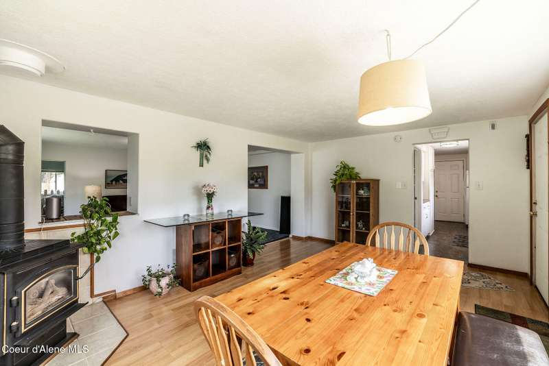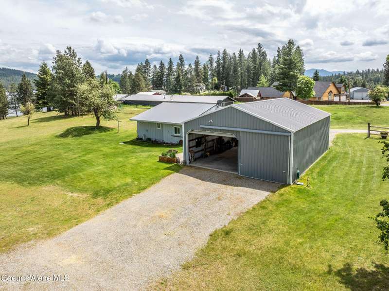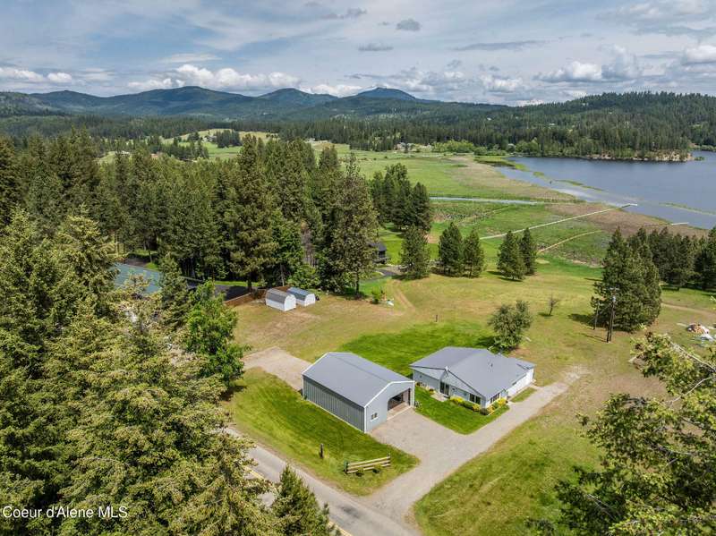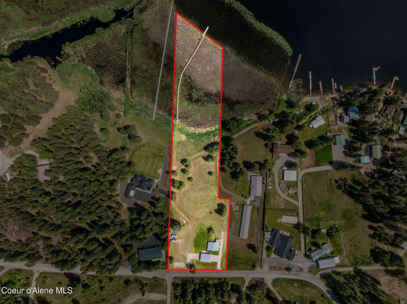 Discover your dream lifestyle at this charming Hauser Lake home, offering 200' of wonderful lake frontage and scenic views! This 2BD/2BA home, with 1,269 sq.ft., and add'l office/BD space sits on 3.64 acres of serene beauty. Live comfortably in the existing home while you build your dream house, with the county allowing the current home to remain as in-law quarters or a potential rental income source. Take a peaceful stroll on the floating boardwalk to the lake, launch your kayak, or extend the dock for boating adventures. The property includes a spacious 30 x 40 shop where the 10 x 15 heated/insulated office/BD is, and two additional storage sheds, perfect for all your needs. Enjoy the rare opportunity of owning waterfront acreage on a paved, county-maintained road, complete with community water, private septic system, and natural gas, while being approximately 20 minutes from Post Falls' shopping and dining. This unique property offers the perfect blend of solitude and convenience.