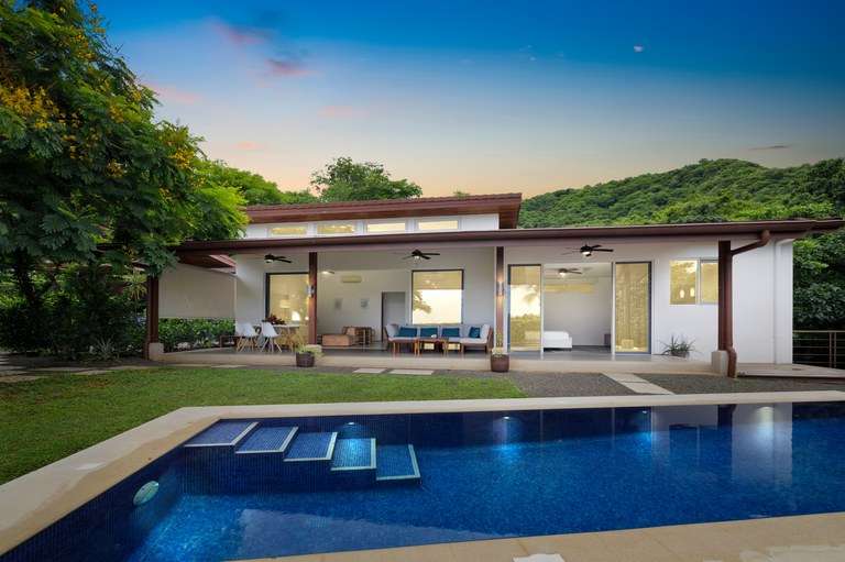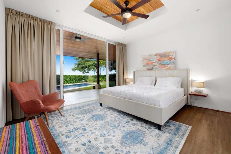 Discover Casa Garza Unit 34, a contemporary ocean-view residence located in the prestigious Las Ventanas de Playa Grande community on Costa Rica's Pacific coast. This 322 m2 (3,450 sq ft) home features 3 bedrooms, 2 bathrooms, a TV room, office space, and a modern open layout designed for natural ventilation and abundant light. The indoor living areas seamlessly connect with wooden terraces, a shaded outdoor lounge, and a saltwater pool framed by almond trees and lush gardens. Just minutes from Playa Grande's world-class surf and the protected Las Baulas Marine National Park, Casa Garza offers a perfect balance of luxury, privacy, and access to Costa Rica's vibrant beach lifestyle.