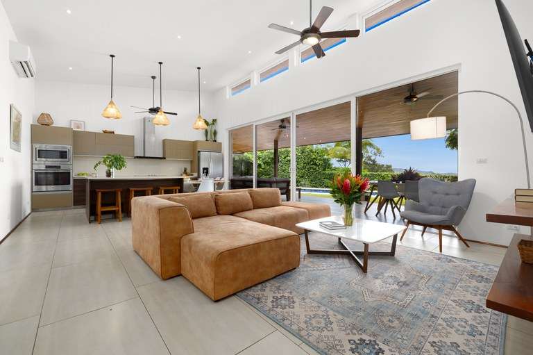The residence spans a total of 322 square meters (3,450 sq ft), including approximately 187 square meters (2,010 sq ft) of thoughtfully designed interior living space. The intelligent floor plan optimizes cross-ventilation and natural light, creating a cool and refreshing indoor environment that harmonizes with the surrounding landscape. A contemporary open-concept design connects the kitchen, dining area, and living room with an expansive outdoor terrace and a sparkling saltwater pool, perfect for entertaining or unwinding in complete privacy.