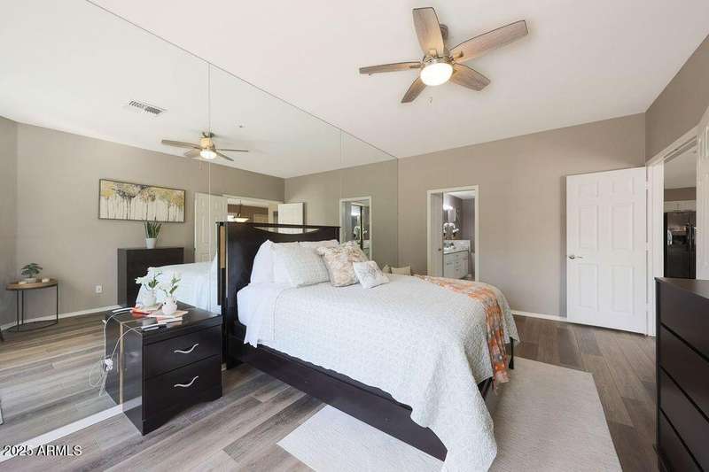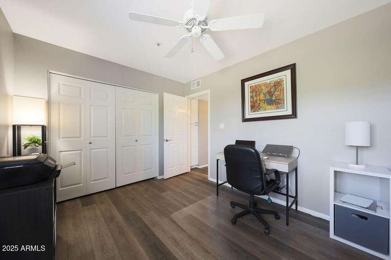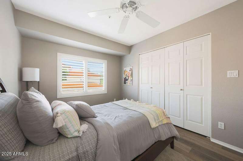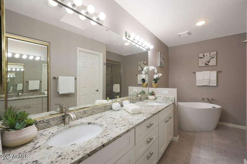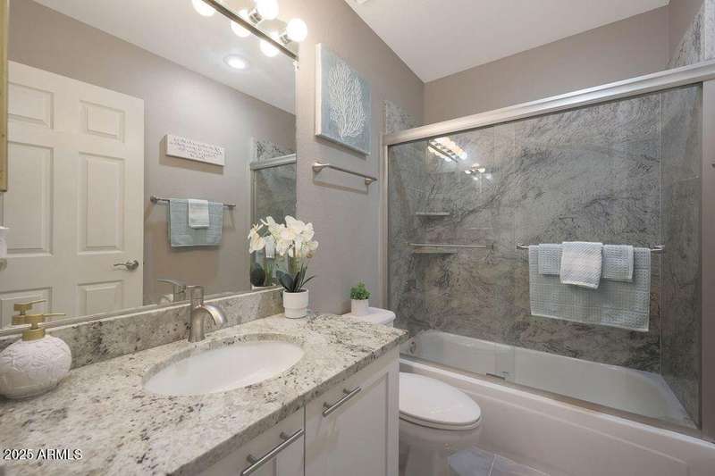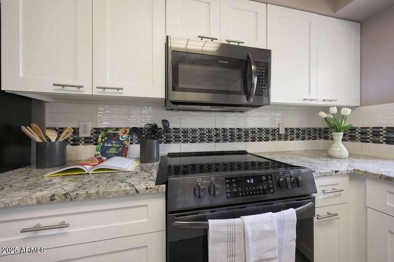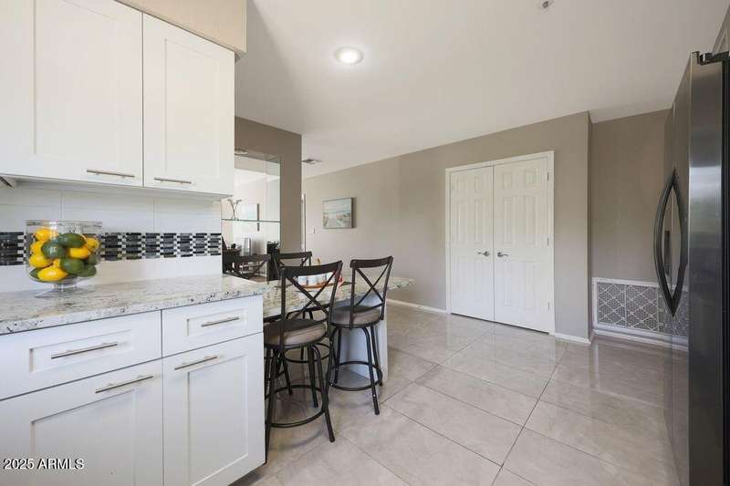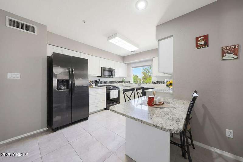 Exciting opportunity with newly adjusted price by discover this rare 3-bedroom, 2-bathroom condo located on the desirable second floor with no neighbors above. This highly desirable residence features an expansive private patio—nearly 200 sq ft—that seamlessly extends the indoor living space and offers tranquil views of the neighboring park and its mature trees. The home has been thoughtfully updated with a fully renovated kitchen, including shaker-style cabinetry, granite countertops, a custom tile backsplash, and sleek Frigidaire ''Gallery'' black stainless steel appliances. The spacious primary suite boasts a newly remodeled ensuite bathroom featuring dual vanities, a soaking tub, and a separate walk-in shower. Additional highlights include a well proportioned layout, ample natural