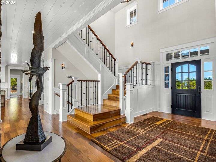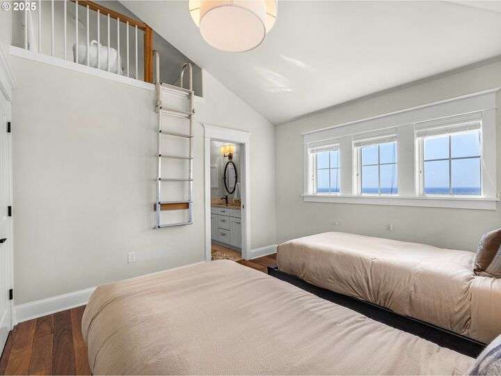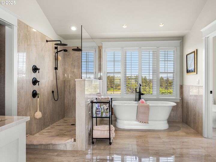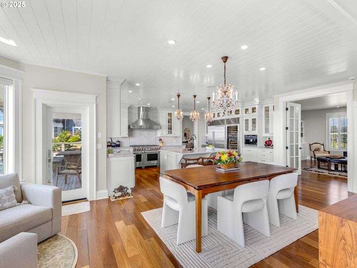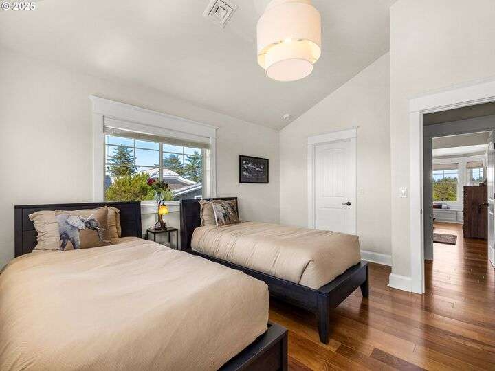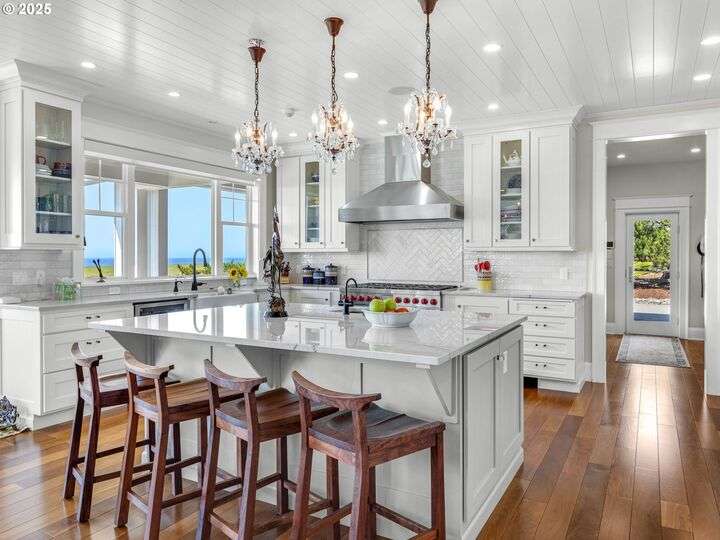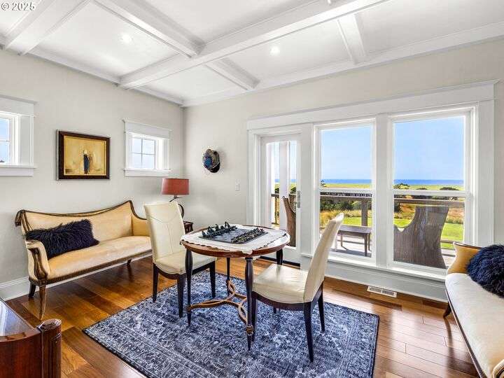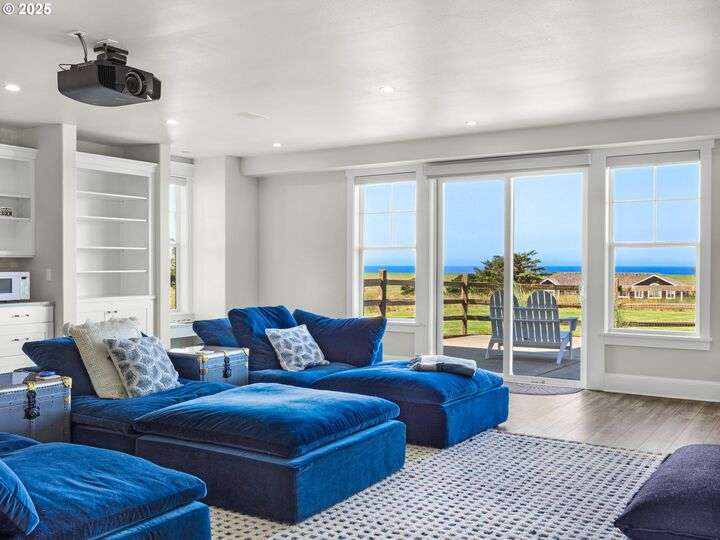 Welcome to your magnificent coastal estate in Pinehurst Estates, a luxurious sanctuary spanning 6,583 sq. ft. This exquisite home offers six bedrooms and six bathrooms, most with stunning ocean views. Timeless elegance meets modern amenities across three levels, perfect for luxurious living and entertaining. Unobstructed ocean views welcome you as you enter the grand room with a gas fireplace and a dining area flowing into the gourmet kitchen with high-end appliances and a walk-in pantry. The home features modern conveniences like a Control4 system, Toto automatic washlets, circulating hot water, and heated tile floors. The exterior boasts a large covered front porch, landscaped grounds with irrigation, and expansive lawn areas. The gated community offers amenities like a heated pool, jacuzzi, tennis court, basketball court, and a boardwalk to the beach just a short walk away. Experience coastal luxury living at its finest in this extraordinary Pinehurst Estates home.