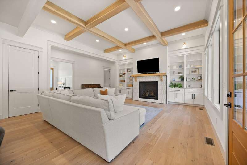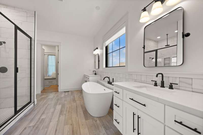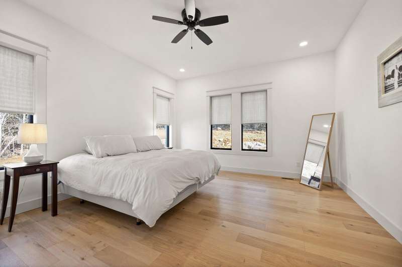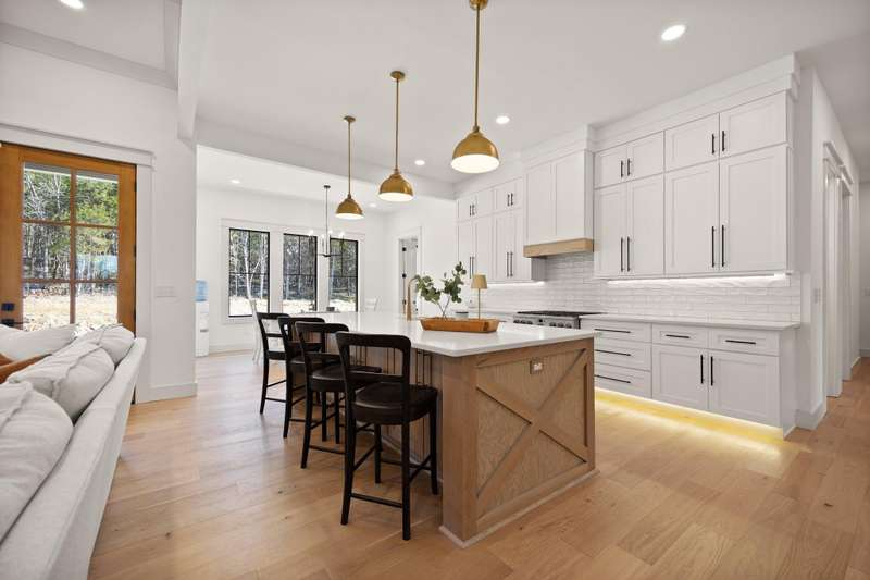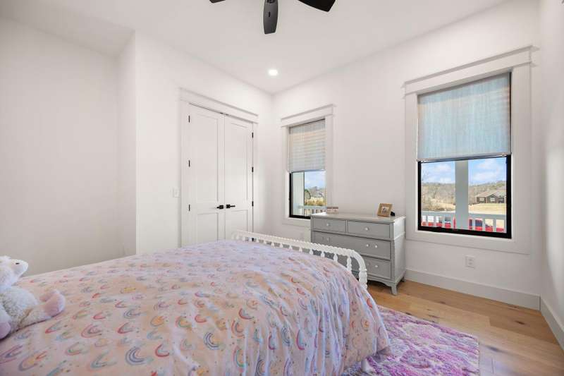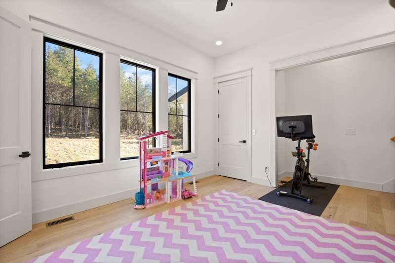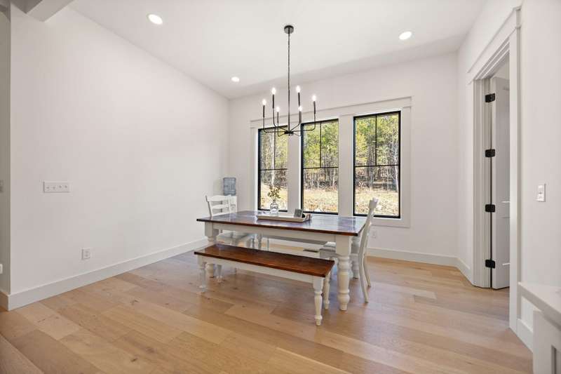 Modern Farmhouse Perfection! Built in 2023, this contemporary farmhouse offers the perfect blend of beauty and peaceful living. Situated at the end of a quiet cul-de-sac, this 5-bedroom, 4.5-bathroom home is well designed for families and entertaining. The heart of the home is the stunning kitchen, open to the dining area and family room with a gas fireplace and wood-beamed ceiling. Hardwood floors and carefully selected finishes like quartz countertops, tile and beautiful fixtures add luxury throughout. The main level offers four bedrooms, plus a flexible bonus room perfect for a home office, playroom, or exercise space. The primary suite is a true retreat, with a spa-like bathroom, freestanding tub, gorgeous tiled shower, and double vanities. The upstairs guest suite has its own full bath and provides a comfortable area for visitors. Closets and storage cubbies are abundant. 3rd garage bay has great potential as a shop or hobby area. Large windows create an inviting atmosphere with plenty of natural light. The covered patio in back provides woodland views, perfect or entertaining or quiet enjoyment. Modern design and a peaceful, convenient location make this an exceptional home.