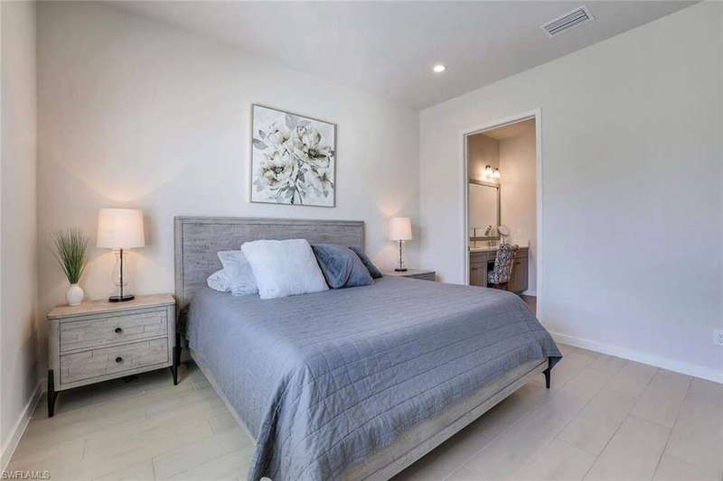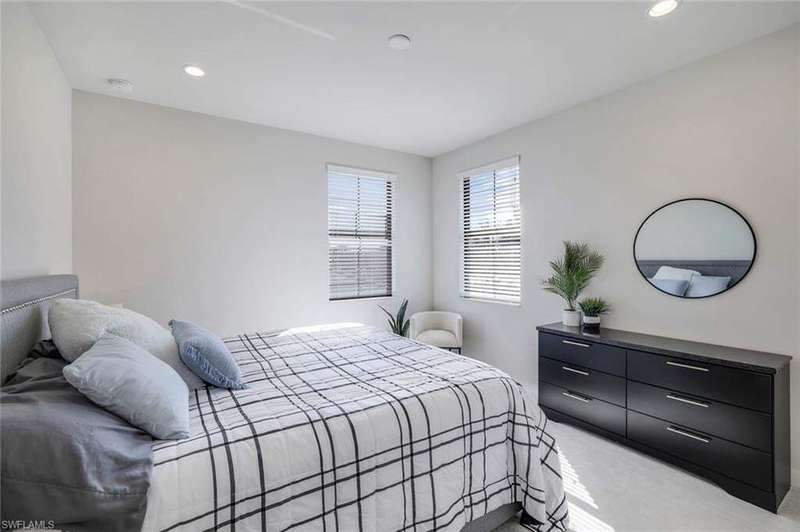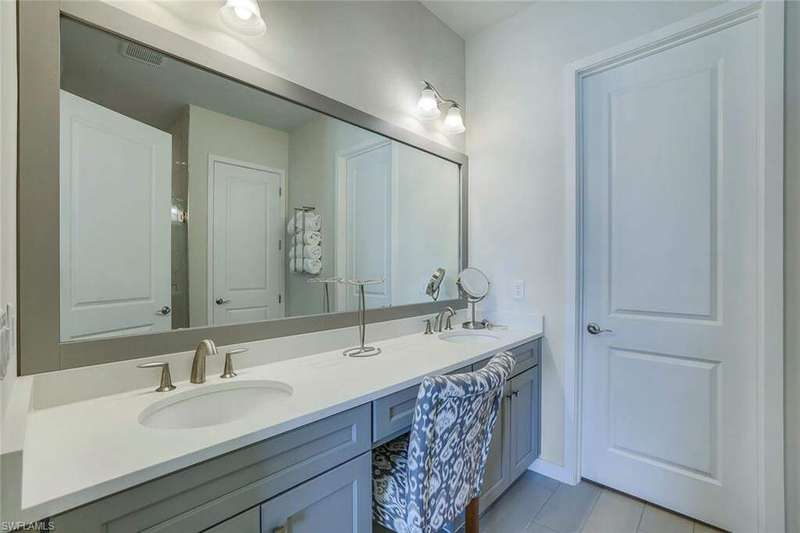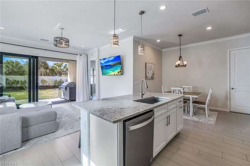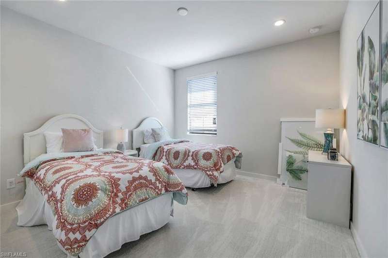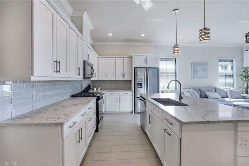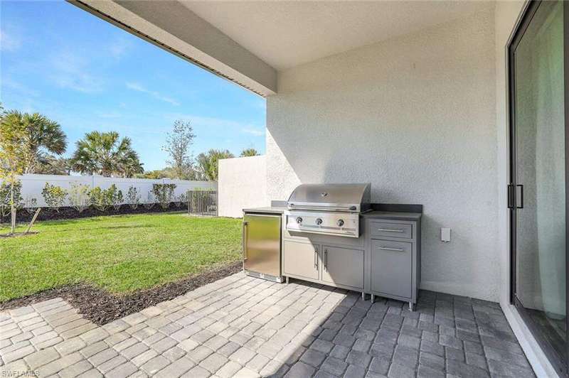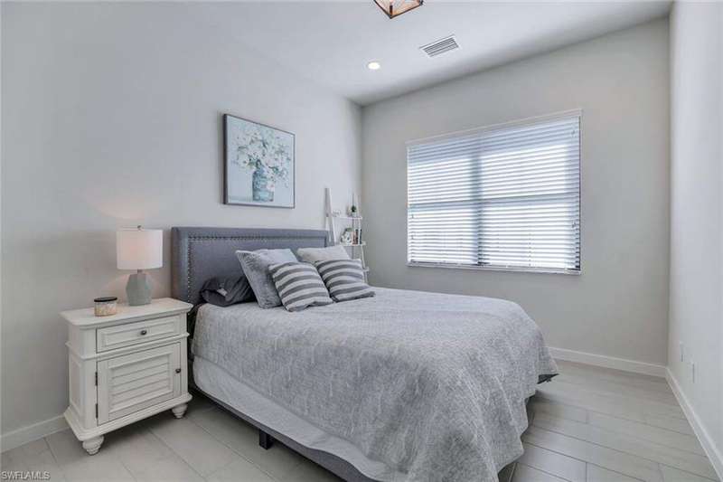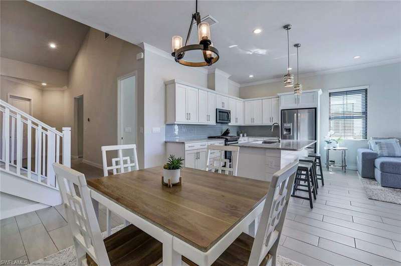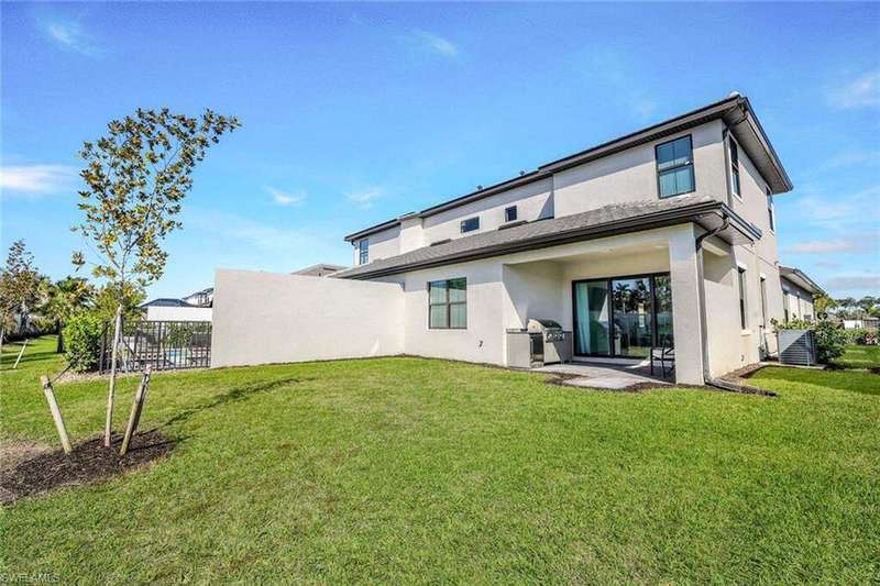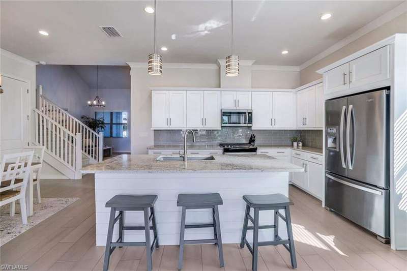 GREAT PRICE for a 4 Bedroom + Loft / 3 Bathroom home in the desirable Abaco Pointe community! Come and see this large two-story home with a Chef's Kitchen with beautiful shaker cabinets, stainless steel appliances, Quartz countertops, Natural gas cooktop, a Large Island with seating, and a casual dining area off to the side. Upon entering the front door, a large living area with a vaulted ceiling to the second floor. The Master Suite has a walk-in closet and the Master Bathroom has dual sinks and a large shower. The first floor also has another bedroom, full bath, and a laundry room. The second floor is comprised of 2 additional bedrooms, a full bath, and a Loft area. The two-car garage comes with epoxy flooring. The home has Impact-resistant windows and doors and has window coverings throughout. Covered lanai has a built-in grill area and looks out onto the spacious backyard with room for a Pool. Abaco Pointe is a small community with low HOA fees, a Clubhouse with an exercise room, and a community Pool and Spa. It is located close to the new Founder's Square with many dining/shopping options and it is close to many top-rated schools. And within miles to Naples' finest beaches.