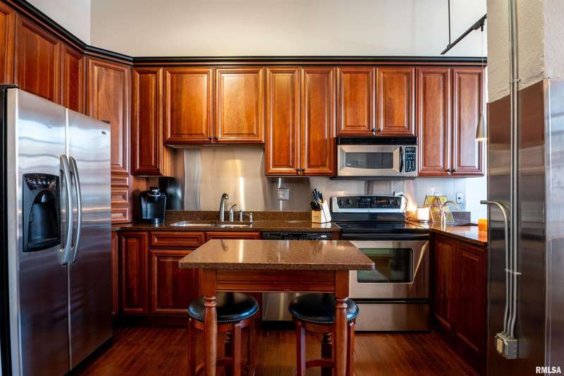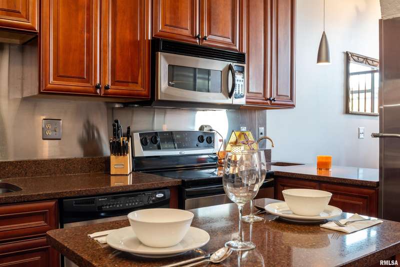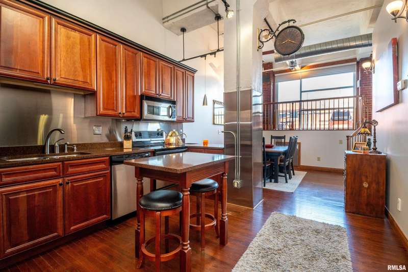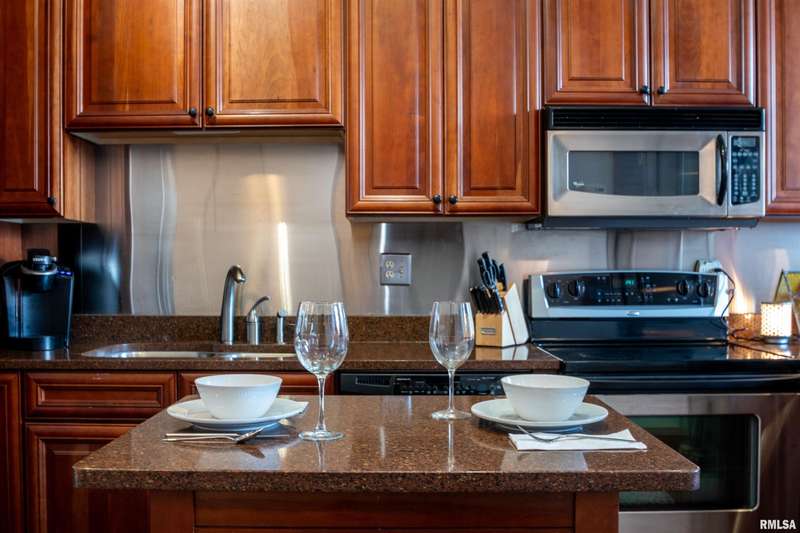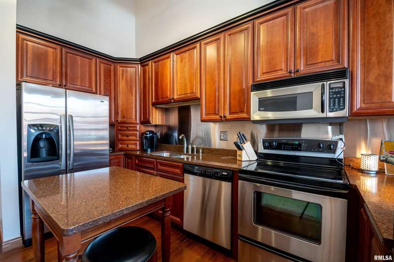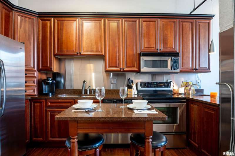 Prepare to be impressed by this luxurious condo, where breathtaking river views and high-end design come together in perfect harmony. Step into a beautifully open floor plan with hardwood floors bathed in natural light from oversized windows, all overlooking the scenic riverfront and your private balcony. The heart of the home is the exquisite kitchen, featuring stunning custom cabinetry that offers both beauty and function, along with solid stone countertops and ample storage space — ideal for both everyday living and entertaining. Enjoy the peace of a quiet building with secure access, and take full advantage of its prime downtown Peoria location — where everything from dining to entertainment is just a short walk away. This is city living at its finest, with unmatched views and designer-quality interiors. Schedule your visit today!