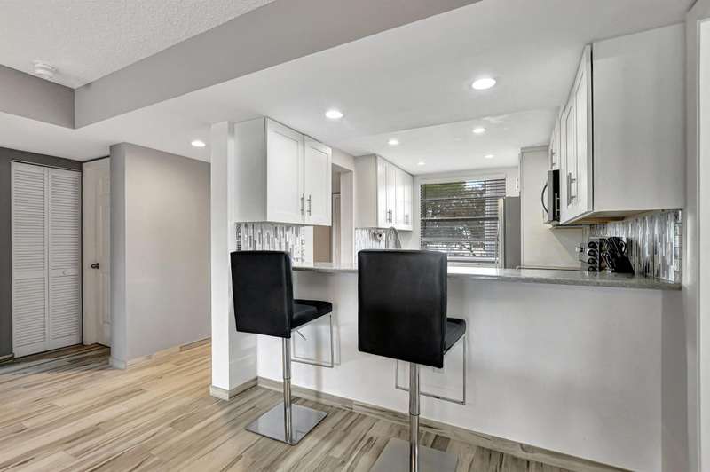 Welcome to your exquisite lakeside retreat in the heart of Central Boca Raton, where luxury meets tranquility! This stunning 2-bedroom, 2-bathroom condo boasts panoramic lake views from both the elegant living room and primary suite. Revel in the comfort of a brand-new A/C unit , complemented by an oversized washer and dryer for ultimate convenience. The residence features sophisticated ceramic tile throughout, a chef's kitchen adorned with custom cabinetry, and recessed lighting that enhances its charm. Both bathrooms and the kitchen have been tastefully updated, offering a contemporary flair. Freshly painted in calming neutral tones. Located within a community serving A-rated schools.