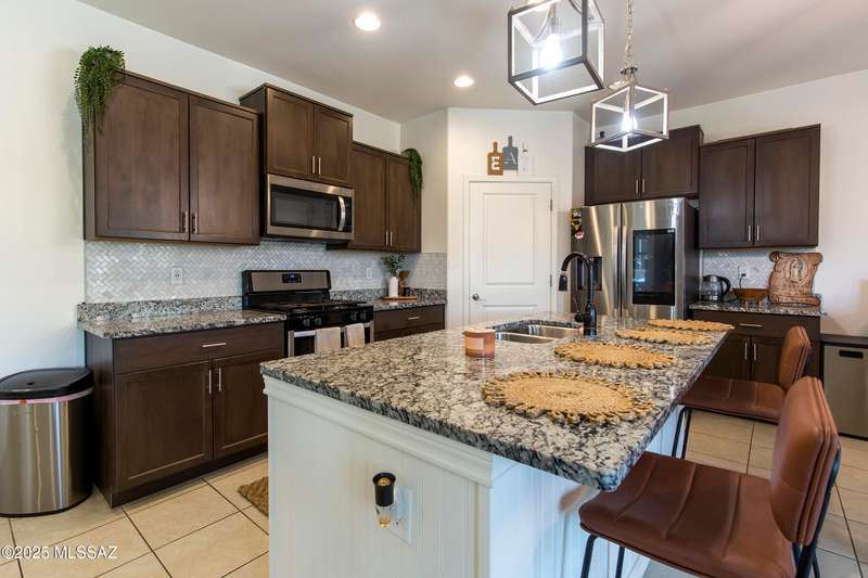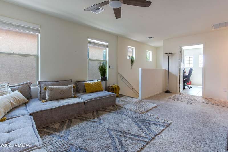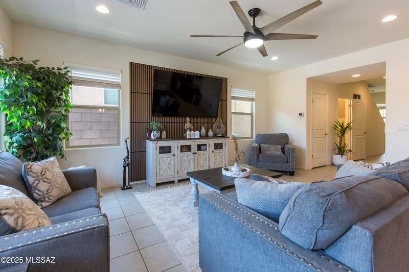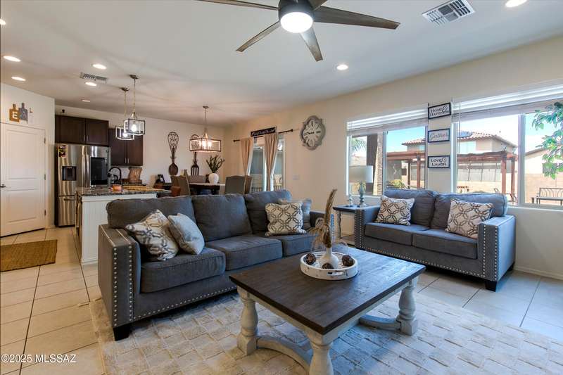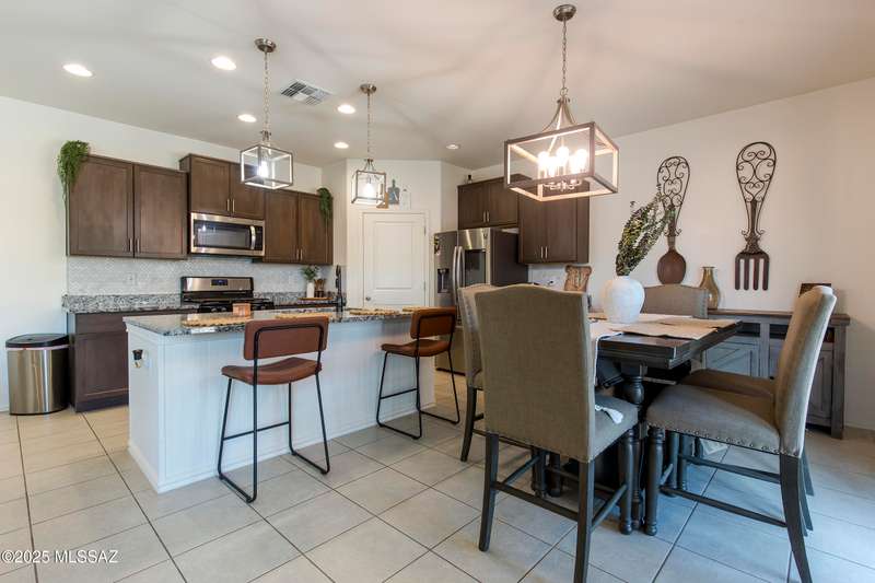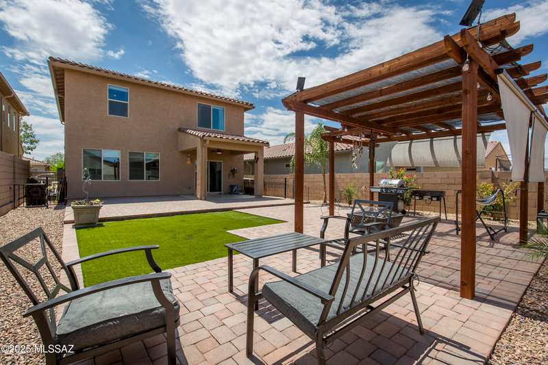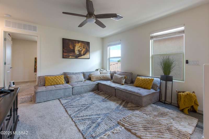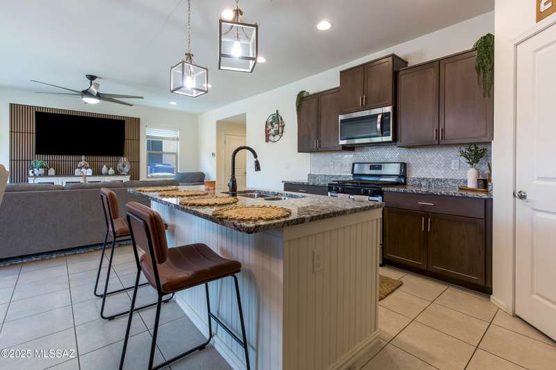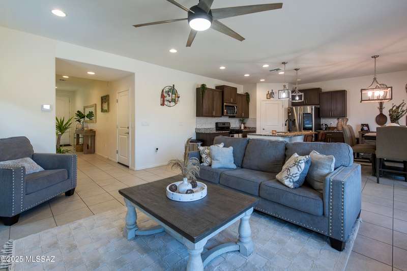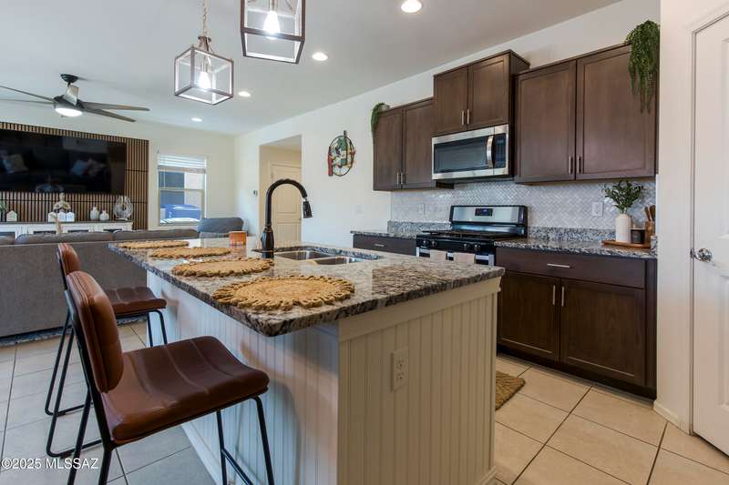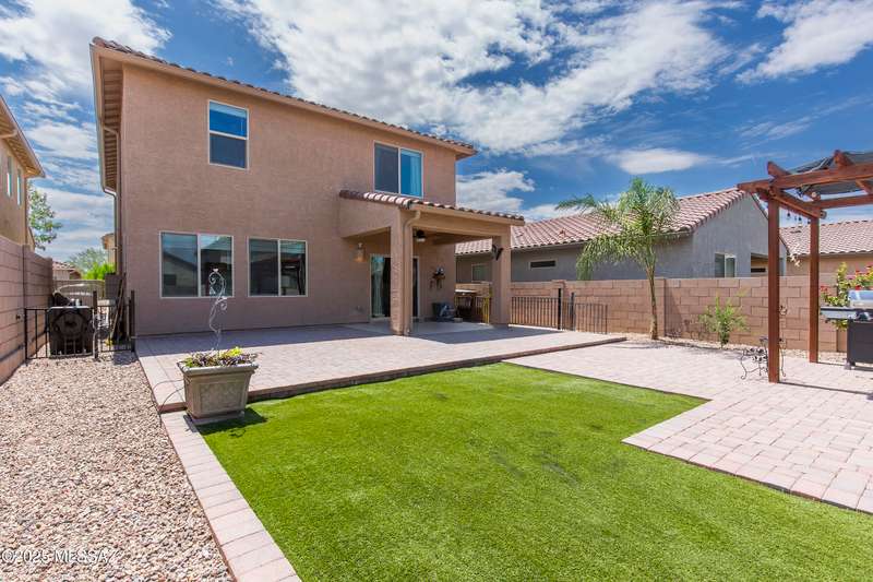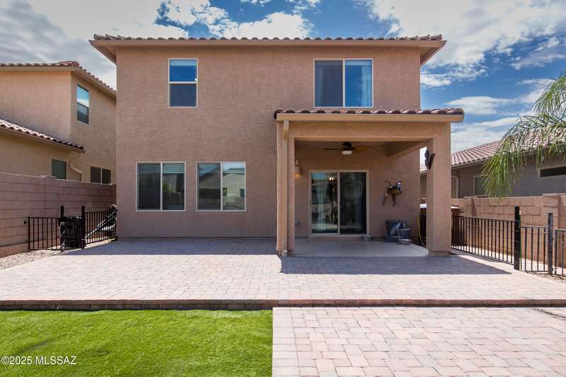 Almost new & upgraded Meritage built home in desirable La Estancia De Tucson. Lower level features family room, dining area & powder bath. Chef's kitchen offers beautiful granite counters, staggered cabinets, stainless steel appliances, pendant lights, walk-in pantry & island w/breakfast bar. Upper level has a large loft, perfect for a 2nd family room, 2 guest bedrooms, guest bath & primary suite. Primary suite has a large walk-in closet w/built-ins, shower, makeup area & dual vanities. Backyard has a covered patio, turf area, dog run & paver sitting area w/ramada for shade. Don't miss out on this fabulous home!