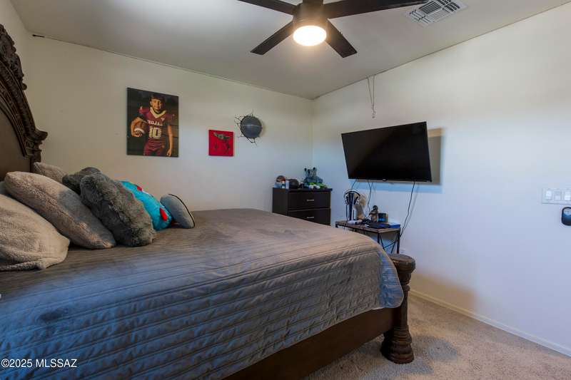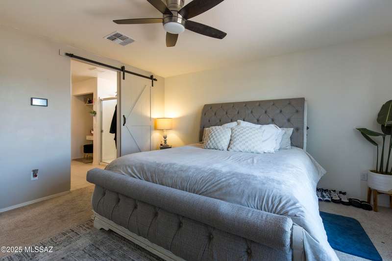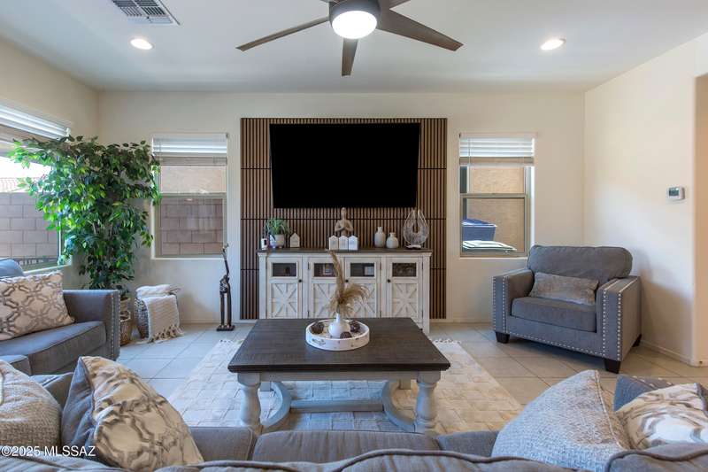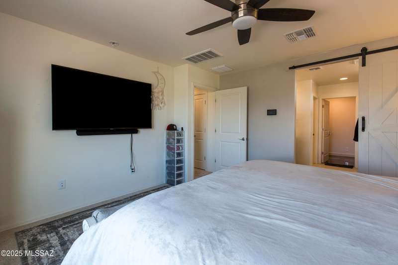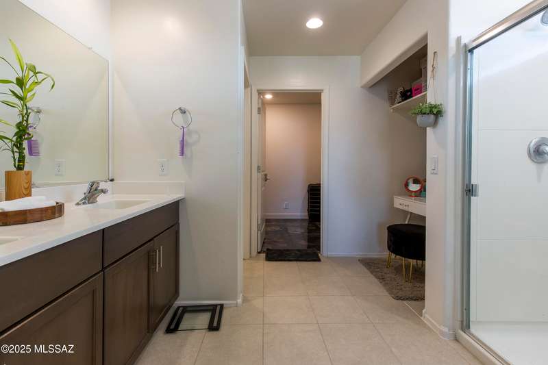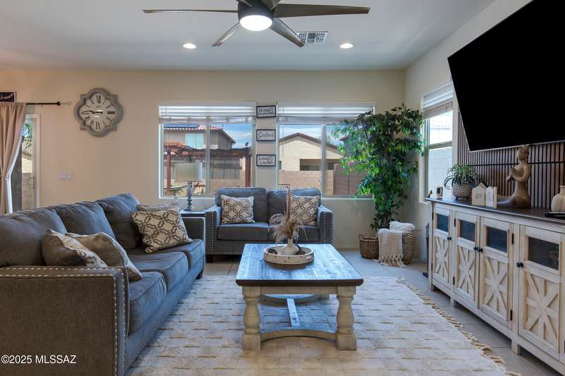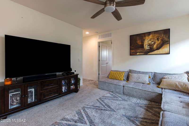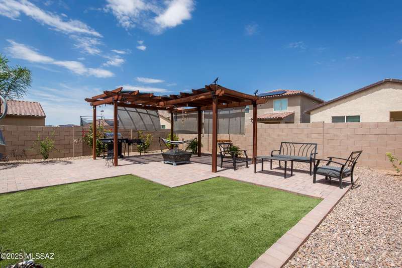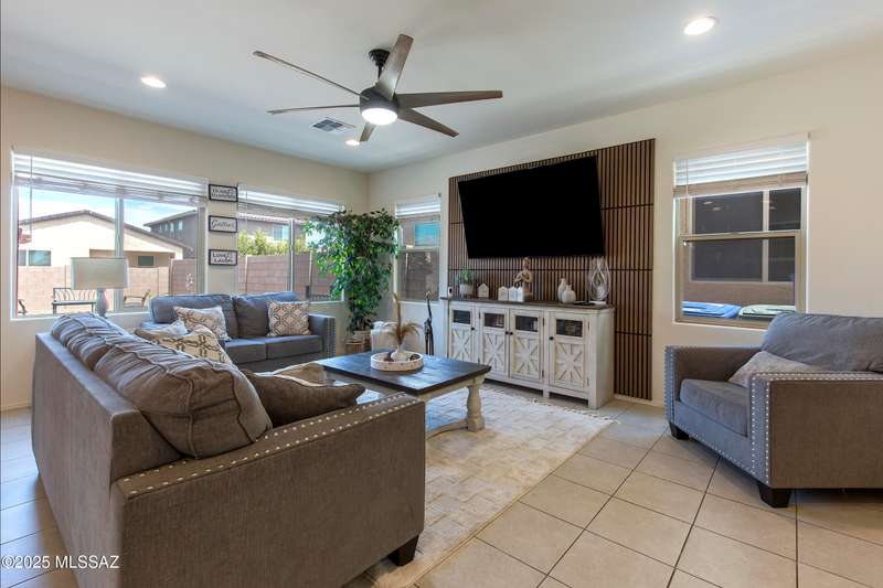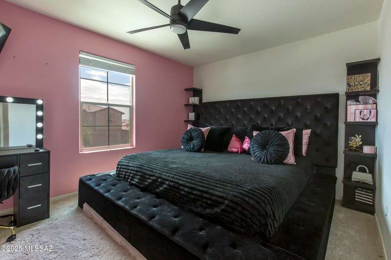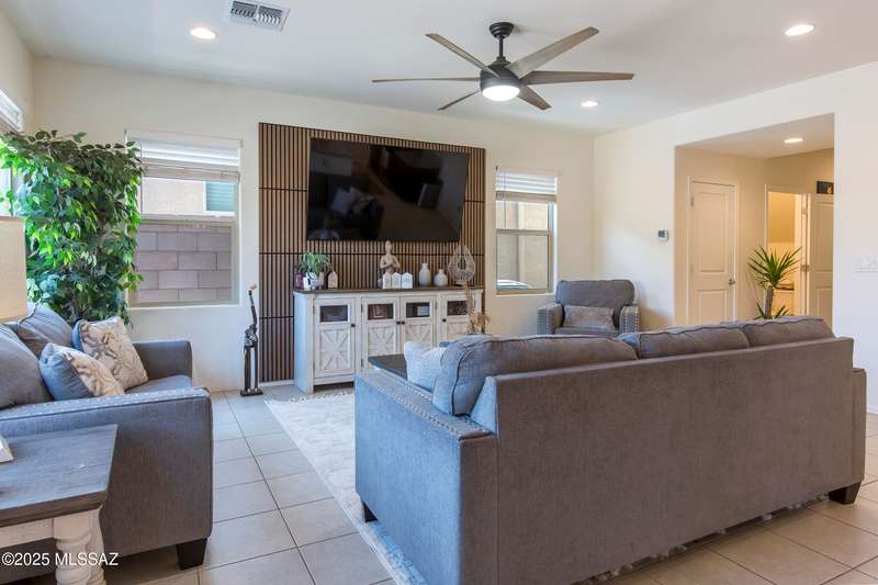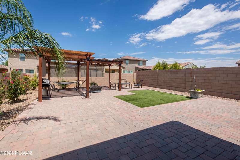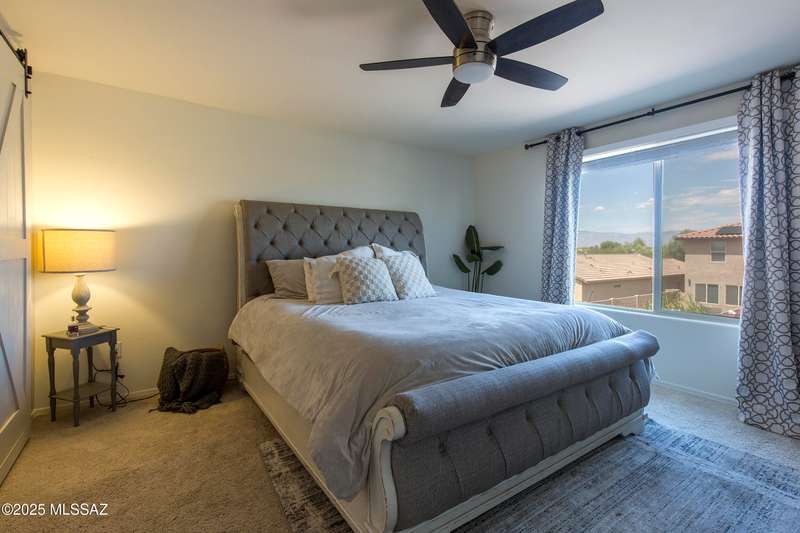 Almost new & upgraded Meritage built home in desirable La Estancia De Tucson. Lower level features family room, dining area & powder bath. Chef's kitchen offers beautiful granite counters, staggered cabinets, stainless steel appliances, pendant lights, walk-in pantry & island w/breakfast bar. Upper level has a large loft, perfect for a 2nd family room, 2 guest bedrooms, guest bath & primary suite. Primary suite has a large walk-in closet w/built-ins, shower, makeup area & dual vanities. Backyard has a covered patio, turf area, dog run & paver sitting area w/ramada for shade. Don't miss out on this fabulous home!