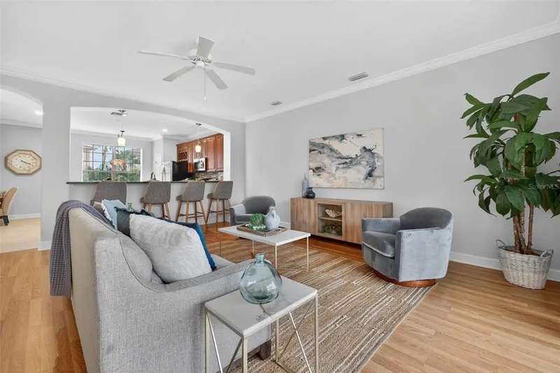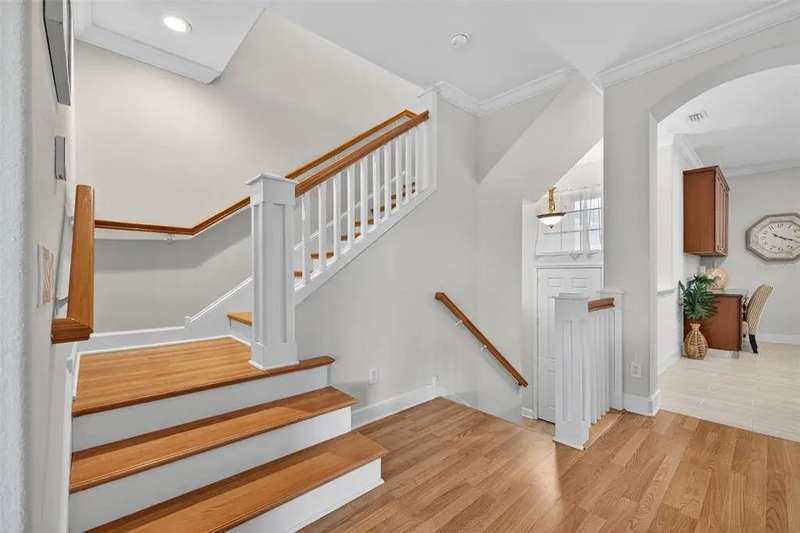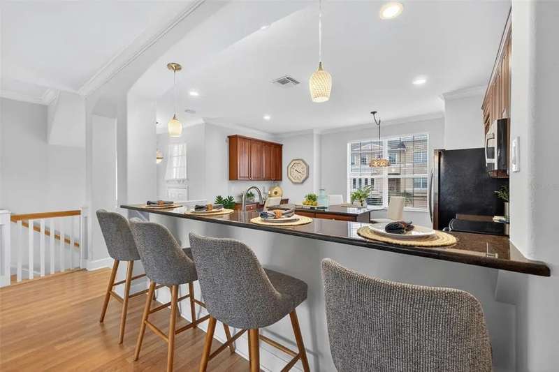 Welcome to Seminole Isle, an exclusive gated community offering resort-style living just minutes from everything you love about Florida’s Gulf Coast. This beautifully updated corner end-unit townhome offers a coastal vibe with a light and bright atmosphere enhanced by an abundance of natural light throughout. At the heart of the home, the spacious kitchen and open living area set the stage for both everyday comfort and effortless entertaining. The kitchen features stone countertops, stainless steel appliances, a walk-in pantry, built-in desk, and abundant storage. A casual bar counter and sunny eat-in nook invite friends and family to gather, while the open layout flows into the expansive living room. Here, sliding glass doors extend your living space to the screened lanai with tranquil water views—perfect for morning coffee or evening cocktails. You will enjoy gorgeous sunset views every evening from your screened lanai. The adjacent formal dining room, also with lanai access, makes hosting dinners a true delight. Upstairs, a versatile open loft provides the perfect spot for a home office or reading room. The enormous primary suite feels like a retreat, offering a spa-inspired ensuite bath with a garden tub, separate shower, dual vanities, and a large walk-in closet. The upstairs also includes a convenient laundry room with cabinetry, two additional bedrooms, and a guest bath. The oversized garage is a rare find, accommodating 3–4 vehicles depending on size. Step out the back door to another covered lanai overlooking a peaceful pond and fountain—your own private oasis. The end unit offers a larger green space between buildings. Beyond your front door, Seminole Isle offers an unbeatable location. Just across the street, Lake Seminole Park features 250 acres of trails, picnic areas, and a boat ramp. Shopping and dining are minutes away at Seminole City Center, where you’ll find Publix, HomeGoods, Target, Studio Movie Grill, and popular restaurants like Outback Steakhouse, Miller’s Ale House, and Craft Street Kitchen. Beach days are just minutes away! The world-famous Gulf Beaches are only 10 minutes away. Inside the gates, Seminole Isle residents enjoy resort-style amenities including a sparkling pool, fitness center, clubhouse, tennis and pickleball courts, a kayak launch with dedicated kayak storage, community BBQ and firepit areas, scenic walking paths, and a private boardwalk surrounded by natural beauty. Seminole Isle is a private, and luxurious townhome community offering resort style living!!