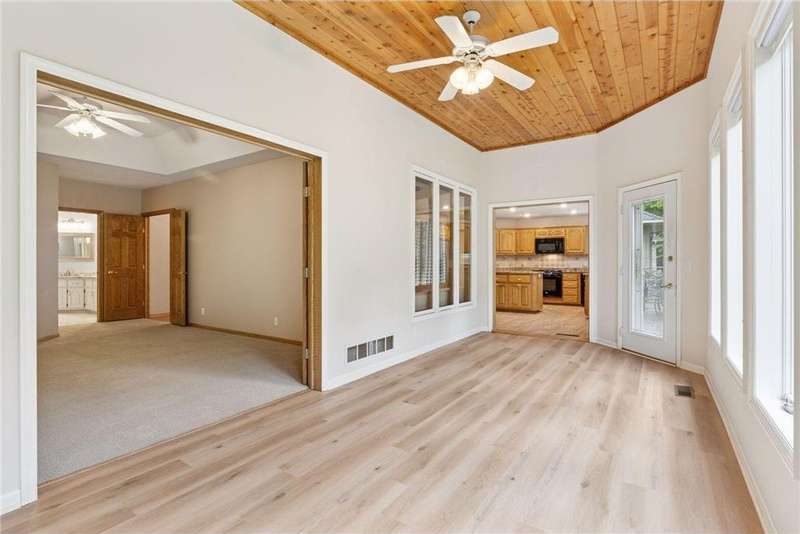 Desirable one level townhome in coveted Nature’s Cove development. Located on a quiet cul de sac which borders a city owned wild life area. The spacious open floor plan features high ceilings, two sided fireplace and a wall of windows to let in natural light. The kitchen has a center island, plenty of storage space along with an informal eating area which leads to the sun room. The primary bedroom features large walk-in closet and huge ensuite bath with dual vanity and separate tub and shower. You can relax and enjoy nature in the sun room which walks out to the patio. Convenient location near parks, shops, and restaurants with easy access to freeways.