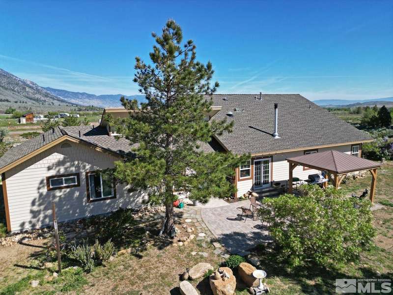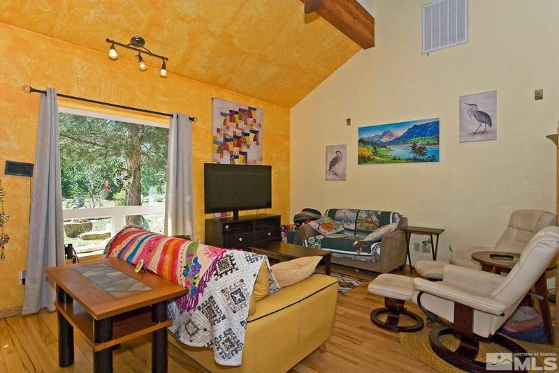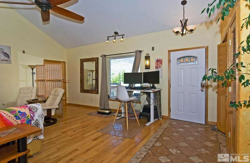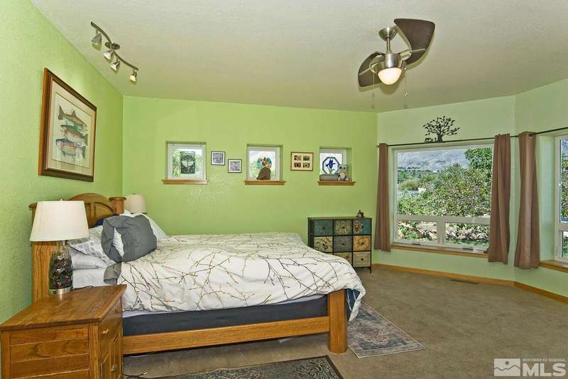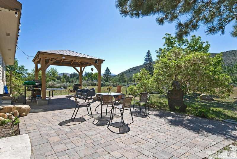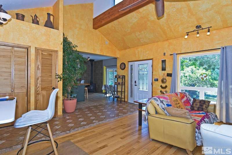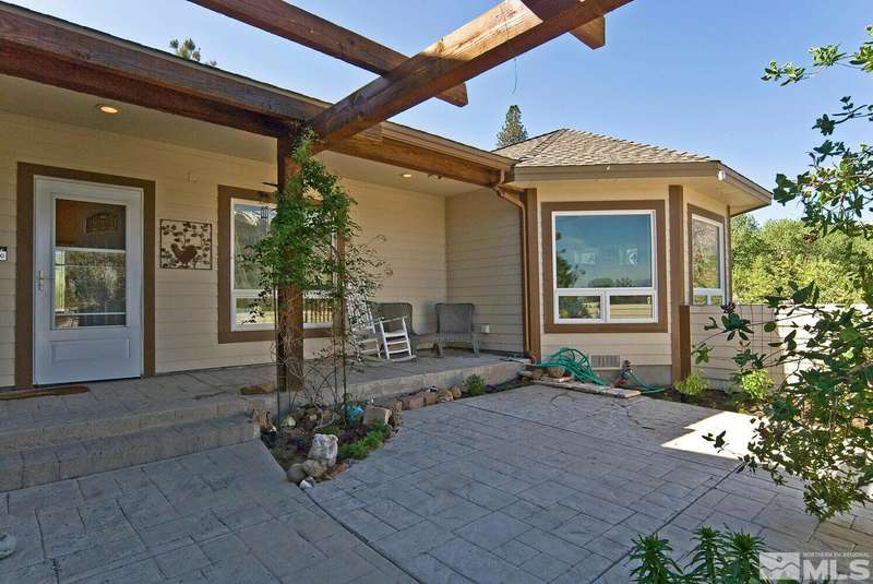 This comfortable 2008 sq ft riverfront home offers a beautiful fishable stretch of the Carson River. The property includes a charming, stand alone, efficient 550 sq ft guest house (ADU). The main house has a spacious great room layout with a vaulted ceiling living room, wood flooring, gorgeous views & abundant natural light. The kitchen offers custom cabinetry and a center island with a breakfast bar that opens to a dining area with a cooktop woodstove. From there, step out to a sunny paver patio with a gazebo to enjoy wide, open views toward the river, hills, and trees. The backyard is completely private with no neighbors. The spacious master bedroom and bathroom occupy the west end of the home, with two spare bedrooms and a full bathroom on the opposite end. The 3-car garage has one stall walled off to accommodate two bonus rooms. The separate laundry room has cabinets and a utility sink. This house provides energy-efficient, quality construction. The original home was built in 2001, with an additional 1000 sq ft added in 2011. The addition was built using insulated concrete form (ICF) construction, with energy efficiency in mind. The 11 walls provide a high R-value, and hardi-plank fiber cement siding improves the efficiency. The attic was framed to accommodate over 500 sq ft of available storage or convert to additional living space. The living room includes clerestory windows for a passive solar design that prevents summer sun but lights the room with sunshine and warmth in winter. The peaceful yard includes over 100 trees, including plum, apple, pear, apricot, peach, cherry, almond, and walnut. You'll enjoy the wildlife and birding opportunities from your own backyard. There is a 12x24 metal horse shelter and a 180x90 horse arena, with great riding opportunities in the area. A 26KW generator with an automatic transfer switch that runs on propane is included with the sale. This is a beautiful, serene location with privacy and awesome views out every window. Easy access to all the amenities in the Carson Valley, Lake Tahoe, Reno/Tahoe International Airport, world-class skiing, and everything outdoors for sports enthusiasts!