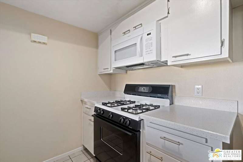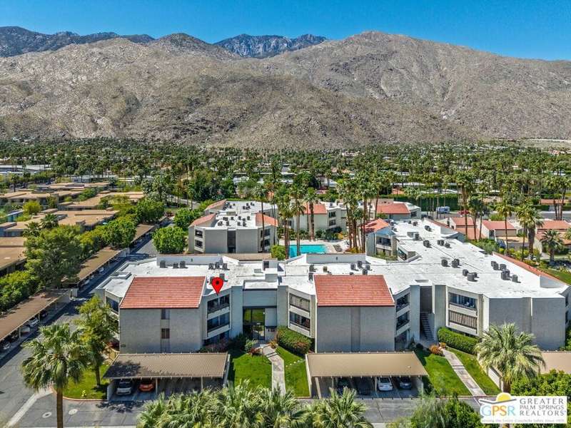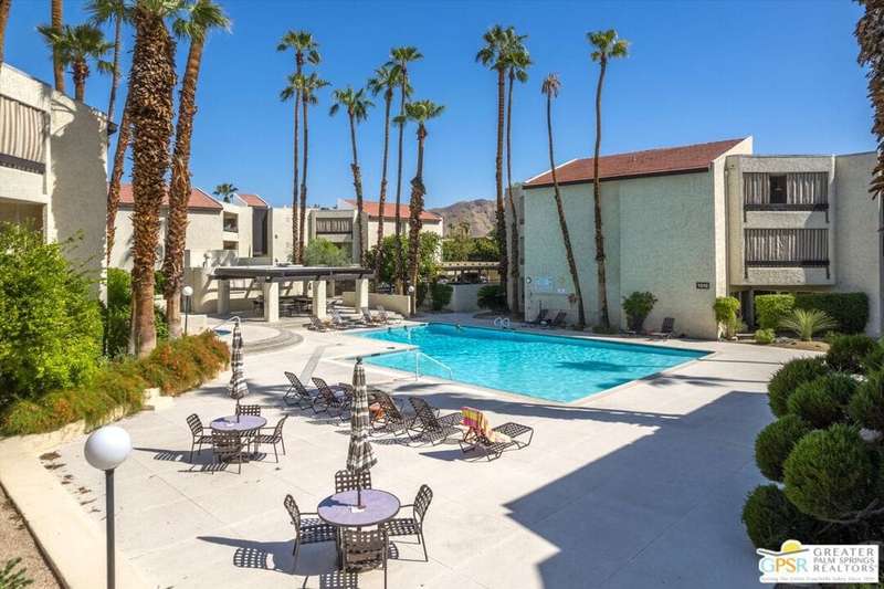 Welcome to Biltmore Phase III, located in one of South Palm Springs' most desirable neighborhoods. This top-floor, single-level one-bedroom condo offers an open, airy floor plan and convenient elevator access. Inside the living area and bedroom both feature sliding doors that open to a private balcony perfect for enjoying beautiful views. The spacious bedroom includes a full wall of mirrored reach-in closets. The kitchen offers a convenient pass-through to the living room, pantry storage and an adjacent dining area ideal for entertaining. Relax in the inviting community pool and spa surrounded by lush landscaping and mountain vistas. The HOA also provides BBQ areas, a cabana with misters and ample space for outdoor dining. Additional community features include an assigned carport, high speed internet, storage locker, guest parking, laundry rooms, and secured building access with an intercom system. Conveniently close to popular Palm Springs destinations such as Del Rey at Villa Royale, Koffi, Kings Highway, The Reef Bar, Sancho's, Elmer's, El Mirasol, Mr. Lyons, and Kreem Ice Cream. This condo is ideal for full-time living, a second home, or a vacation rental (30-day minimum). One pet allowed. Palm Springs living at its Best!