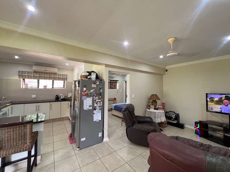 Free-standing 3-bedroom home that effortlessly blends comfort, convenience and style situated in a cul-de-sac. The property includes 2 full bathrooms, 3 living areas, a large kitchen with a courtyard, and an extended open patio. Additionally, there is a separate 1-bedroom garden flat featuring a full kitchen, a spacious living room, covered patio and dedicated parking area. The property offers 3 garages, swimming pool and staff accommodation