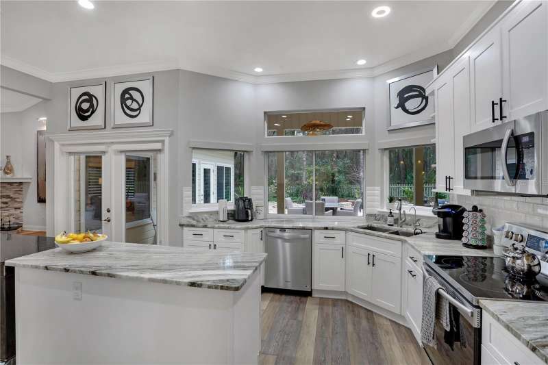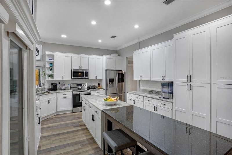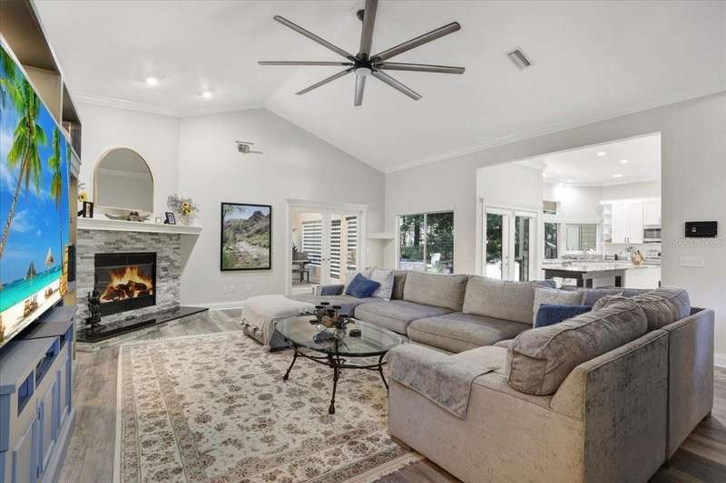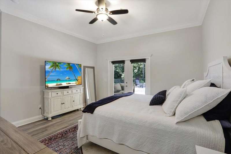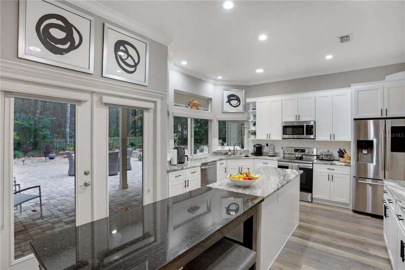 Luxury Living in Haile Plantation. Discover refined elegance in this completely updated five-bedroom, three-and-a-half-bath home, ideally located on a private cul-de-sac in Haile Plantation Spalding Place neighborhood. Backing up to a preservation area, this residence offers exceptional privacy and picturesque natural views. Inside, no detail has been overlooked. The home showcases, LVP flooring throughout, exquisite crown molding, custom trim work, and high-end finishes throughout. The thoughtfully designed layout includes a private in-law suite with its own entrance, offering flexibility for extended family or guests. The spacious master suite is a true retreat, featuring a walk-in shower, soaking tub, dual-sink vanity, and custom-designed closet. On the opposite wing of the home, you’ll find three additional bedrooms and a full bath, creating ideal separation and flow. A light-filled Florida room overlooks the serene backyard, adding charm and additional living space. Step outside to your own backyard oasis—fully fenced and complete with peaceful water features, firepit, stone paver walkways, up lighting and lush landscaping—perfect for entertaining with pass through window to kitchen, and Lanai with 1/2 bath and TV. The two-car garage is fully insulated, soundproofed, and climate-controlled—perfect for hobbyists, musicians, or creative projects. A separate golf cart garage adds extra convenience. Living in Haile Plantation means enjoying an unparalleled lifestyle, with over 15 miles of scenic walking trails and the vibrant Haile Village Center offers shops, dining, and a beloved weekly farmers market—all just a short walk away. Join the Hawkstone country club and have access to their golf course, three swimming pools, tennis and pickleball courts, and fitness center. This home isn’t just a place to live—it’s a gateway to luxury, comfort, and community in one of Gainesville’s most sought-after neighborhoods.