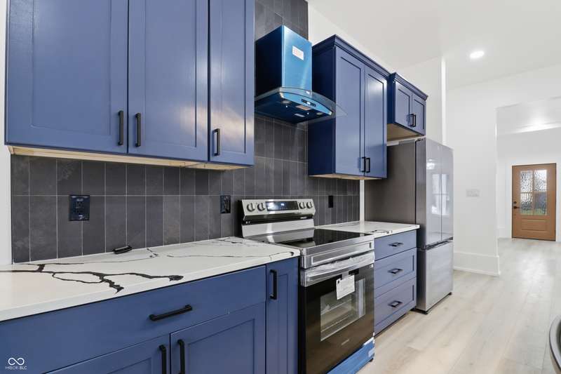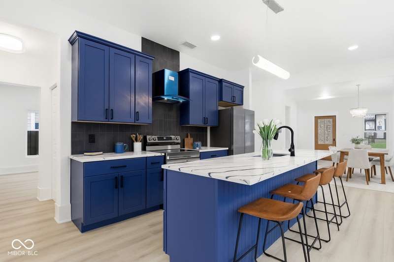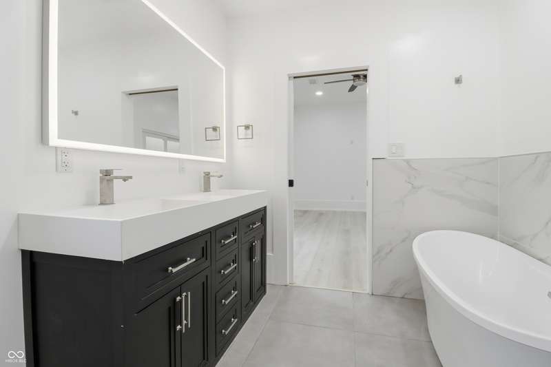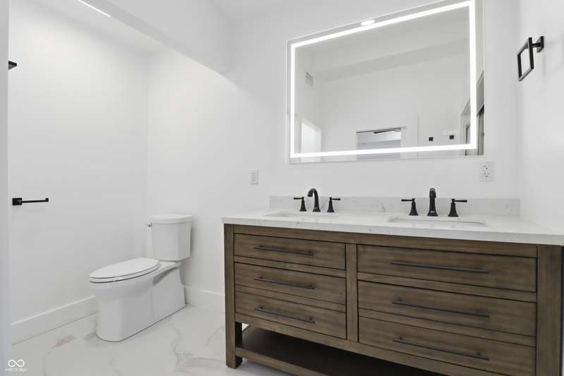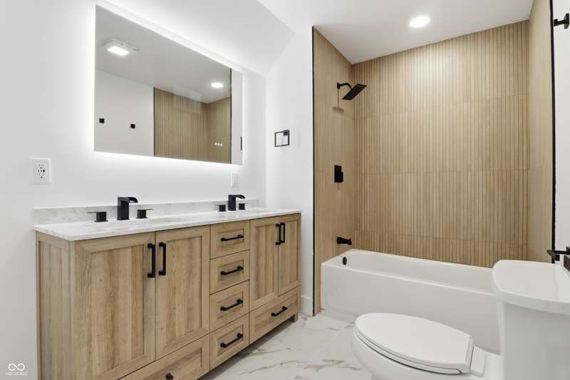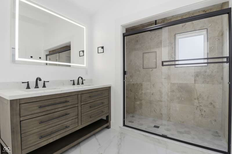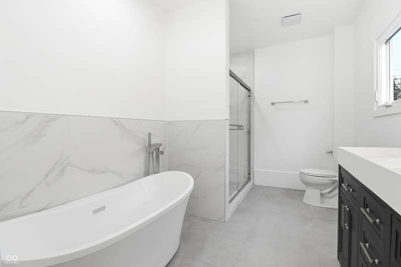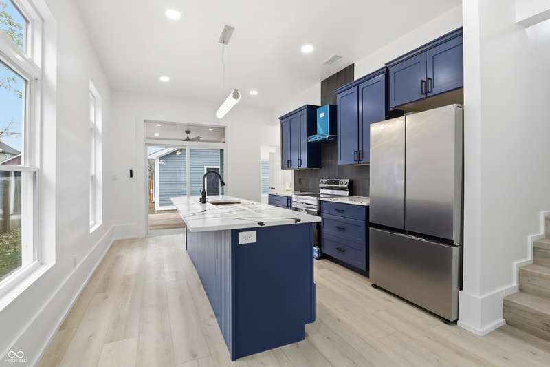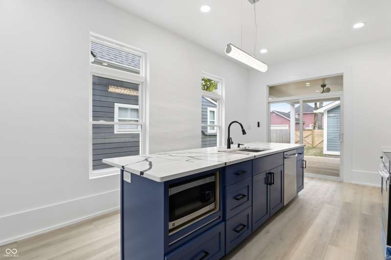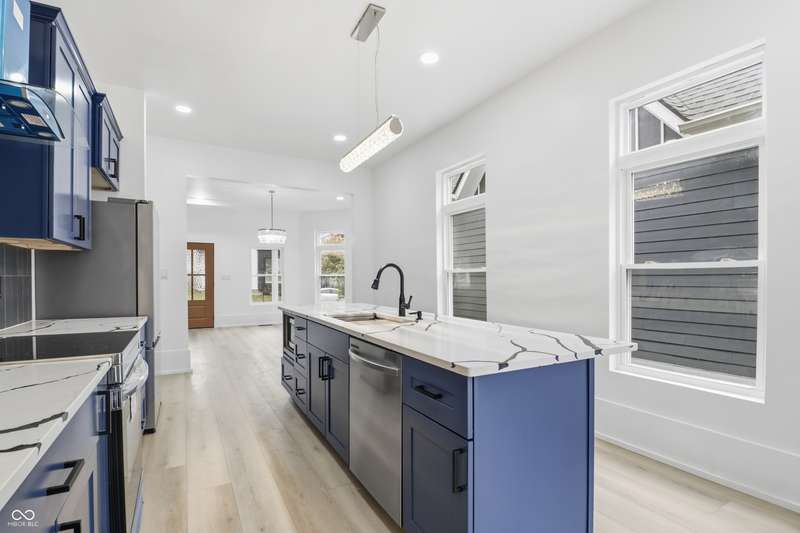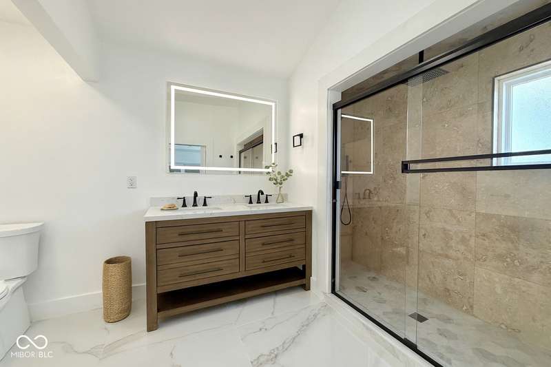 Discover the charm of 2022 Carrollton Ave, a stunning fully renovated home nestled in Near Northside neighborhood. Imagine preparing meals in your kitchen designed for both culinary exploration and social engagement, featuring a large kitchen island providing ample space for preparation or casual dining, stone countertops offering a touch of elegance, shaker cabinets adding a classic feel, a backsplash enhancing the aesthetic appeal, and a wall chimney range hood ensuring a fresh environment, with the kitchen bar being the ideal spot for morning coffee or evening conversations. The living room invites relaxation and gatherings around the fireplace, creating a warm and inviting ambiance for any occasion. Retreat to either main floor or upstairs primary bedroom designed as a personal haven, complete with an ensuite bathroom for ultimate privacy and convenience. The bathrooms offer a spa-like experience, featuring custom tile, a walk-in shower, a soaking tub for unwinding after a long day, and a double vanity providing plenty of space. Enjoy outdoor living with a porch perfect for relaxing, a patio ideal for entertaining, and a deck for enjoying the surroundings, all within the confines of a fenced backyard. Appreciate the practicality of a laundry room designed to streamline your chores. This two-story home boasts harmonious blend of space and style, complete with three full bathrooms and one half bathroom, plus four bedrooms. This attractive property is ready to be the backdrop for your best life.