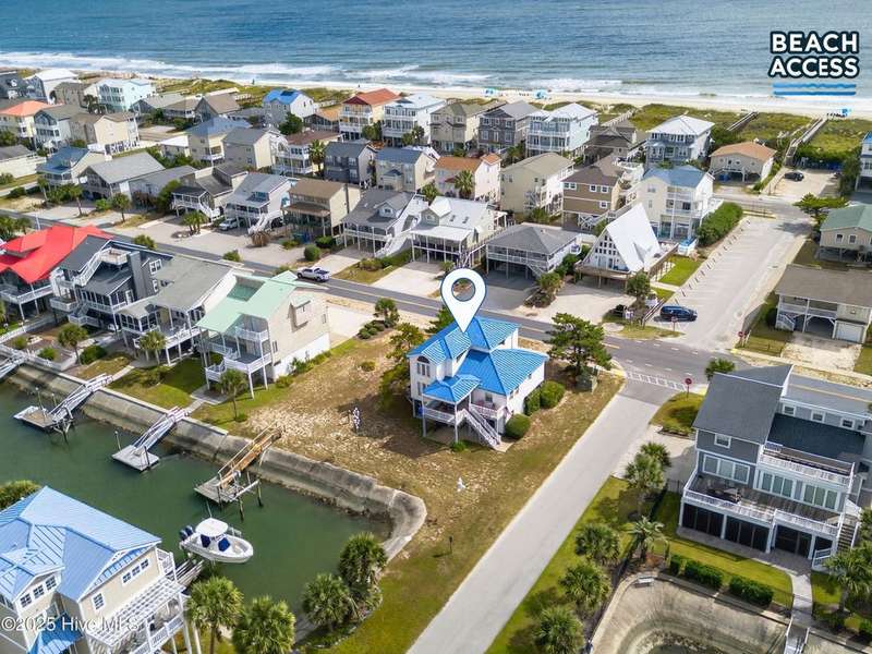 Get ready to live the dream! Direct beach access just blocks away at the Leland Street Beach Access.Imagine: Your beach escape plus a dedicated canal-front lot, boasting direct ICW access. Go from sandcastles to sailing in a heartbeat!Step inside your retreat and feel the coastal vibes! The main level greets you with an inviting eat-in kitchen, a cozy breakfast nook, and an open living area perfect for gathering your crew. Privacy is paramount here?every bedroom is a mini-suite with its own private bath, plus a handy half-bath on the main level. Head upstairs to discover two more generously sized bedrooms.The true showstopper? A back deck on the main level where you can sip a cold drink and enjoy those sparkling Intracoastal Waterway views. Downstairs, you have a one-car garage and two additional rooms perfect for stashing all your beach toys. And of course, the indispensable enclosed outdoor shower to rinse off after a perfect day.This gem is ready for your personal touch to make it the ultimate family getaway or rental hotspot. Opportunities like this are fleeting?don't let the tide carry this one away! Adjacent vacant lot is also available for sale in separate listing.