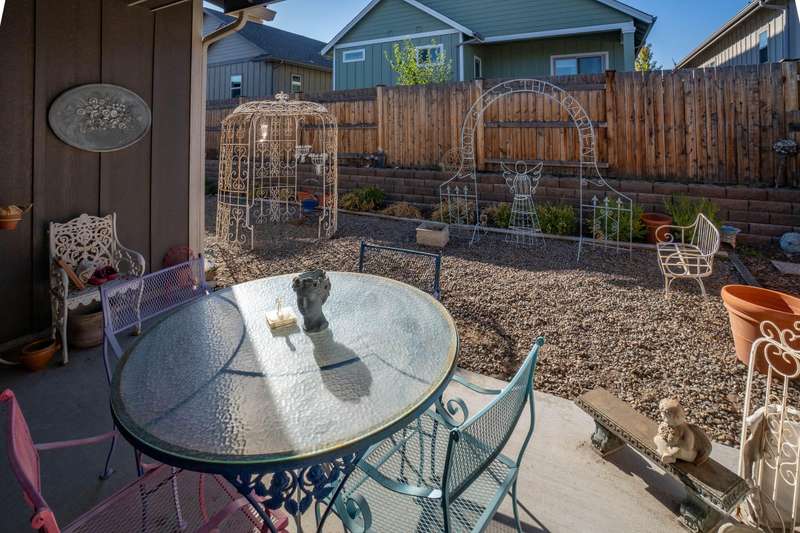 Located in Desirable NE Bend Mirada Community. This Single level, 3 bedrooms, 2 bathrooms, 1550 SF home features an Open floor plan w/vaulted ceilings, Great Room, dining and kitchen seamlessly flows together. Other features include: Gas fireplace, ceiling fan, wood- look laminate flooring, custom shutters, primary suite on main, Granite counter tops, kitchen island. Relax on your low maintenance fenced backyard covered patio, plus HOA covers front yard landscaping. Enjoy 4-acre neighborhood park, plus community pool, playground and walking paths. Fantastic location, close to schools, restaurants, shopping, St Charles Medical and Pine Nursery Park nearby for additional outdoor activities. Don't miss out on this opportunity to make this home yours!!