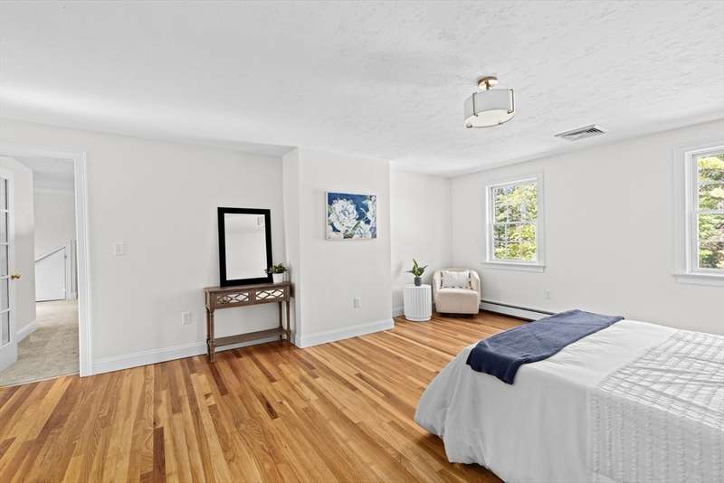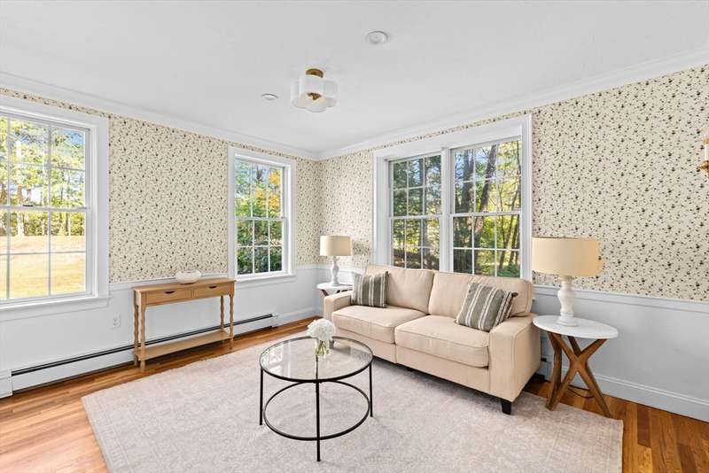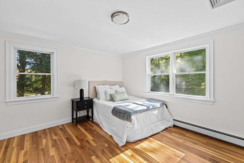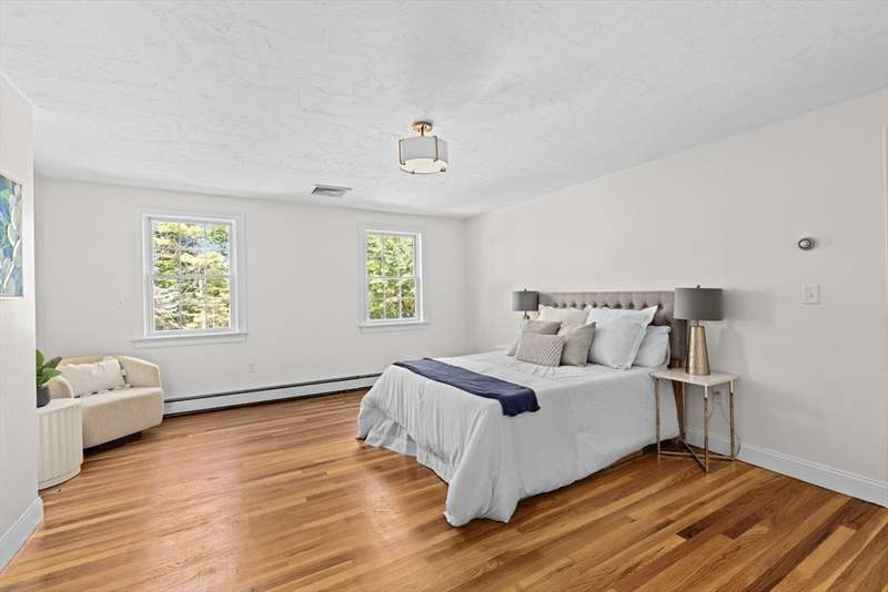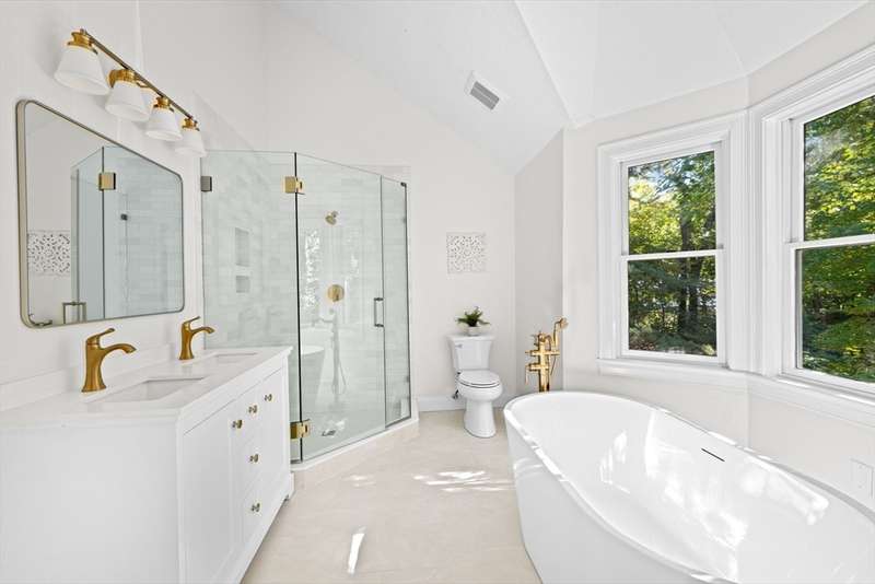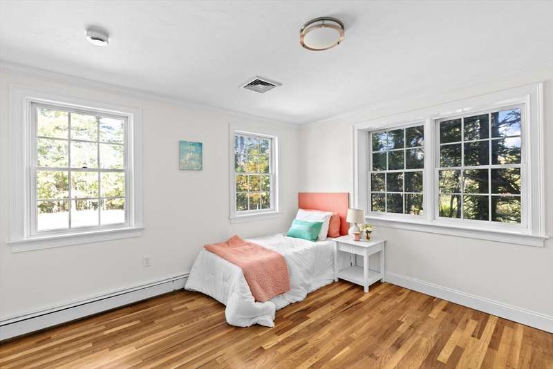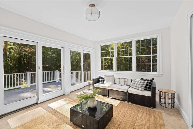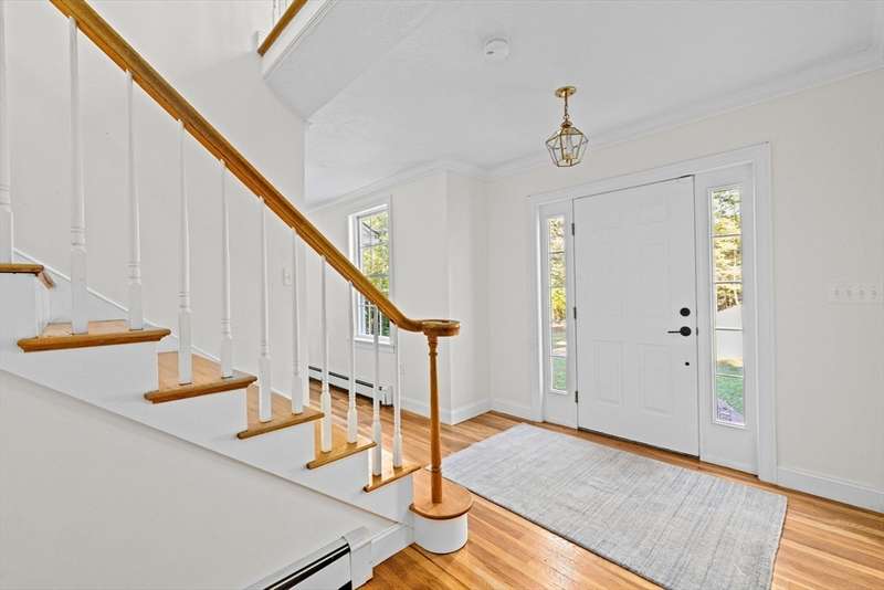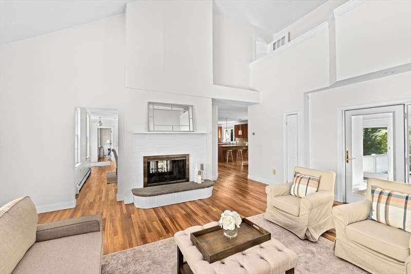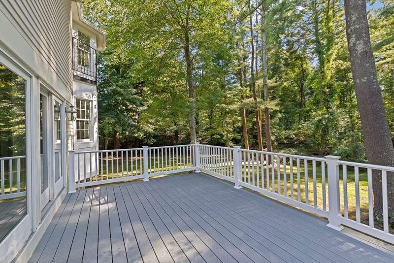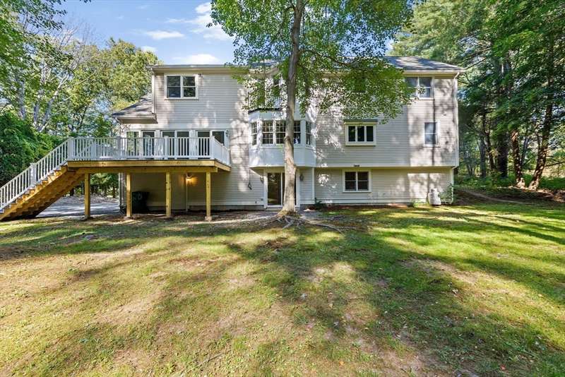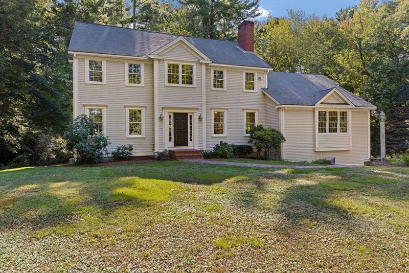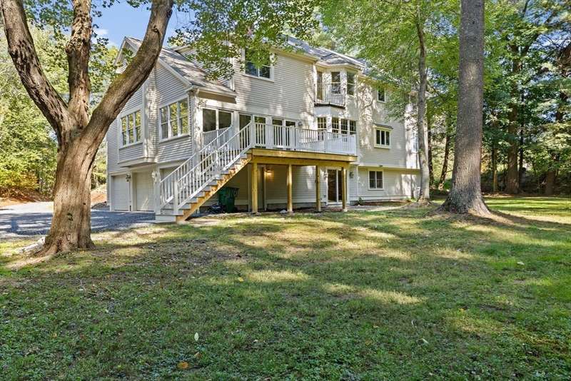 Spacious and Tranquil! This lovely Colonial is perfectly nestled on a private retreat lot offering a serene setting and a sprawling front yard. The heart of the home is the expansive kitchen featuring two islands, new appliances, and a sunlit breakfast area. The first floor also includes a formal living room, laundry room, and a spectacular family room with soaring 17-foot ceilings and a see-through fireplace connecting to the dining room. An inviting sunroom opens to a newly built composite deck overlooking the peaceful backyard. Upstairs, the primary suite is a true retreat with a Juliet balcony, walk-in closet, and a luxurious en-suite bath with a soaking tub. Two additional beds ,a full bath and office complete the second floor. The walk-out lower level offers a versatile playroom, ample storage, and a three-car garage. Conveniently located near Wompatuck State Park, South Elementary School and the train to Boston.Open House Sun ( 10/5) 11:00 -12:30.