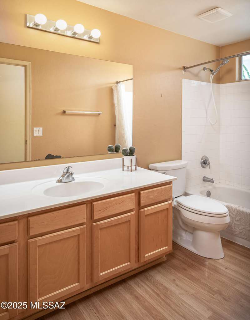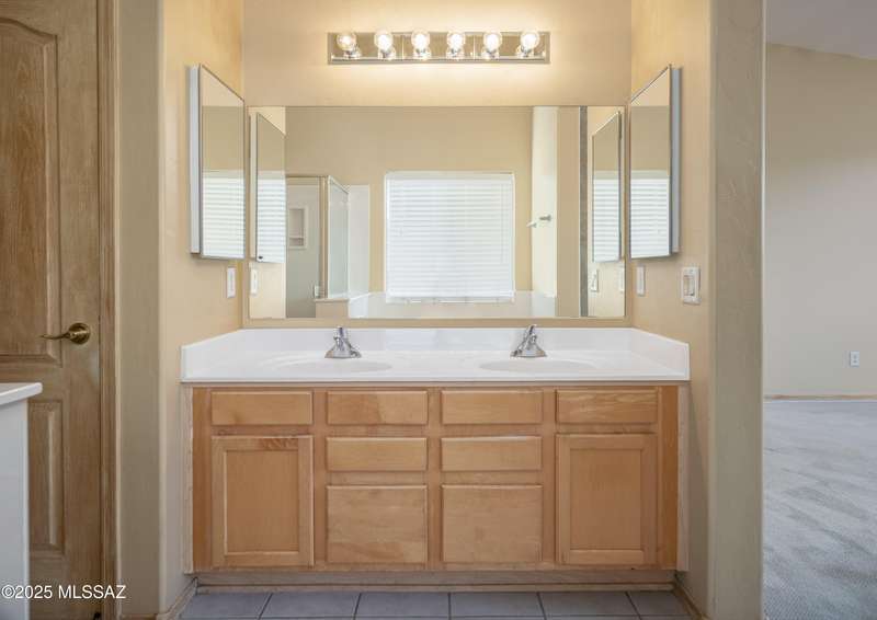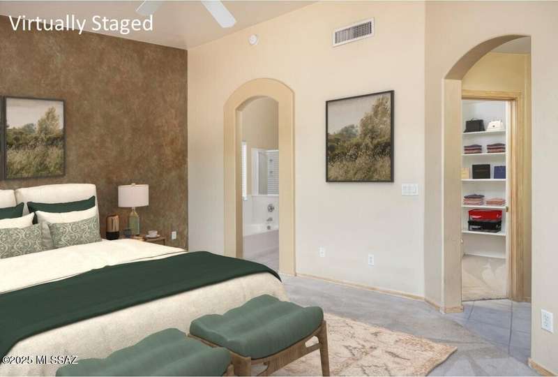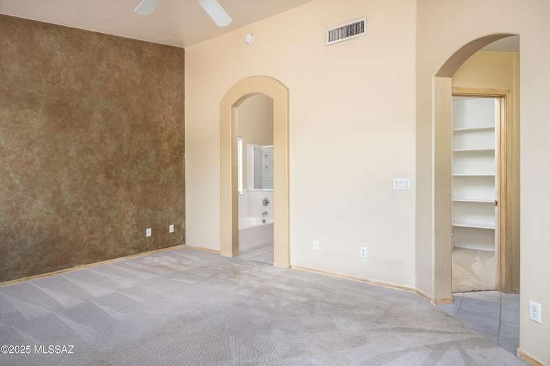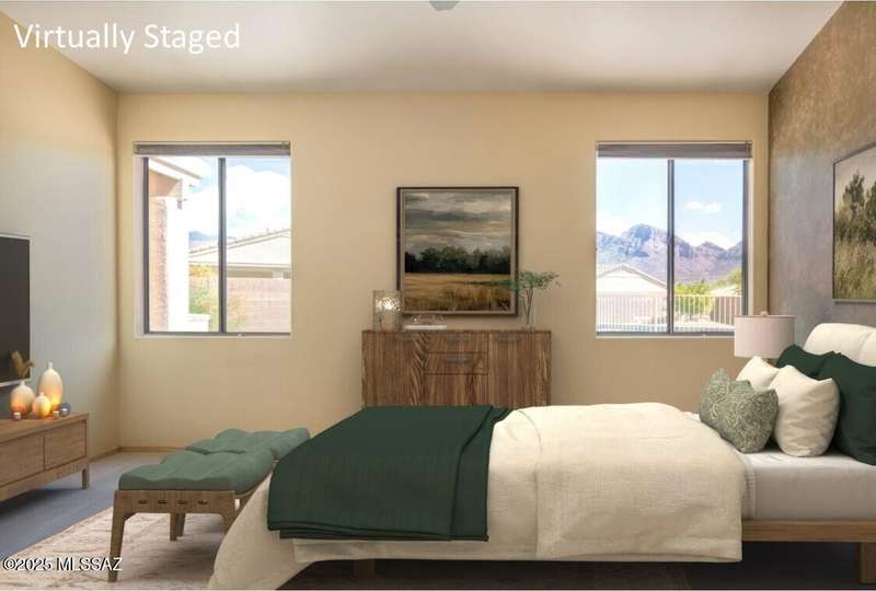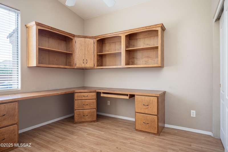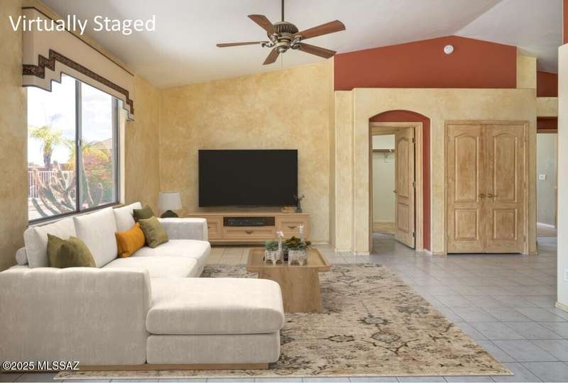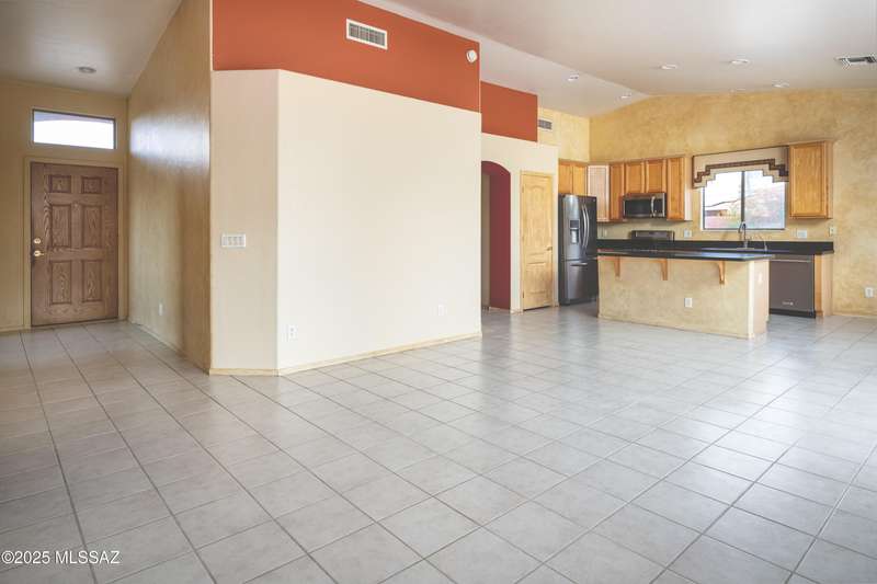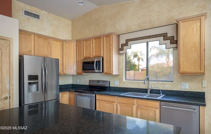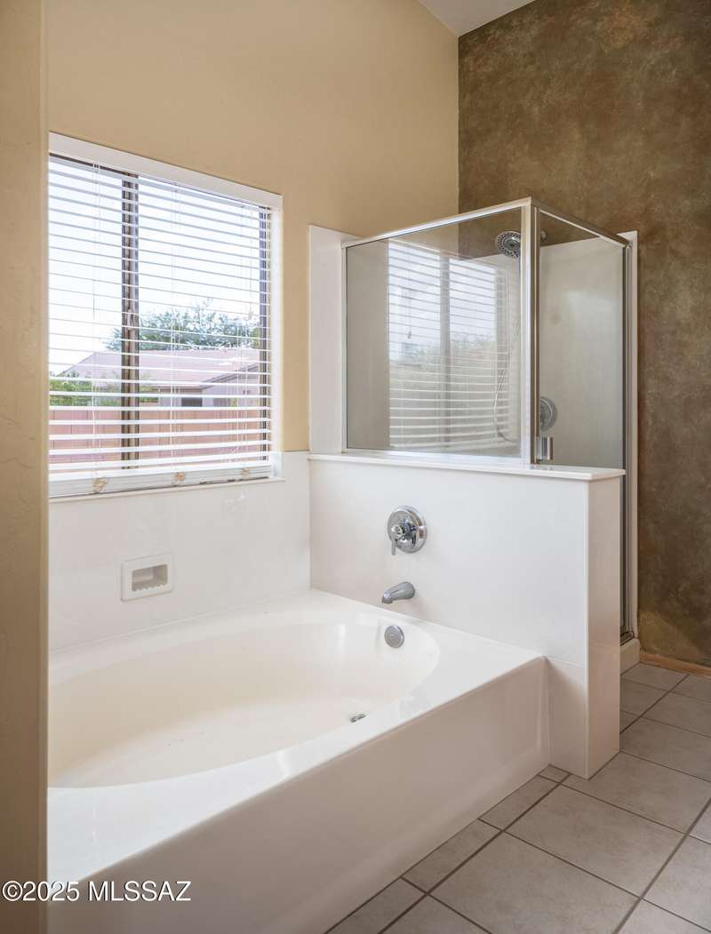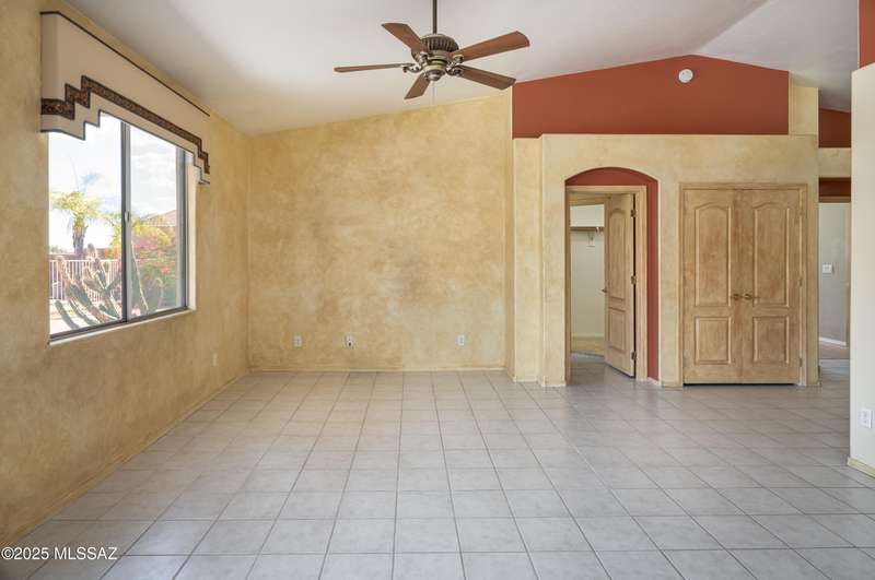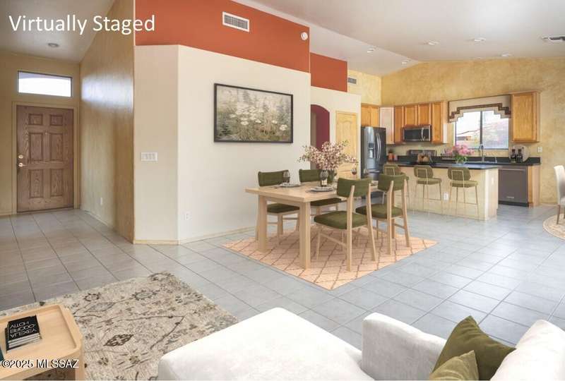 Rare Find! Home with east-facing backyard on end of cul-de-sac lot in excellent location in Monterra Ridge in Oro Valley. Beautifully upgraded single-story 1,868sf, 4BR, 2BA+Office (could be 5th BR) on a generous .26-acre lot with Catalina Mountain views. Kitchen has stainless appliances, large center island & bay window in the casual dining area. Great room open floor plan with vaulted ceilings, pot shelves for displaying decorative items, custom window coverings & tile flooring throughout except carpeted BRs. The backyard is a true oasis, featuring gated Pebble Tec pool/spa, stamped concrete extended covered patio, built-in BBQ, large side yard and drip irrigation system in both front and backyards. Spacious 3-car garage has storage cabinets.