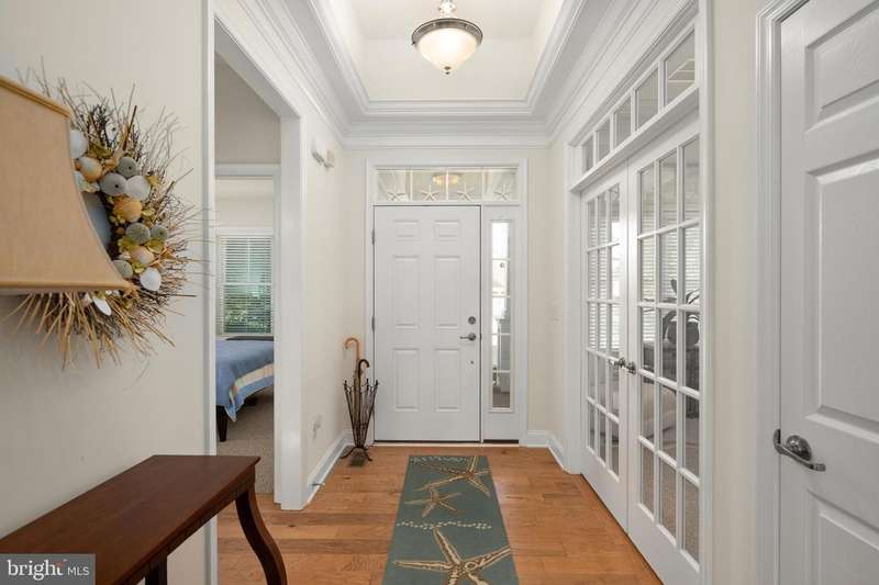 Live the Coastal Lifestyle in Breakwater! Located east of Coastal Highway and adjacent to the scenic Breakwater Bike Trail, this sought-after community offers the perfect blend of convenience and tranquility. Enjoy a leisurely walk or a quick 4-minute drive to charming downtown Lewes, with its shops, dining, and waterfront views. This beautifully appointed Fenwick model features a gourmet kitchen with dining bar, pantry, and GE appliance package. Great Room features surround sound and a cozy gas fireplace - perfect for cool coastal evenings. Rich hardwood floors flow through all main living areas, enhanced by recessed lighting, crown molding and detailed finishes that add timeless charm. Enjoy multiple outdoor living spaces, including a large, screened porch and a sunny deck - ideal for lounging, grilling, or soaking up the warm coastal breeze. The Flex Room can easily serve as a home office, small guest room, hobby space, or quiet retreat to suit your lifestyle. Host dinner parties in the upgraded extended dining room, a spacious separate area which overlooks a picturesque land bridge between two serene, fountain-lit ponds - stunning by day and magical when lit at night. Additional highlights include a side-entry garage with extra driveway parking, ideal for guests. This home is Green Certified and includes a tankless hot water heater. Breakwater's active Social Council offers something for everyone: water aerobics, summer happy hours, bonfires at Roosevelt Inlet, book club, local excursions, and more. All just minutes from Lewes Beach and Cape Henlopen State Park - where coastal living meets convenience and community.