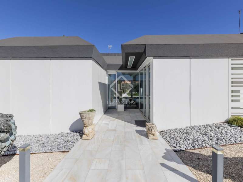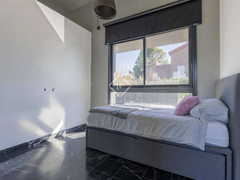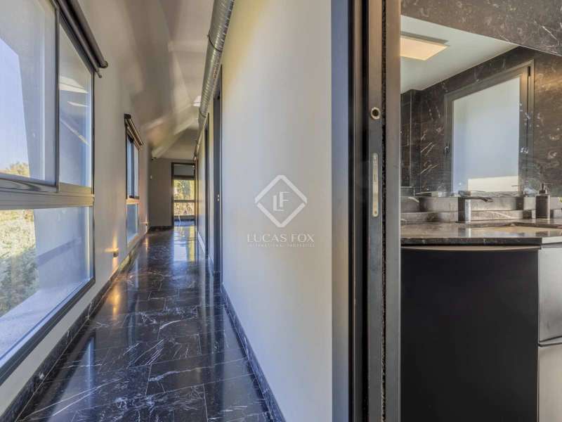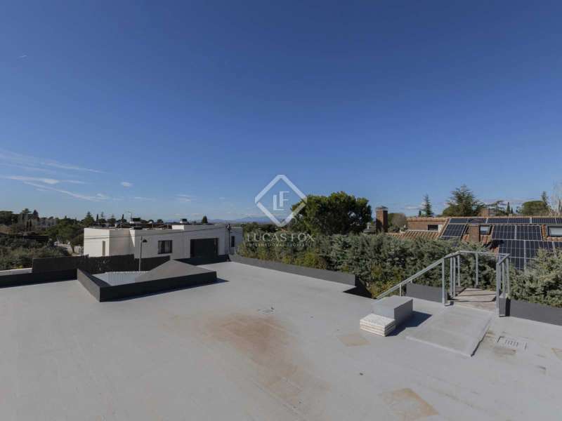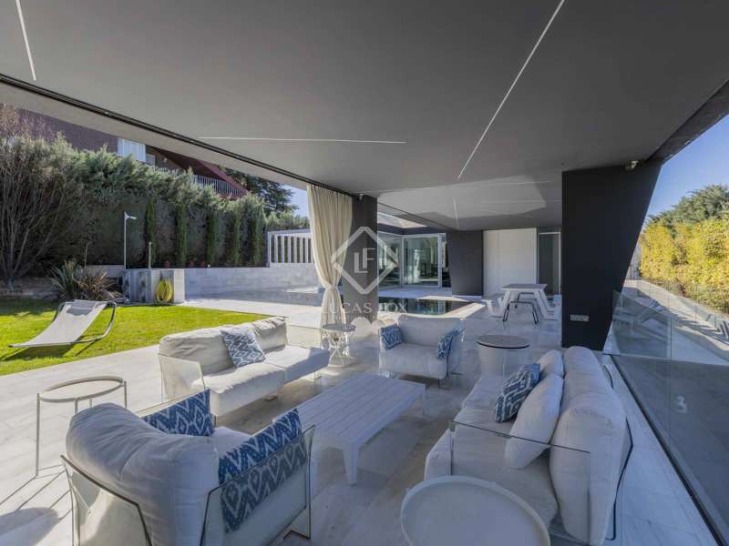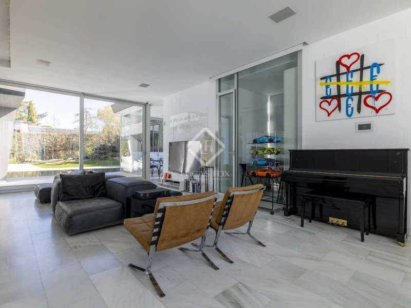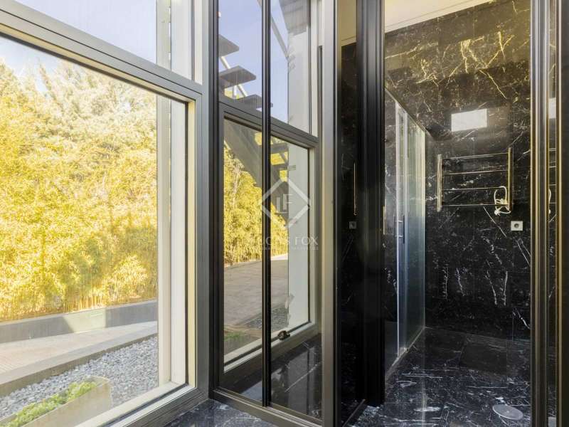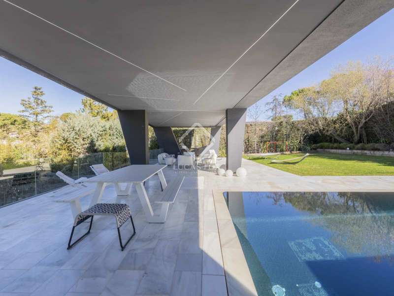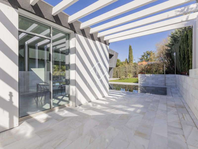 Lucas Fox is proud to present this incredibly designed house in the Parque Boadilla development . It has an area of 420 m² on a 1000 m² plot that stands out for its comfort, natural light and tranquility. The discreet-looking property goes almost unnoticed from the street, but upon entering the plot its uniqueness is perceived. The ground floor offers lots of light and the spacious living room has fantastic views of the main garden and pool. On this floor there is a toilet, a comfortable kitchen with a dining room , an study and the main bedroom, with a huge dressing room and a private bathroom. Both the dressing room and the bathroom are covered in elegant black marble and have access from different ends to guarantee privacy and rest. The ground floor stands out for its large maximum security windows, which allow in abundant natural light and offer beautiful views. In addition, we can access the exterior from practically any point: the kitchen, the living room or the bedroom. The upper floor is intended exclusively for rest. Here, there is a large secondary bedroom with its own bathroom . In addition, three other large and bright bedrooms are offered that share a bathroom. Both bathrooms enjoy the same finishes as the main bedroom. It is worth mentioning that this area also has an armored access door for greater security and tranquility. In front of the bedroom area, taking advantage of the ground floor deck, we will enjoy a roof terrace that offers us 360º views of the surroundings. Finally, under the main porch, guided by the access ramp from the entrance, we will reach the independent garage with capacity for four large cars. The staff bedroom is also located here, which has its own bathroom and the washing and ironing area. The exterior is truly exceptional and accessible from any point in the house. It offers a completely private garden protected by vegetation, both its own and the surrounding areas , and is divided into several areas. It is worth highlighting the porch, which offers a large surface that protects us from the elements and offers comfortable shade to enjoy the exterior at any time of the summer, with direct access to the pool, a grass area ideal for sunbathing, playing or simply rest. On the side, there is a paved area, also covered with marble; An ideal space for the exterior dining room or play area, among others. In the quality section, the property has marble floors, security windows, armored access doors, high-tech security system, home automation control system that includes lighting, air conditioning and even blinds. As for air conditioning, it has ducted ducted air conditioning, underfloor heating powered by mains gas and solar thermal panels for the production of domestic hot water. It has an exclusive design decoration and high quality materials and, above all, high durability. It is, in short, a house with an avant-garde design, where even the smallest detail is designed with the clear idea that the interior and exterior can be enjoyed equally at any time of the year. A home that combines convenience and comfort with a privileged location a few minutes walk from St. Michael's school, the Cortijo Sur shopping centre and the social club of the Parque Boadilla development . The property can be visited easily. Contact Lucas Fox today by phone or email to arrange a viewing. We work 7 days a week to be able to adapt to the needs of our clients. In addition, you can also visit us at our Lucas Fox lounge that we have just opened on Avenida de Europa, 38 in Pozuelo for a cup of coffee so that we can analyze your requirements in more detail and thus help you find your perfect home or investment.